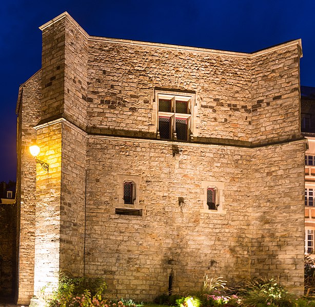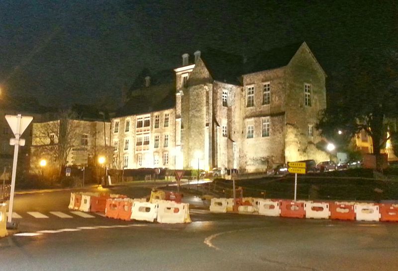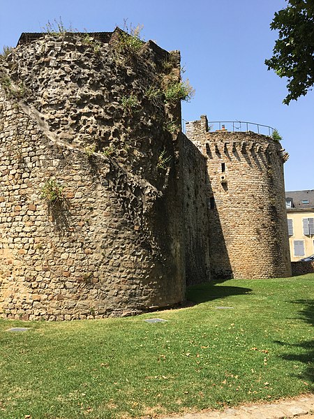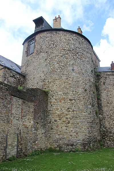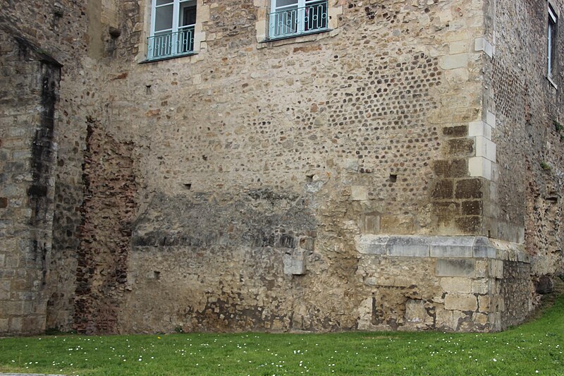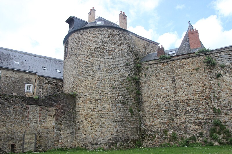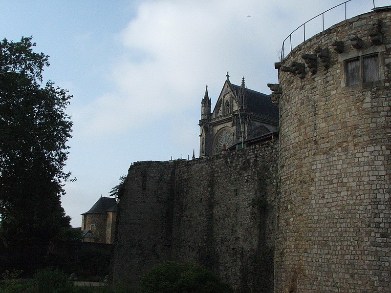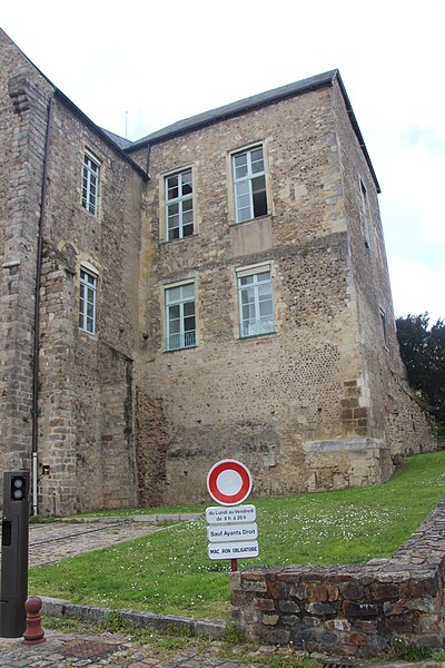 Les ruines du donjon datent des XIIe et XVe siècles, tandis que les vestiges des tours et des courtines appartiennent au XIVe siècle. L'ensemble, connu comme le château des Comtes du Maine, était étroitement lié à la cathédrale Saint-Julien et aux bâtiments épiscopaux qui lui étaient contigus. Il fut élevé par Guillaume le Conquérant pour affermir son autorité sur une cité réputée pour son esprit contestataire. Dans un premier temps il fit édifier une haute tour, dite tour Orbrindelle ou Grosse tour, adossée à la muraille romaine nord et suivant le modèle normand. Cette tour formait le noyau d'un grand camp retranché, appelé camp du Mont Barbet, qui subsista jusqu'en 1138, puis servit de base à la construction du château. La Grosse tour fut conservée comme prison et les détenus étaient parfois conduits jusqu'au palais comtal. Le système de fortification, avec notamment l'achèvement d'une porte défensive, se précise autour de 1425, lors du siège de la ville ; en 1475 la tour disposait de trois ponts-levis. Après la guerre de Cent Ans, le palais des comtes du Maine apparaissait déjà en ruine en 1472. Jusqu'au XVIe siècle, les fortifications de l'évêché et du château furent toutefois entretenues au prix de lourdes dépenses pour le chapitre du Mans. En février 1617, le comte d'Auvergne ordonna la démolition du château ; les matériaux extraits furent vendus au profit de la ville ou réemployés pour reconstruire des lieux sacrés. Pendant plus de vingt ans le terrain servit de carrière, et l'on retrouve des pierres de l'édifice dans des travaux tels que des extensions de l'Hôtel-Dieu de Coëffort ou du palais comtal. Au milieu du XVIIIe siècle furent élevés deux bâtiments neufs en retour d'équerre ; de l'ancien palais, seul subsiste aujourd'hui le Gros Pilier. La place du château, située derrière la place Saint-Michel et la cathédrale, est aujourd'hui conservée par le service municipal comme mémoire du monument qui dominait l'extrémité nord de la vieille cité depuis le XIe siècle. Le château comprenait un donjon carré de cinq étages couronné de mâchicoulis. Les vestiges sont protégés au titre des monuments historiques : le donjon a été classé par arrêté du 9 janvier 1930 et les restes des tours et courtines inscrits par arrêté du 19 mars 1945.