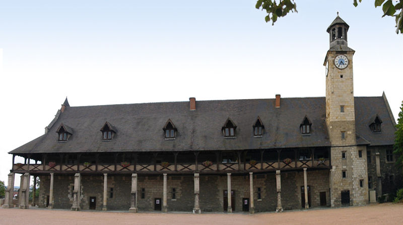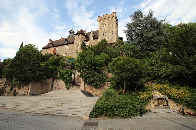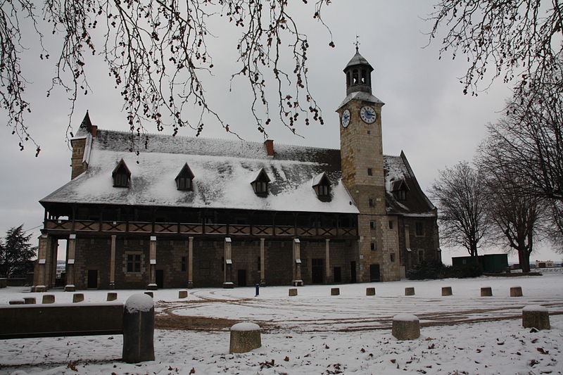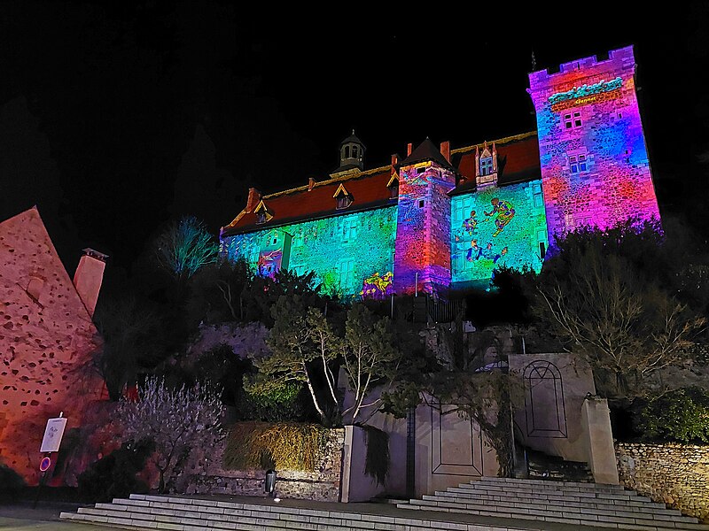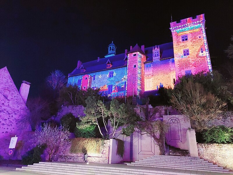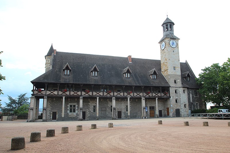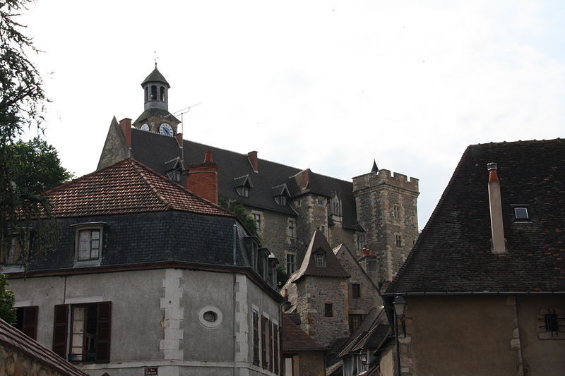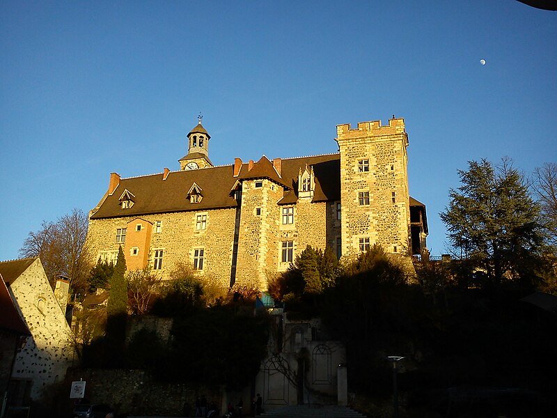 Le château des ducs de Bourbon à Montluçon, résidence seigneuriale et siège politique, administratif et judiciaire d’une des châtellenies du Bourbonnais, s’élève sur un promontoire rocheux utilisé à des fins militaires dès l’époque carolingienne. En 1070, Guillaume, fils d’Archambaud IV de Bourbon, fit édifier une première forteresse sur cet ancien oppidum ; le site fut occupé par les Anglais de 1171 à 1188 avant d’être rendu aux Bourbons et transformé en place forte. Les vestiges actuels prennent leur origine dans une vaste reconstruction engagée à la fin du XIVe siècle sous l’impulsion du duc Louis II de Bourbon et poursuivie par ses successeurs. Les travaux semblent avoir été ralentis pendant la captivité de Jean Ier en Angleterre et par les dernières campagnes de la guerre de Cent Ans, puis repris activement vers 1450-1456 sous Charles Ier de Bourbon, et poursuivis sous Jean II et Pierre II jusqu’au début du XVIe siècle. Au milieu du XVe siècle, par permission du duc, une tour-horloge servant de beffroi urbain fut élevée contre le corps de logis et la maison du concierge. Après la défection du connétable de Bourbon en 1523, le château tomba dans l’abandon et il est attesté en mauvais état dès 1566. À partir de 1661, les princes de Bourbon-Condé devinrent seigneurs apanagistes ; leur conseil céda gracieusement l’édifice à la ville en 1749 pour aménager une promenade sur l’esplanade, entraînant peu après la destruction de la salle Bernard, de la galerie basse des lices et des celliers et greniers qui s’élevaient à l’est. Au XIXe siècle le corps de logis accueillit l’hôtel de ville, le tribunal et la justice de paix, puis le château fut transformé en caserne d’infanterie de 1858 à 1913 ; la maison du concierge, au nord, fut abattue lors d’un agrandissement des casernes autour de 1880. Restauré entre 1930 et 1933, le château retrouva la charpente et la couverture du grand logis ainsi que la galerie extérieure donnant sur l’esplanade à l’est, tandis que la chapelle Saint-Bonnet, attestée dès le XIIIe siècle, et la chapelle ducale du XVe siècle, qui s’élevait sur deux niveaux dans l’angle sud-est, ne furent pas restituées. Établi à l’extrémité ouest d’un vaste plateau de monzogranite et protégé par une courtine à créneaux factices jalonnée de neuf tours cylindriques, le monument se compose d’un corps de logis long de 48 mètres sur 10 de large, cantonné au sud par une tour maîtresse carrée de 8 mètres de côté, à forte saillie sur une base en glacis. Ce donjon, desservi par un escalier en vis jusqu’à sa plateforme crénelée, est dépourvu de mâchicoulis et comprend six salles, dont les principales possèdent des cheminées monumentales ; la grande salle du second étage est voûtée et ornée de clefs de voûte et d’ogives retombant sur des culs-de-lampe sculptés de feuilles de choux frisées, et elle est surmontée d’une charpente apparente en forme de carène renversée. Une tourelle de plan irrégulier loge une petite pièce et une salle de guet, et, à l’extrémité nord, un corps de latrines en briques desservait à la fois le grand logis et la maison du concierge. La façade ouest est éclairée par une lucarne de pierre de style gothique flamboyant restituée, tandis qu’à l’est s’élève une tour carrée de 4 mètres de côté et près de 25 mètres de hauteur, coiffée d’une toiture en pavillon et ornée d’une corniche sculptée de branches et feuillages ; sa face orientale porte des piédroits moulurés, des culs-de-lampe décorés et l’arc qui encadrait autrefois le cadran de l’horloge. La galerie de bois extérieure, reconstruite en 1931 à l’identique sur les bases octogonales d’origine d’après un dessin de 1749, court à l’est depuis l’angle sud de la tour de l’horloge jusqu’à la façade orientale de la tour maîtresse et présente un garde-corps à croix de Saint-André et un hourdis de tuileau. Classé au titre des monuments historiques le 15 mai 1926, le château abrita, à partir de 1959, un musée consacré aux musiques populaires ; depuis 2013 il sert de réserve au nouveau musée de la ville, le MuPop, et n’est pas visitable en tant que monument historique.