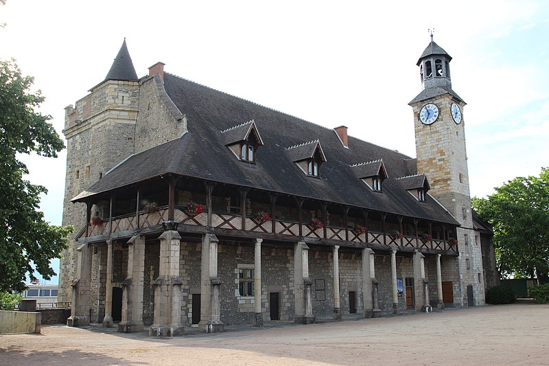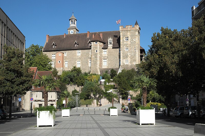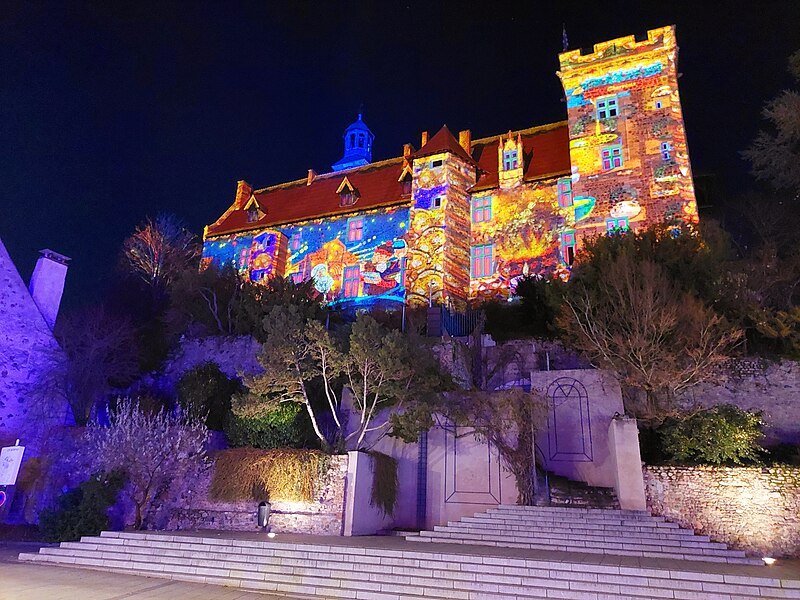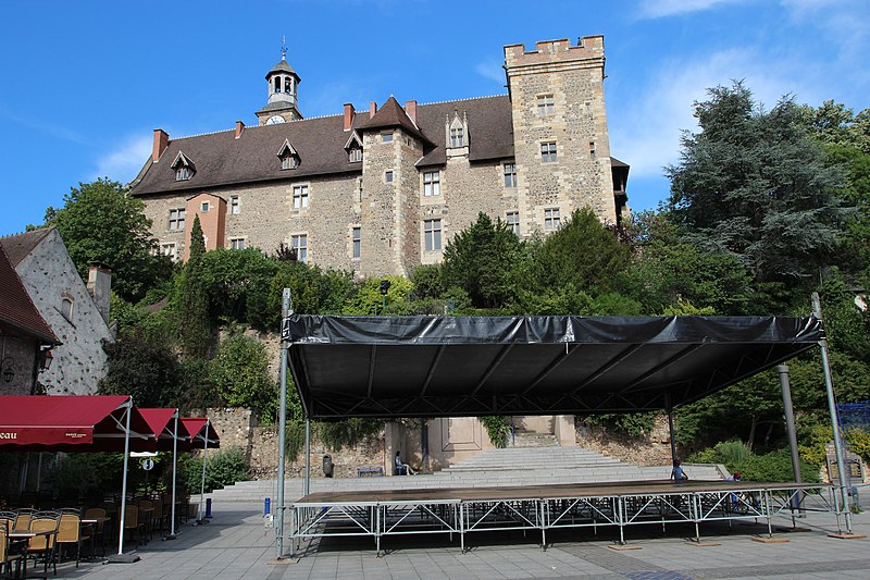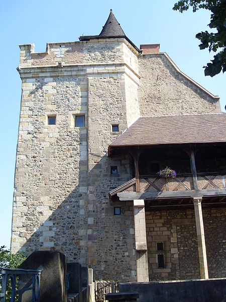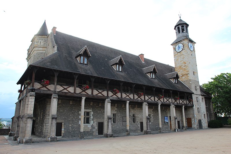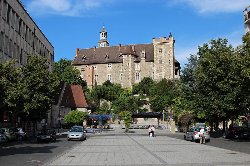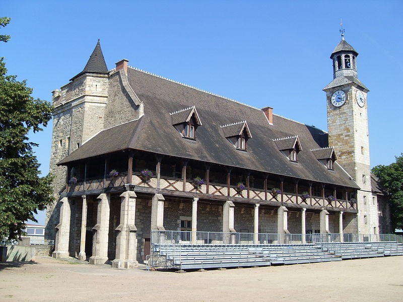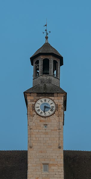 Le château des ducs de Bourbon à Montluçon, résidence seigneuriale et siège politique, administratif et judiciaire d’une des châtellenies du Bourbonnais, s’élève sur un promontoire rocheux utilisé à des fins militaires dès l’époque carolingienne. En 1070, Guillaume, fils d’Archambaud IV de Bourbon, fit édifier une première forteresse sur cet ancien oppidum ; le site fut occupé par les Anglais de 1171 à 1188 avant d’être rendu aux Bourbons et transformé en place forte. Les vestiges actuels prennent leur origine dans une vaste reconstruction engagée à la fin du XIVe siècle sous l’impulsion du duc Louis II de Bourbon et poursuivie par ses successeurs. Les travaux semblent avoir été ralentis pendant la captivité de Jean Ier en Angleterre et par les dernières campagnes de la guerre de Cent Ans, puis repris activement vers 1450-1456 sous Charles Ier de Bourbon, et poursuivis sous Jean II et Pierre II jusqu’au début du XVIe siècle. Au milieu du XVe siècle, par permission du duc, une tour-horloge servant de beffroi urbain fut élevée contre le corps de logis et la maison du concierge. Après la défection du connétable de Bourbon en 1523, le château tomba dans l’abandon et il est attesté en mauvais état dès 1566. À partir de 1661, les princes de Bourbon-Condé devinrent seigneurs apanagistes ; leur conseil céda gracieusement l’édifice à la ville en 1749 pour aménager une promenade sur l’esplanade, entraînant peu après la destruction de la salle Bernard, de la galerie basse des lices et des celliers et greniers qui s’élevaient à l’est. Au XIXe siècle le corps de logis accueillit l’hôtel de ville, le tribunal et la justice de paix, puis le château fut transformé en caserne d’infanterie de 1858 à 1913 ; la maison du concierge, au nord, fut abattue lors d’un agrandissement des casernes autour de 1880. Restauré entre 1930 et 1933, le château retrouva la charpente et la couverture du grand logis ainsi que la galerie extérieure donnant sur l’esplanade à l’est, tandis que la chapelle Saint-Bonnet, attestée dès le XIIIe siècle, et la chapelle ducale du XVe siècle, qui s’élevait sur deux niveaux dans l’angle sud-est, ne furent pas restituées. Établi à l’extrémité ouest d’un vaste plateau de monzogranite et protégé par une courtine à créneaux factices jalonnée de neuf tours cylindriques, le monument se compose d’un corps de logis long de 48 mètres sur 10 de large, cantonné au sud par une tour maîtresse carrée de 8 mètres de côté, à forte saillie sur une base en glacis. Ce donjon, desservi par un escalier en vis jusqu’à sa plateforme crénelée, est dépourvu de mâchicoulis et comprend six salles, dont les principales possèdent des cheminées monumentales ; la grande salle du second étage est voûtée et ornée de clefs de voûte et d’ogives retombant sur des culs-de-lampe sculptés de feuilles de choux frisées, et elle est surmontée d’une charpente apparente en forme de carène renversée. Une tourelle de plan irrégulier loge une petite pièce et une salle de guet, et, à l’extrémité nord, un corps de latrines en briques desservait à la fois le grand logis et la maison du concierge. La façade ouest est éclairée par une lucarne de pierre de style gothique flamboyant restituée, tandis qu’à l’est s’élève une tour carrée de 4 mètres de côté et près de 25 mètres de hauteur, coiffée d’une toiture en pavillon et ornée d’une corniche sculptée de branches et feuillages ; sa face orientale porte des piédroits moulurés, des culs-de-lampe décorés et l’arc qui encadrait autrefois le cadran de l’horloge. La galerie de bois extérieure, reconstruite en 1931 à l’identique sur les bases octogonales d’origine d’après un dessin de 1749, court à l’est depuis l’angle sud de la tour de l’horloge jusqu’à la façade orientale de la tour maîtresse et présente un garde-corps à croix de Saint-André et un hourdis de tuileau. Classé au titre des monuments historiques le 15 mai 1926, le château abrita, à partir de 1959, un musée consacré aux musiques populaires ; depuis 2013 il sert de réserve au nouveau musée de la ville, le MuPop, et n’est pas visitable en tant que monument historique.