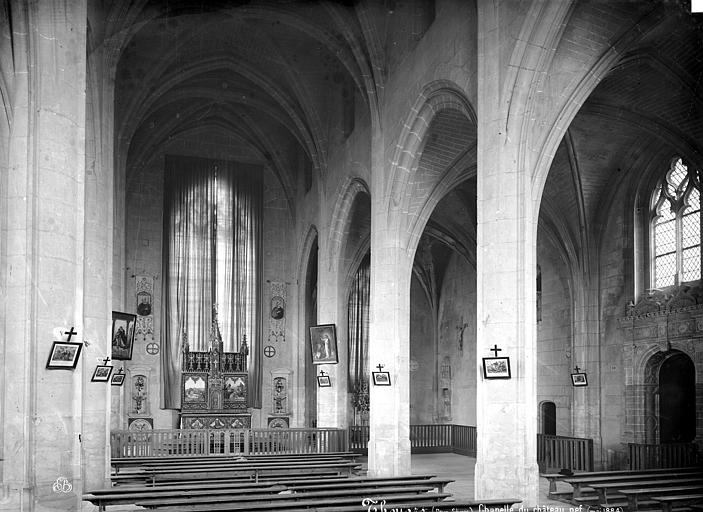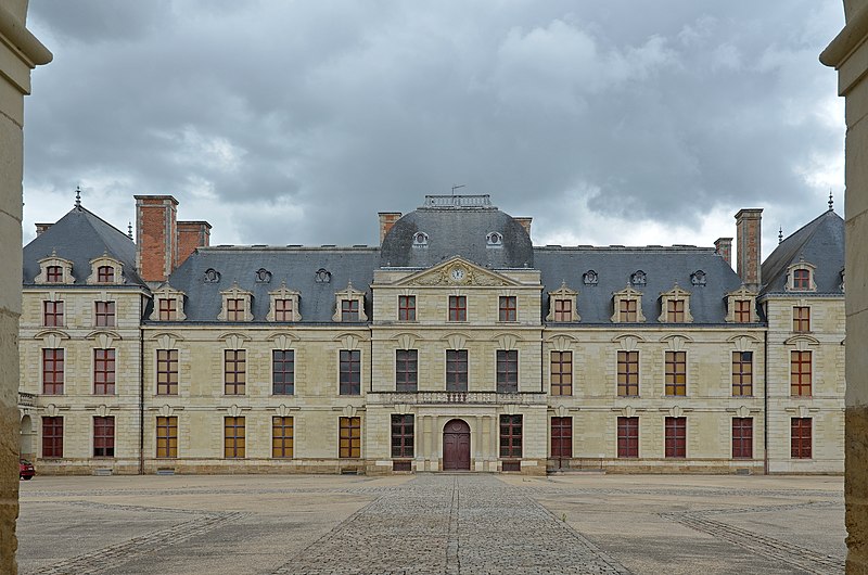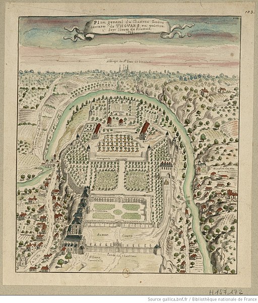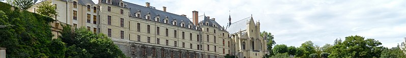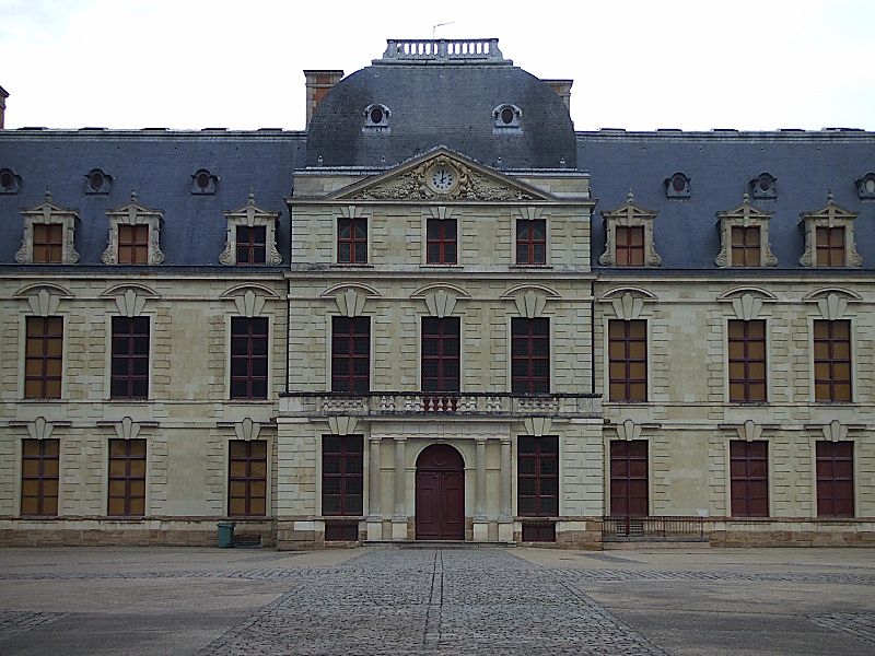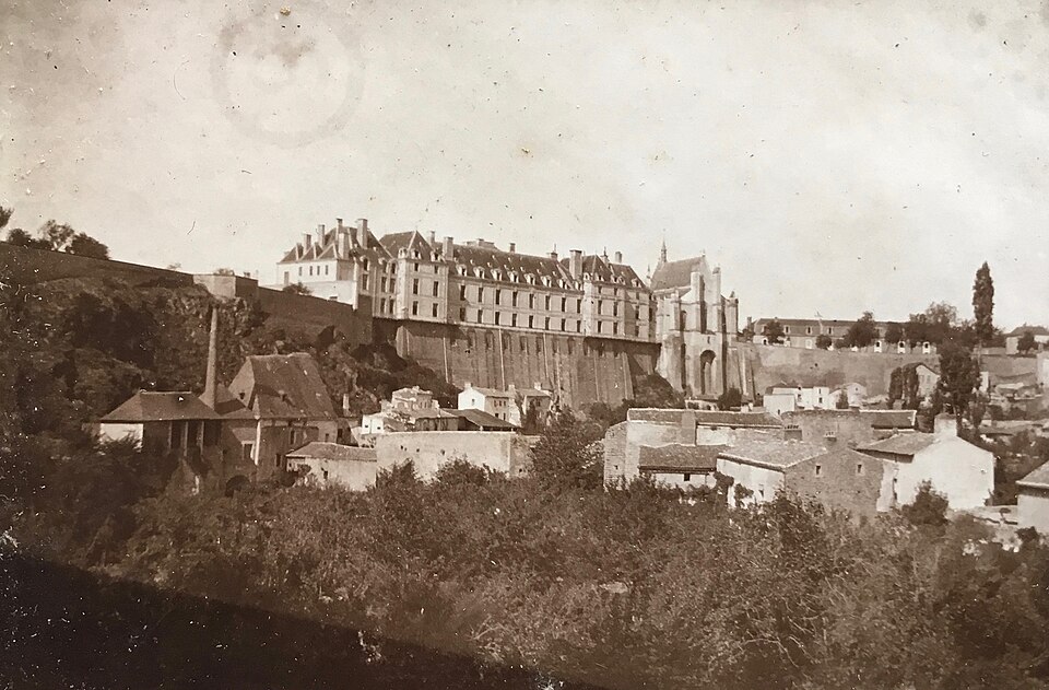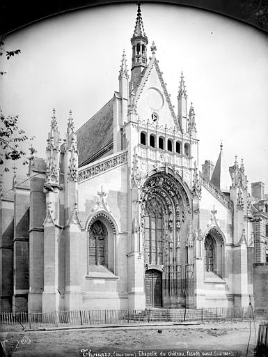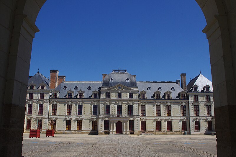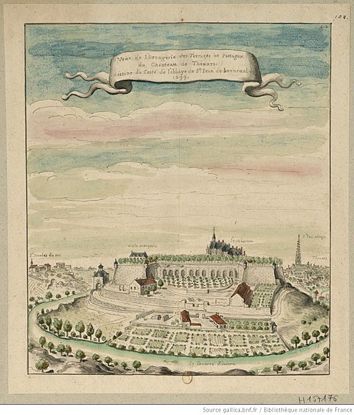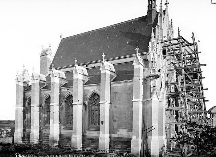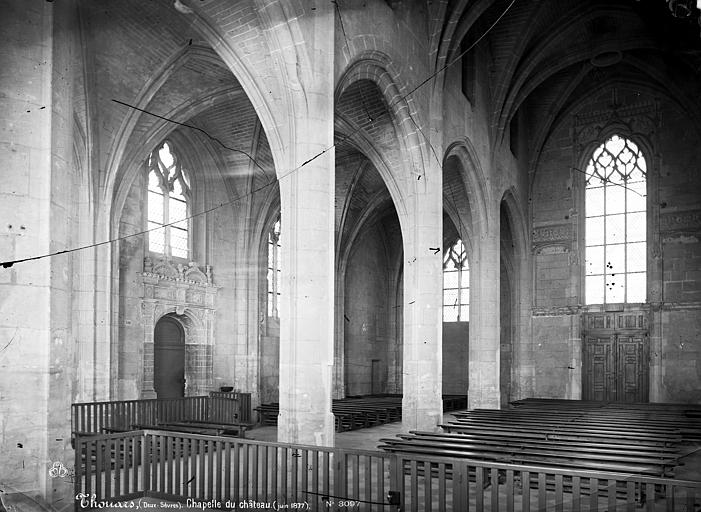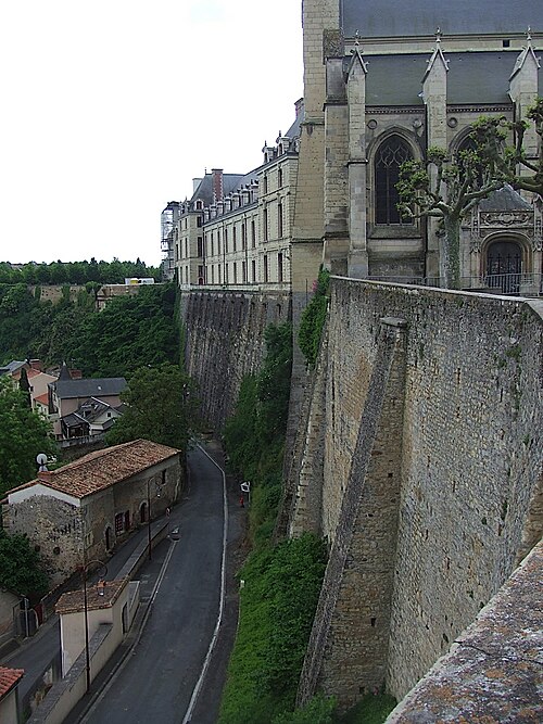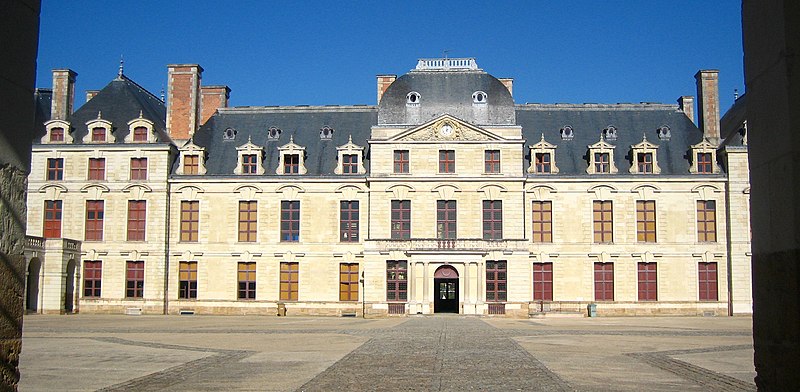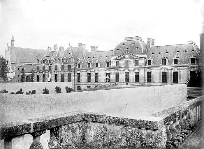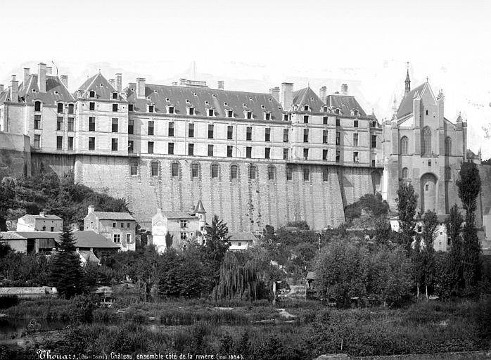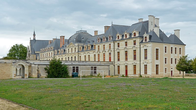 Le château des ducs de La Trémoille se dresse à Thouars, dans les Deux-Sèvres, sur un promontoire dominant un méandre du Thouet ; ses dimensions en firent l’un des plus vastes de France à l’époque de sa construction. Le site accueillait un premier fortin, rasé en 762 par Pépin le Bref, remplacé au Moyen Âge par une forteresse qui défendit Thouars pendant la guerre de Cent Ans et fut reprise notamment par Bertrand du Guesclin en 1372. Passée aux d’Amboise, la vicomté de Thouars fut rattachée au domaine royal puis restituée aux héritiers d’Amboise, les La Trémoille ; Charles IX éleva la vicomté au rang de duché, complété de la pairie sous Henri IV, et la famille conserva le duché jusqu’à la Révolution. Au début du XVIIe siècle, Marie de La Tour d’Auvergne, épouse d’Henri III de La Trémoille, jugea le vieux château trop froid et peu confortable ; un pavillon trapézoïdal, adossé à l’ancien logis, fut d’abord édifié et existe encore. En 1638 l’architecte Jacques Lemercier conseilla d’abandonner les anciens bâtiments ; la duchesse fit raser la forteresse médiévale et réutiliser ses matériaux pour construire une aile reliant le nouveau pavillon à la collégiale Notre-Dame. Avec une façade de plus de 110 mètres et une cour d’honneur entourée de galeries à portiques, le château devint alors l’un des plus importants de France. Les écuries actuelles datent de 1707, d’après un projet de Robert de Cotte, et remplacent des écuries antérieures, élevées vers 1500, dont la grande porte sculptée de 1515 témoignait du rang vicomtal des commanditaires; elles avaient été établies dans la basse-cour, près de la chapelle attenante au logis. Pillé et saisi comme bien national à la Révolution, le château abrita en 1797 la sous-préfecture et le tribunal de première instance ; Napoléon en proposa ensuite la remise à des militaires (général de Vaubois en 1803, puis au maréchal Masséna en 1809) mais ces offres furent refusées en raison des charges d’entretien. Restitué au duc de La Trémoille en 1816, l’édifice fut vendu par l’État à la ville de Thouars en 1833 pour 25 000 francs ; la municipalité y installa une caserne jusqu’en 1849, puis un collège tenu par une congrégation religieuse. En 1869 la famille La Trémoille proposa de racheter le château, proposition rejetée par le conseil municipal ; à partir de 1871 le site fut utilisé comme prison, accueillant notamment de nombreux communards, vocation qui perdura jusqu’en 1925. Depuis les années 1930 le bâtiment principal abrite le collège public Marie de La Tour d’Auvergne ; les écuries ont successivement accueilli l’école municipale d’arts plastiques, le Centre régional « Résistance et Liberté » et, jusqu’en 2019, un centre d’interprétation géologique du Thouarsais. Des messes sont célébrées dans la collégiale par la Fraternité Saint-Pie X et l’enceinte de la cour n’est aujourd’hui pas utilisée. La façade, sobre et dépourvue d’ornements, rappelle les compositions de Jacques Lemercier pour le château de Richelieu et les Tuileries : un pavillon central coiffé d’un fronton à l’antique et d’un dôme, encadré par deux ailes symétriques desservant les appartements, expression d’un style Louis XIII très dépouillé, en accord avec la stricte éducation calviniste de la duchesse. Le corps de logis central, à un niveau et un étage de comble percé de lucarnes, est flanqué de deux pavillons plus élevés ; le pavillon sud, trapézoïdal, est l’élément le plus ancien et était accolé à l’ancien château fort. Le dôme central abrite un escalier dont la balustrade est en marbre de Laval. Le logis s’ouvre sur une cour d’honneur entourée d’une galerie à portique qui forme terrasse et est accessible depuis les appartements du premier étage ; une autre galerie relie le logis à la chapelle. Les matériaux utilisés associent des soubassements en pierre dure locale, dite « pierre de Vrines » ou grison, des murs en tuffeau et des toitures en ardoise. La double chapelle, fondée par Gabrielle de Bourbon pour le château et destinée à abriter la paroisse Notre‑Dame dans sa chapelle basse, fut édifiée à partir de 1499 ; les travaux, initiés par Jean Chahureau puis poursuivis par André Amy à partir de 1505, furent suffisamment avancés en 1509 pour faire intervenir le vitrier Pierre de l’Apostolle, et André Amy réalisa des travaux de sculpture et de ravalement en 1515. La chapelle fut érigée en collégiale en 1515 par le pape Léon X. Le parc et les jardins, détruits au XIXe siècle, ne conservent que l’orangerie, qui aurait servi de modèle à celle de Versailles ; un billet attribue la participation de Le Nôtre à leur création.