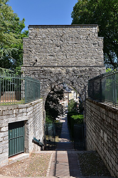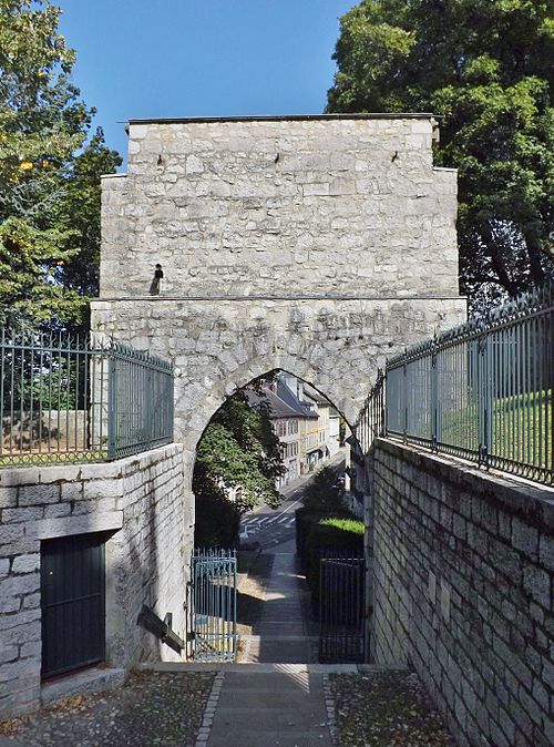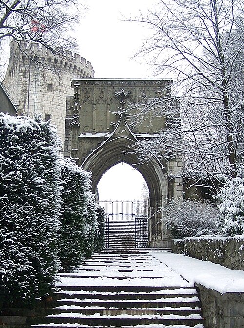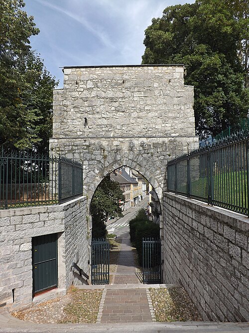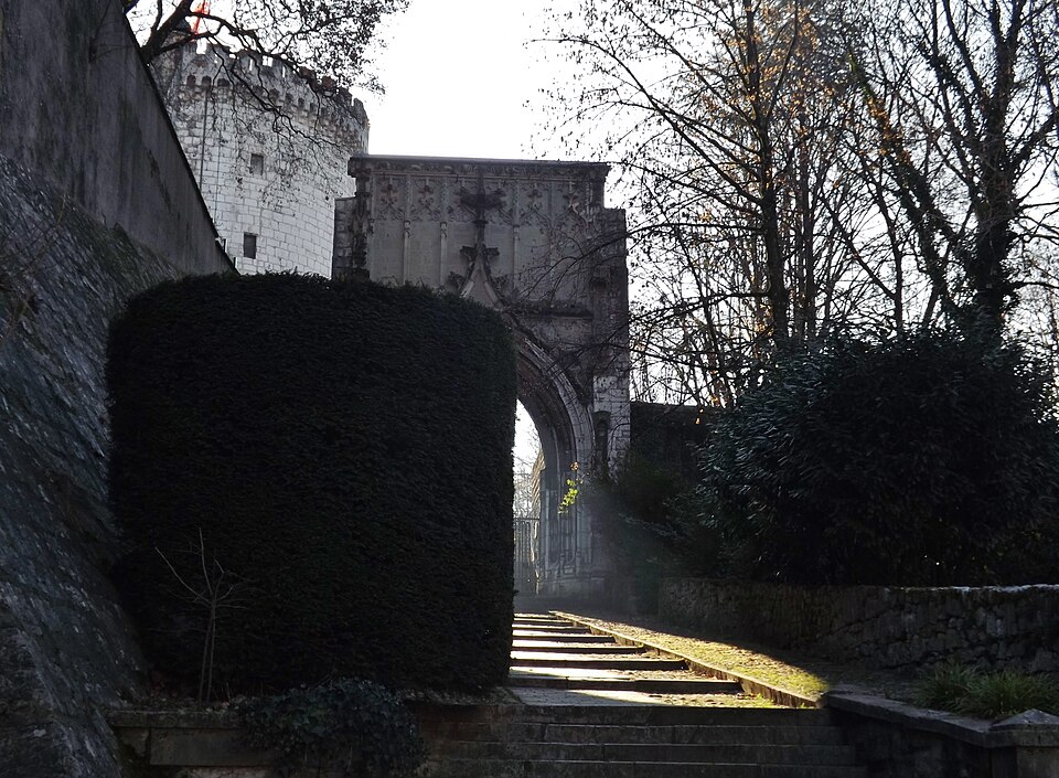 Plusieurs tours et éléments défensifs, parmi lesquels la tour Trésorerie, la tour demi‑ronde, la tour des Archives et la tour Yolande, structurent l'ensemble ; la tour Trésorerie abrita longtemps les archives ducales. La porterie, construite entre 1318 et 1330 et voûtée au XIXe siècle, conserve la porte de la herse datée de 1302‑1303 et des rainures permettant sa manœuvre depuis le chemin de ronde. Le château a connu de nombreux incendies et destructions : il fut endommagé en 1532, fortement touché en 1743 sous l'occupation espagnole, partiellement détruit par un incendie en 1798 qui anéantit des archives, et un nouvel incendie ravagea les combles de l'aile est le 1er novembre 1997.