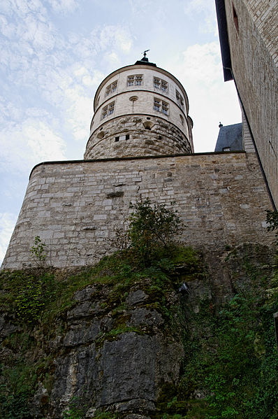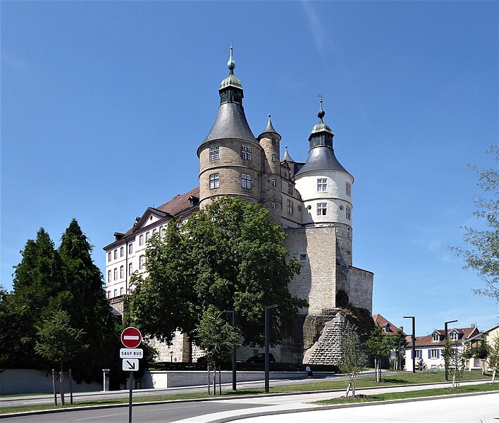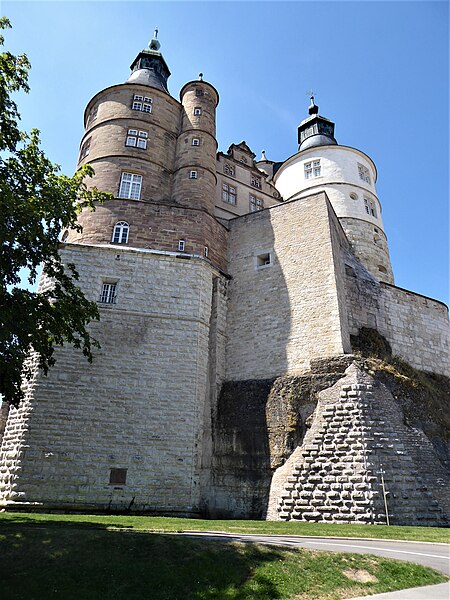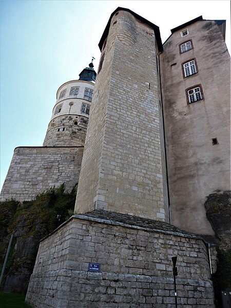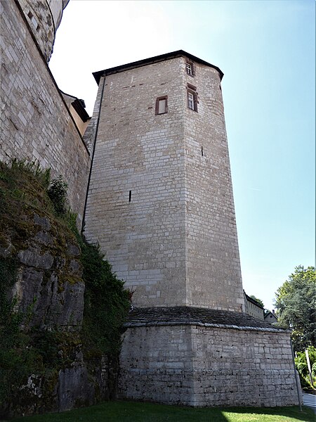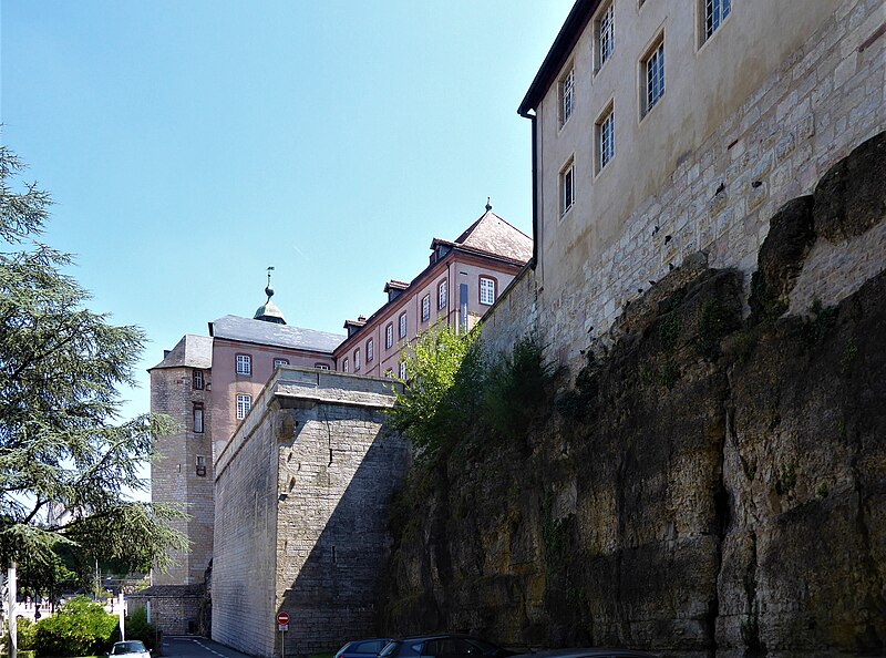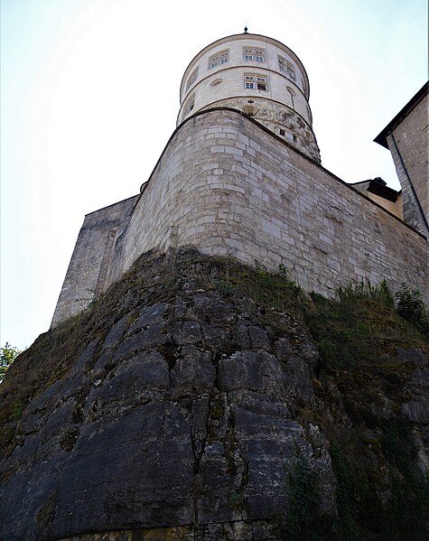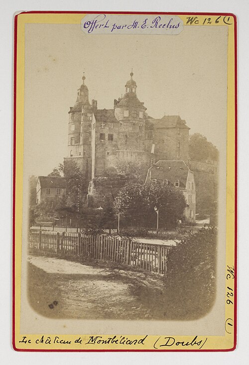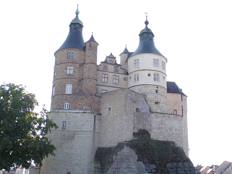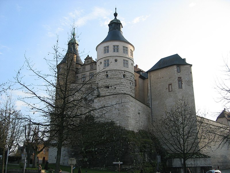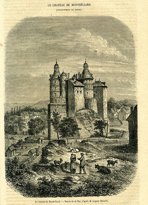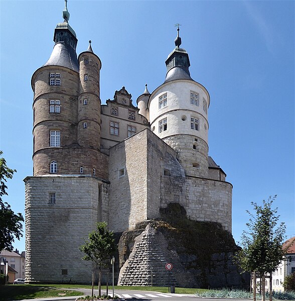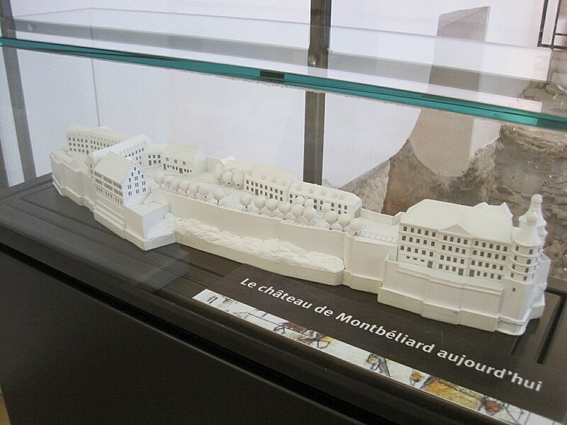 Le château de Montbéliard, ou château des ducs de Wurtemberg, est un château fort situé sur une barre rocheuse dominant le centre-ville de Montbéliard, dans le Doubs. Classé monument historique depuis juillet 1996, il abrite notamment le musée du Château des ducs de Wurtemberg et le musée d'archéologie et d'histoire naturelle de Montbéliard. Les origines du site sont anciennes : on suppose une occupation dès l'époque gallo-romaine et l'éperon est occupé à partir du Xe siècle. L'ensemble actuel ne comporte pas d'éléments antérieurs aux XVe et XVIe siècles et porte la marque d'aménagements des XVIIIe et XIXe siècles, avec notamment le logis reconstruit en 1751 et des bâtiments sur le front nord du XIXe siècle. Le Châtel-Derrière date du XVe siècle ; la maison des Courtisans est attribuée à la fin du XVIe siècle à l'architecte Heinrich Schickhardt ; les murailles ont été élevées entre le XVe siècle et le milieu du XVIIIe siècle, et la porterie du flanc nord appartient au XVIe siècle. Un second château est probablement édifié à la fin du XIIIe siècle (première mention en 1326), mais les vestiges subsistants ne remontent pas au-delà du XVe siècle ; la tour en éperon du puits est mentionnée en 1479. Restauré à la fin du XVIe siècle pour le duc Frédéric de Wurtemberg, l'élévation des étages de la tour Henriette a été refaite par l'architecte Georg Beer de 1589 à 1591 sur une base plus ancienne, et une porte porte la date 1558. Une nouvelle tour dite Neuve ou Frédéric a été engagée à partir de 1572 et jusqu'en 1598, portant une date à sa base, et une machine hydraulique a été installée par Heinrich Schickhardt de 1594 à 1596. Des contreforts ont été ajoutés en 1711 dans la cour de l'Ours ; le corps de logis principal a été reconstruit à partir de 1721 par l'entrepreneur Anthonus Schrotz et les fossés d'entrée ont été comblés. Au XIXe siècle, l'armée a profondément transformé les aménagements intérieurs ; en 1880 une façade à pignon a remplacé le bâtiment en éperon entre les deux tours et un escalier a été édifié dans la cour de l'Ours. Dans les années 1940, le grand escalier a été détruit puis reconstruit selon un plan différent. À l'origine seigneurial, le château appartient au XIIIe siècle à la famille de Montfaucon, vassale du comté de Bourgogne ; en 1407 Henriette de Montfaucon épouse Eberhard IV de Wurtemberg, ce qui fait passer Montbéliard dans le domaine de cette famille sous la suzeraineté du Saint-Empire pour quatre siècles. Rattaché à la République française en 1793, le château sert de garnison jusqu'en 1933. Il a connu des usages variés : dépôt de mendicité de 1811 à décembre 1813, hôpital militaire à diverses reprises, maison d'arrêt dans ses souterrains de 1816 à 1836, et auparavant une prison d'État entre les XVIIe et XVIIIe siècles connue sous le nom de Berloc ou « Trou aux Ours », autour de laquelle une légende évoque un ours installé par le prince Frédéric. À partir de 1930, Émile Blazer, conservateur, initie des restaurations pour faire du château un lieu de transmission de l'histoire et du patrimoine local, et depuis 1937 il abrite des musées retraçant l'histoire du pays et des collections d'archéologie et d'histoire naturelle. Jadis divisé par rapport à l'église Saint‑Maimbœuf en Châtel-Derrière à l'est et Châtel-Devant à l'ouest, le château conservait des fossés franchis par des ponts-levis ; le Châtel-Derrière, flanqué des tours Henriette et Frédéric, servait de lieu de réception et d'appartements privés, tandis que le Châtel-Devant, qui domine l'Allan et la Lizaine, abritait l'entrée principale avec son pont-levis et sa herse, ainsi que les bâtiments de la garnison, les écuries, la fauconnerie et l'arsenal. L'Hôtel du Bailli et le bâtiment de la chancellerie demeurent des éléments remarquables de l'enceinte. À la fin du XVIIIe siècle, l'état de délabrement entraîna démolitions et reconstructions ; au XIXe siècle, la disparition de l'église Saint‑Maimbœuf en 1810 et, en 1880, la destruction de la maison dite « entre les tours », remplacée par une façade ornée de volutes dans le style germanique du XVIIe siècle, ont profondément modifié l'aspect du site.