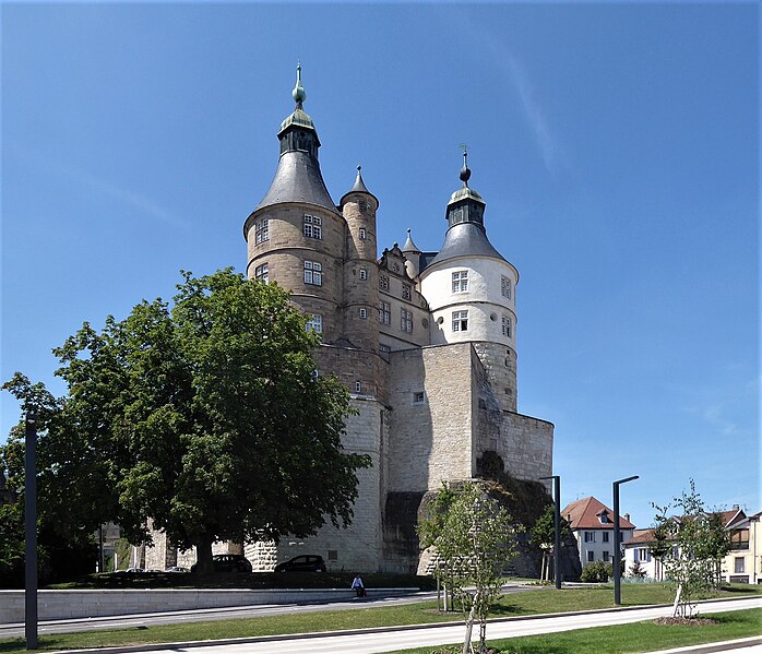 Mur d'enceinte de l'ensemble fortifié sur toute la périphérie de l'oppidum du château, depuis le sol, ou le niveau de l'assise supérieure du rocher ; façades et toitures de l'ensemble des bâtiments construits sur l'oppidum du château ; porterie ; tour Henriette du Châtel-Derrière, en totalité ; caves voûtées de l'ancienne chancellerie ; escalier en vis de la machine hydraulique de Schickardt ; pièce voûtée au sous-sol et puits dans la tour en éperon du Châtel-Derrière ; caves de la maison des courtisans et le plafond de la salle d'audience au rez-de-chaussée ; sol de la totalité de la terrasse de l'oppidum circonscrit par le mur d'enceinte avec les substructures et les vestiges archéologiques qu'il contient (cad. BW 98) : classement par arrêté du 18 juillet 1996