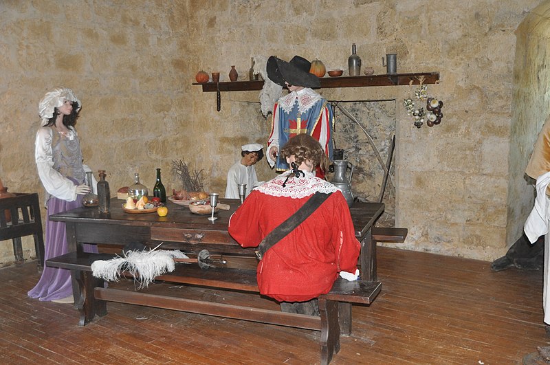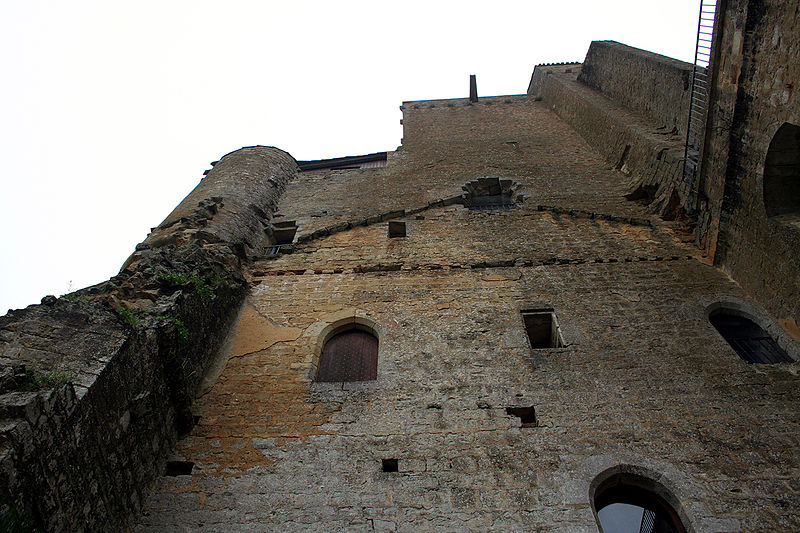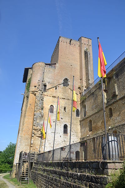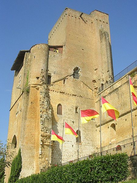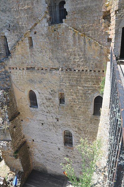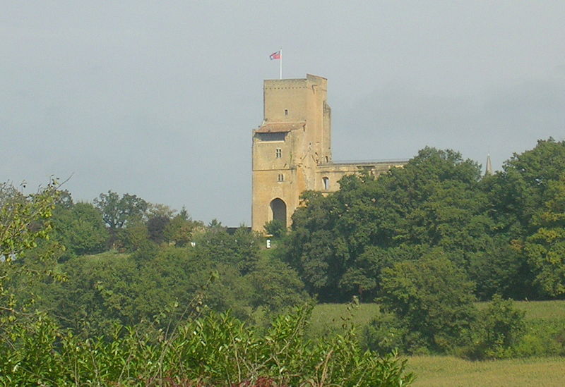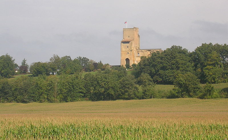 Le château dépendait du comté d'Armagnac et appartenait aux seigneurs de Termes d'Armagnac, vassaux du comte ; l'un d'eux combattit aux côtés de Jeanne d'Arc. Les vestiges comprennent un donjon de plan carré auquel est accolée une tour de plan rectangulaire. Le donjon est formé de quatre murs d'environ deux mètres d'épaisseur et présente trois niveaux de salles voûtées en berceau brisé, chacune éclairée par des fenêtres à meneaux et dotée d'une cheminée. Les étages sont desservis par un escalier circulaire en pierre et reliés entre eux par des galeries de communication ; des latrines y sont également aménagées. Le sommet de la tour est pourvu d'une charpente. Au sud subsiste un corps de bâtiment plus bas, non voûté, dont la base comporte deux grands arcs aujourd'hui murés. À l'est, un grand mur prolongeant l'une des faces du donjon marque les vestiges d'un corps de logis, et les abords conservent des traces d'autres constructions.