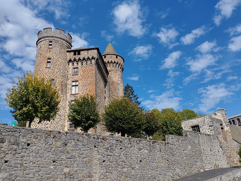 Le château des Ternes, situé dans la commune éponyme du Cantal, occupe un rôle stratégique à partir du XIe siècle. Il est pris et incendié par les Anglais en 1383 puis reconstruit au XVe siècle, présentant alors un logis de plan massé surmonté d'un chemin de ronde sur mâchicoulis, flanqué d'une tour à l'angle sud-ouest et d'une tour d'escalier sur la façade est. L'actuel château, situé dans le bourg, a fait l'objet d'une reconstruction au début du XVIe siècle, époque à laquelle a été élevée une seconde tour latérale ; une tour antérieurement abaissée a été relevée au XXe siècle. En élévation, il se compose d'un corps de logis cantonné de deux grosses tours rondes et d'un donjon carré central. Au début du XXe siècle, un nouveau propriétaire confie des travaux à l'architecte Émile Lemaigre, qui façonne un château « médiéval idéal » : il ajoute une tour à l'angle nord-est et accentue le caractère défensif par la restauration ou l'introduction d'éléments de fortification, tels que chemin de ronde, crénelages, mur d'enceinte avec porte à bretèche et échauguette d'angle. Le décor intérieur comporte des éléments néogothiques et des peintures dans le style néo-Louis XIII ; l'iconographie, pour partie copiée sur celle du château de Montvallat, illustre les Métamorphoses d'Ovide et les Emblèmes de l'Amour de Vaenius. Les jardins, aménagés en 1910 par le paysagiste Treyve, mêlent une partie classique à la française et un jardin anglo-chinois.