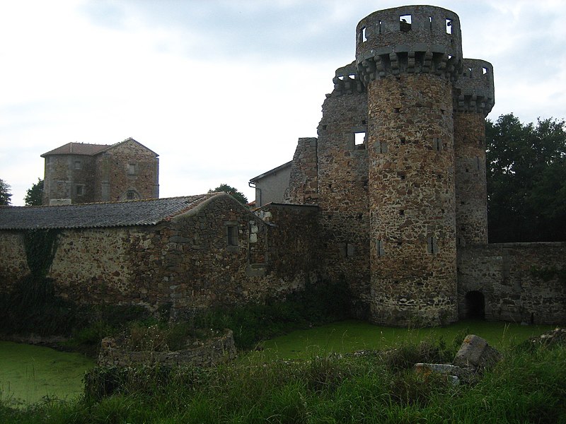 Le châtelet, flanqué de deux tours, conserve au rez-de-chaussée une porte charretière et une poterne qui ont été rouvertes lors des chantiers d'été, et laisse apparaître les passages d'origine du pont-levis. La tour-donjon, anciennement tronquée et longtemps exposée aux intempéries, a retrouvé une toiture en 2005, posée un niveau en dessous de la toiture initiale. L'accès au premier niveau se fait par une porte sur la face sud, sans communication entre le premier et le second niveau. Le second niveau s'atteint depuis la cour ; sa porte est surmontée d'un panneau sculpté très abîmé dans un tuf calcaire fragile. Un escalier en hélice mène à une chapelle dotée d'une baie gothique : ses murs ont été ornés des blasons de la famille de Sanzay au XVIe siècle et son sol est pavé d'une décoration géométrique.