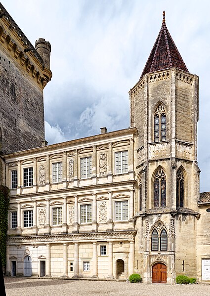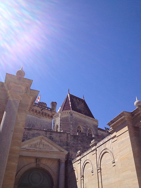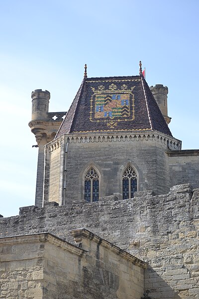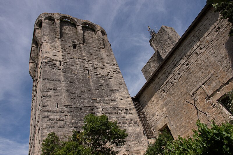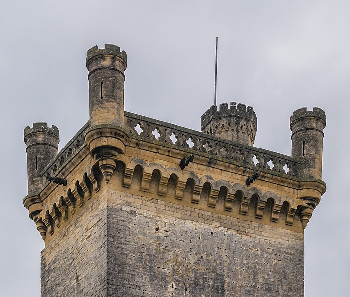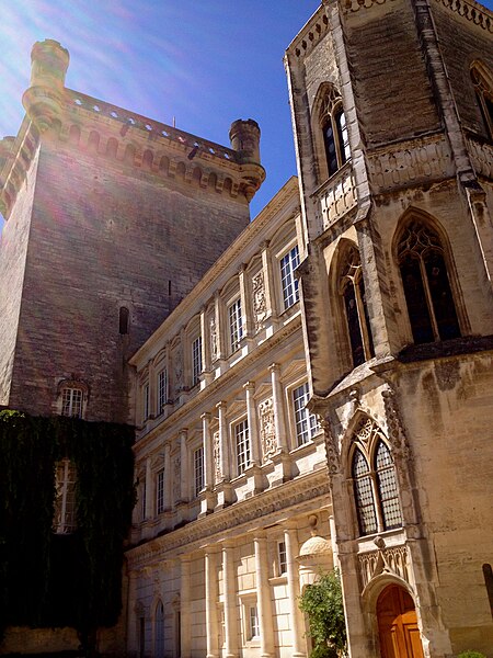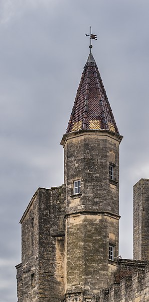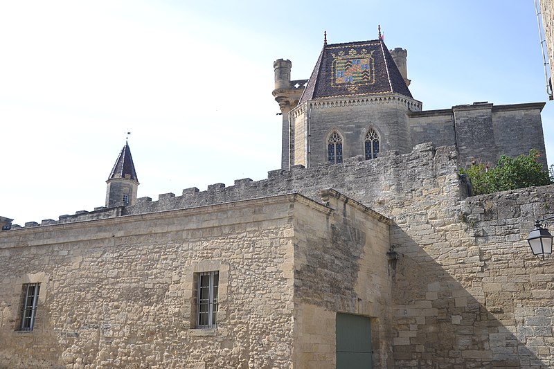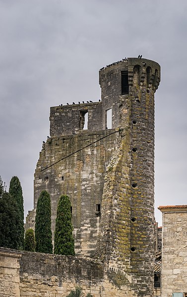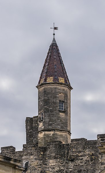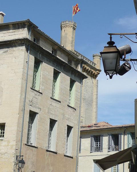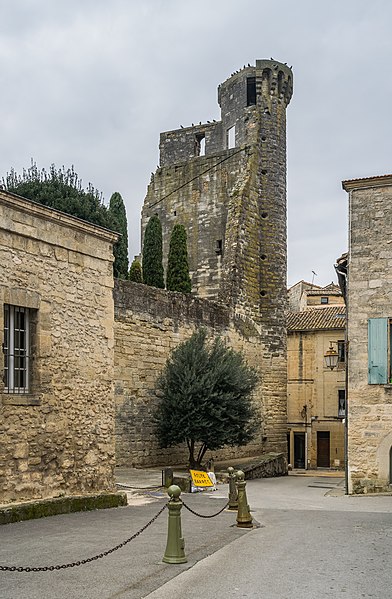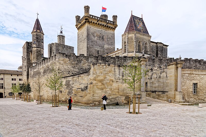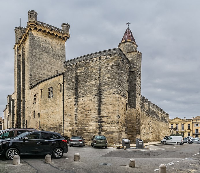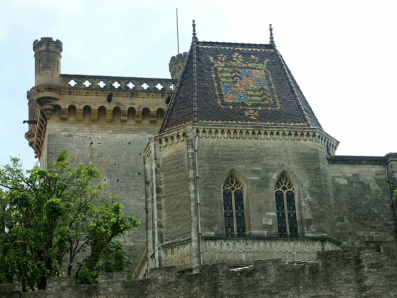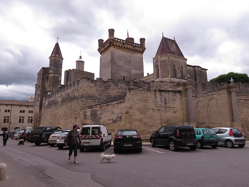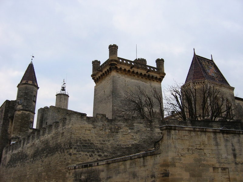 Le château dit Le Duché, ou château d'Uzès, est un château fort du XIe siècle situé dans la ville médiévale d'Uzès, dans le Gard, en Occitanie. Il constitue le fief de la même maison depuis neuf siècles et fait l'objet d'une inscription aux monuments historiques depuis 1934, avec un classement partiel datant de 1889. Le site était occupé dès l'époque romaine par un castrum établi sur le point culminant d'Ucetia, entre Languedoc et Provence, à proximité des Volques Arécomiques. La seigneurie d'Uzès fut fondée au XIe siècle par Elzéart d'Uzès et la ville fortifiée ainsi que le château furent édifiés sur cet ancien castrum. L'ensemble fortifié comprend remparts et tours d'angle, un donjon de 42 mètres appelé tour Bermonde élevé au XIIe siècle par Bermond Ier d'Uzès, un logis seigneurial dont la façade Renaissance date du XVIe siècle, des caves millénaires et une chapelle castrale gothique flamboyante du XVIe siècle coiffée d'une toiture en tuiles vernissées de Bourgogne portant les armes d'Antoine de Crussol. Le bâtiment dit de la Vicomté a été édifié par Robert, descendant direct à la huitième génération du premier seigneur d'Uzès, après que Philippe VI eut élevé en 1328 la viguerie d'Uzès en vicomté pour le récompenser de sa bravoure à la bataille de Cassel. L'aile de la Renaissance est due à Antoine de Crussol, premier duc d'Uzès, dont la fidélité à la cause royale pendant les guerres de Religion lui valut les faveurs de Charles IX. Antoine de Crussol, membre du conseil privé, chevalier d'honneur de la reine et de l'ordre de Saint-Michel, commandait pour le roi les provinces du Languedoc, de Provence et du Dauphiné ; en 1572 il obtint l'érection de son duché « en prairie afin de le "décorer de tous les titres et prérogatives qui pourraient de plus en plus l'exhausser et extoller" ». En 1566 l'évêque Jehan II de Saint-Gelais convertit le diocèse d'Uzès au protestantisme ; la cité, largement protestante, prit parti pour la Réforme et fut durement éprouvée par les guerres de Religion. Alors vicomte protestant, Antoine de Crussol s'efforça de réconcilier catholiques et protestants du sud de la France ; Charles IX érigea Uzès en duché en 1565 et le nomma premier duc, puis duc et pair de France en février 1572, avant le massacre de la Saint-Barthélemy et la conversion ultérieure du duc au catholicisme. Le château fut vendu comme bien national pendant la Révolution et transformé en collège ; le dixième duc, Marie‑François‑Emmanuel de Crussol, le racheta lors de la Restauration en 1824, mais il redevint par la suite un collège en raison de difficultés financières. En 1951 la marquise de Crussol entreprit d'importants travaux de restauration et l'acheta en 1957 à son neveu Emmanuel Jacques, quinzième duc d'Uzès ; au début des années 1960 elle intervint auprès d'André Malraux, et la loi Malraux de 1962 permit la création d'un secteur sauvegardé à Uzès en 1965. Aujourd'hui le château est ouvert à la visite et reste la propriété du dix-septième duc, Jacques‑Emmanuel de Crussol d'Uzès ; la cité médiévale est, avec le château, protégée comme secteur sauvegardé depuis 1978 et labellisée ville d'art et d'histoire depuis 2008. L'alignement des trois tours-donjons d'Uzès symbolise les trois pouvoirs médiévaux — royal, épiscopal et ducal — : la tour du Roi, dite aussi tour des Prisons, avec ses mâchicoulis et son jardin médiéval, la tour de l'Évêque ou tour de l'Horloge couronnée d'un campanile, et la tour du Duché, le donjon de 42 mètres du XIIe siècle ; s'y ajoute la tour Fenestrelle de la cathédrale Saint-Théodorit, haute de 42 mètres et datée du XIIe siècle, qui forme une quatrième tour caractéristique d'Uzès.