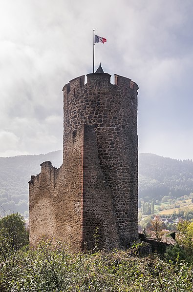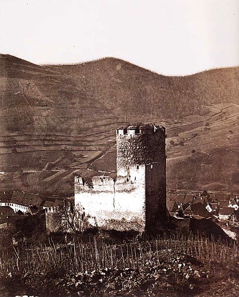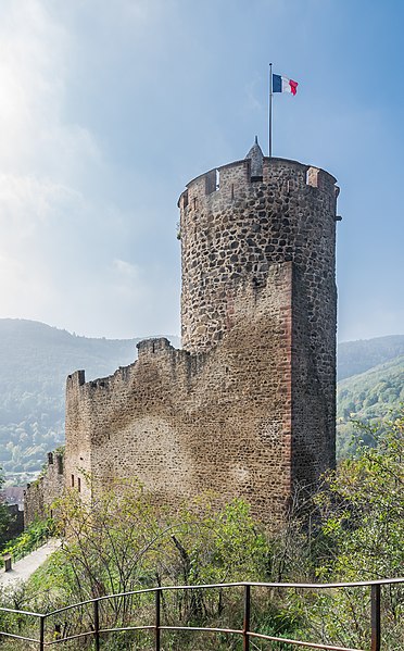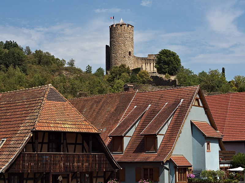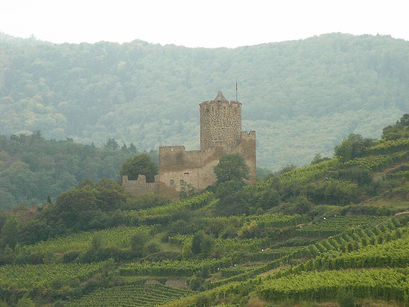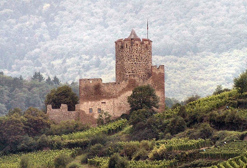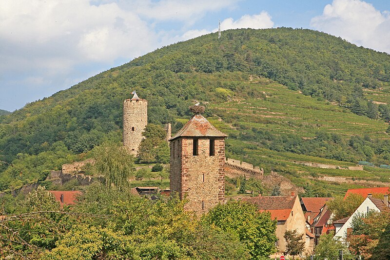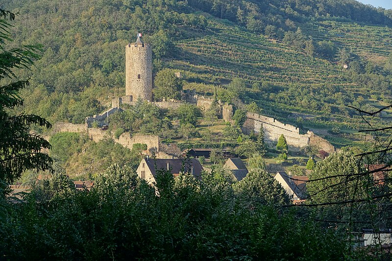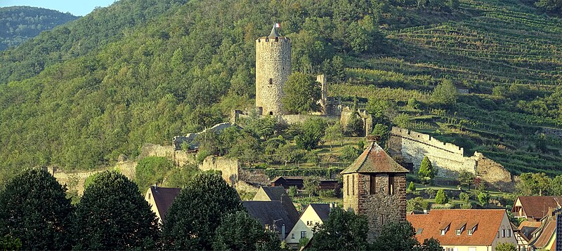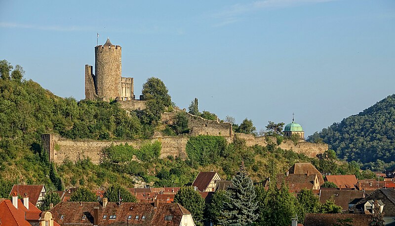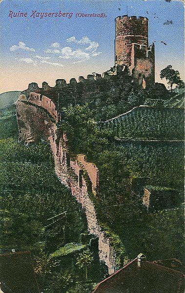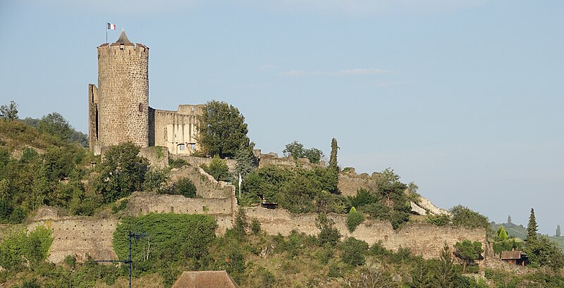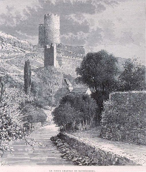 Le Schlossberg, appelé aussi château de Kaysersberg, est un château fort du XIIIe siècle en ruines qui domine la crête granitique au nord‑ouest de la commune de Kaysersberg (Haut‑Rhin). Il a été édifié au début du XIIIe siècle pour l'empereur Frédéric II de Hohenstaufen par le bailli impérial Albin Woelflin ; l'enceinte date du premier tiers de ce même siècle. Le site fut acquis en 1227 des sires de Horbourg et de Ribeaupierre. Par sa position, le château verrouillait un passage transvosgien vers la Lorraine et assurait ainsi un rôle stratégique pour l'Empire. Le donjon circulaire, la partie la plus ancienne, est l'un des premiers de ce type dans la vallée du Rhin supérieur et a été conçu dans le même dessein que celui du château de Pflixbourg. La courtine primitive, interrompue par le donjon, fut remplacée après 1261 par une courtine enchemisant le donjon selon un plan en bec, permettant une circulation continue sur la muraille et doublant la défense du côté de l'attaque. Le flanc oriental de la chemise subsiste sur toute sa hauteur — le logis du XIIIe siècle s'y adossait — et l'amorce du flanc occidental est également conservée. Au XIVe siècle, le château servait de résidence au prévôt ou bailli impérial. Après un incendie, l'enceinte fut surhaussée de quatre mètres et la chemise doublée. Dans la seconde moitié du XVe siècle, les défenses furent modernisées pour l'usage des armes à feu : les créneaux furent fermés par des volets en bois, les merlons pourvus de fentes de tir et le chemin de ronde entièrement couvert. À cette époque, le château n'était plus qu'un sous‑bailliage et son personnel avait été fortement réduit. Pendant la guerre des Paysans, il fut assiégé, puis restauré en 1583 par Lazarre de Schwendi. Les fouilles et l'étude archéologique montrent un abandon de l'édifice à la fin du XVIe siècle. Vendu avec les biens nationaux, il fut acquis en 1796 par François‑Joseph Boecklin de Boecklinsau, qui y planta des vignes, puis il passa à la famille Bastard. Propriété de l'État (ministère de la Culture) jusqu'en 2008, la propriété a été transférée à la commune le 1er janvier 2008. Les ruines sont classées au titre des monuments historiques depuis le 1er octobre 1841 et les vestiges de l'enceinte reliant le château au système fortifié de la ville ont été inscrits le 18 septembre 1995. Des travaux de restauration ont été menés en 1999 par des bénévoles de l'association Chantiers histoire et architecture médiévales. Le site, de plan triangulaire, est dominé à la pointe dirigée vers l'attaque par le donjon circulaire ; les murs intérieurs étaient recouverts de crépi. De nombreuses publications et ressources patrimoniales documentent ce monument et son histoire.
