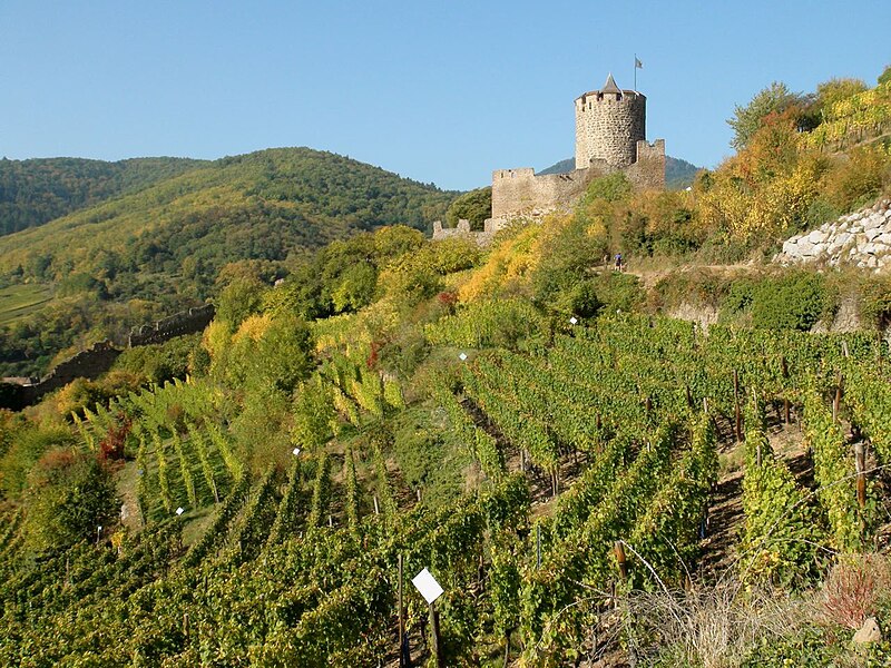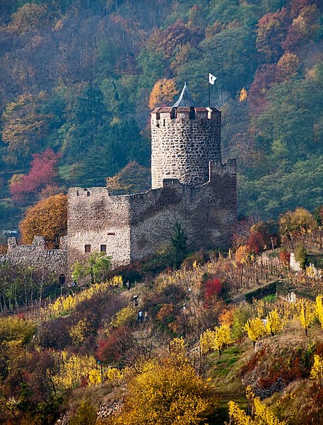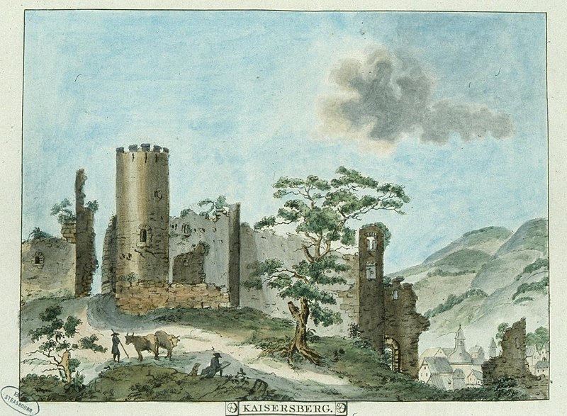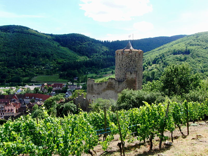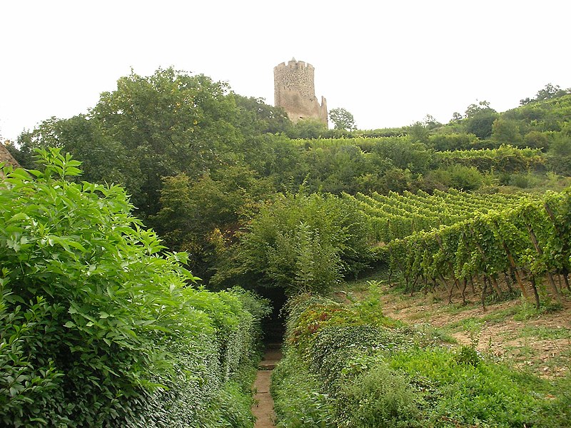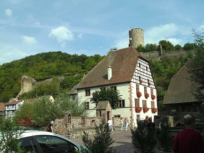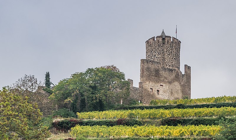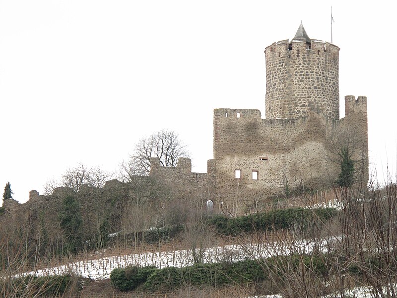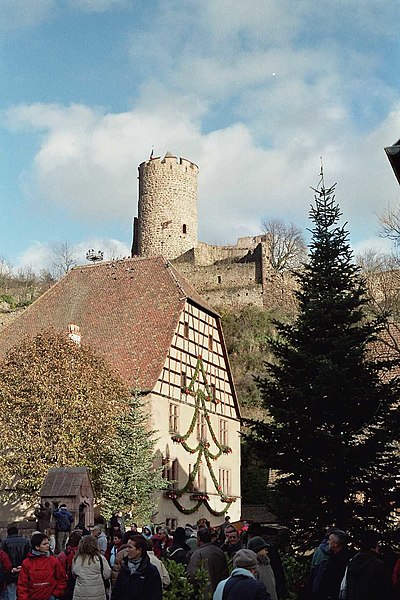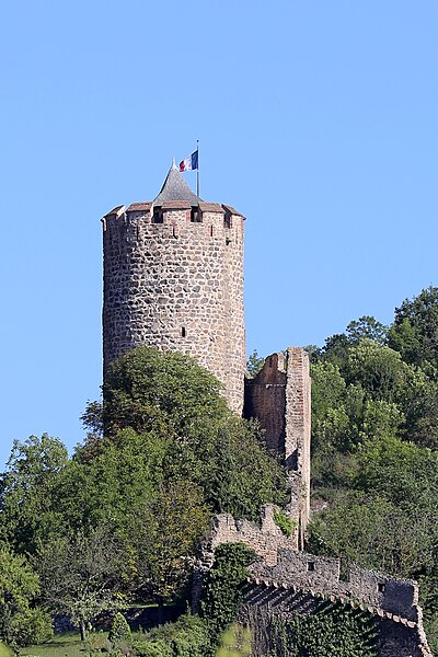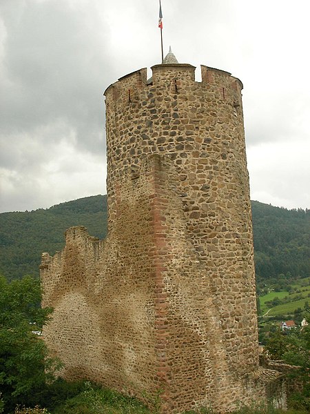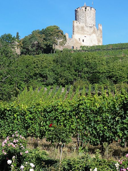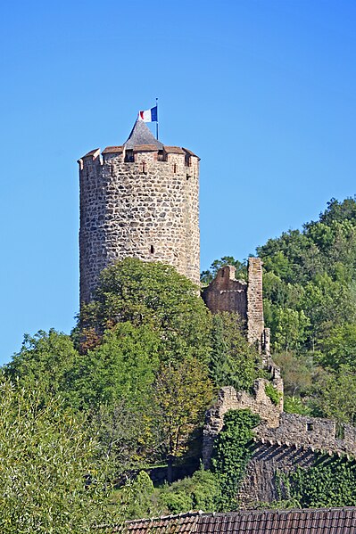 Le Schlossberg, appelé aussi château de Kaysersberg, est un château fort du XIIIe siècle en ruines qui domine la crête granitique au nord‑ouest de la commune de Kaysersberg (Haut‑Rhin). Il a été édifié au début du XIIIe siècle pour l'empereur Frédéric II de Hohenstaufen par le bailli impérial Albin Woelflin ; l'enceinte date du premier tiers de ce même siècle. Le site fut acquis en 1227 des sires de Horbourg et de Ribeaupierre. Par sa position, le château verrouillait un passage transvosgien vers la Lorraine et assurait ainsi un rôle stratégique pour l'Empire. Le donjon circulaire, la partie la plus ancienne, est l'un des premiers de ce type dans la vallée du Rhin supérieur et a été conçu dans le même dessein que celui du château de Pflixbourg. La courtine primitive, interrompue par le donjon, fut remplacée après 1261 par une courtine enchemisant le donjon selon un plan en bec, permettant une circulation continue sur la muraille et doublant la défense du côté de l'attaque. Le flanc oriental de la chemise subsiste sur toute sa hauteur — le logis du XIIIe siècle s'y adossait — et l'amorce du flanc occidental est également conservée. Au XIVe siècle, le château servait de résidence au prévôt ou bailli impérial. Après un incendie, l'enceinte fut surhaussée de quatre mètres et la chemise doublée. Dans la seconde moitié du XVe siècle, les défenses furent modernisées pour l'usage des armes à feu : les créneaux furent fermés par des volets en bois, les merlons pourvus de fentes de tir et le chemin de ronde entièrement couvert. À cette époque, le château n'était plus qu'un sous‑bailliage et son personnel avait été fortement réduit. Pendant la guerre des Paysans, il fut assiégé, puis restauré en 1583 par Lazarre de Schwendi. Les fouilles et l'étude archéologique montrent un abandon de l'édifice à la fin du XVIe siècle. Vendu avec les biens nationaux, il fut acquis en 1796 par François‑Joseph Boecklin de Boecklinsau, qui y planta des vignes, puis il passa à la famille Bastard. Propriété de l'État (ministère de la Culture) jusqu'en 2008, la propriété a été transférée à la commune le 1er janvier 2008. Les ruines sont classées au titre des monuments historiques depuis le 1er octobre 1841 et les vestiges de l'enceinte reliant le château au système fortifié de la ville ont été inscrits le 18 septembre 1995. Des travaux de restauration ont été menés en 1999 par des bénévoles de l'association Chantiers histoire et architecture médiévales. Le site, de plan triangulaire, est dominé à la pointe dirigée vers l'attaque par le donjon circulaire ; les murs intérieurs étaient recouverts de crépi. De nombreuses publications et ressources patrimoniales documentent ce monument et son histoire.