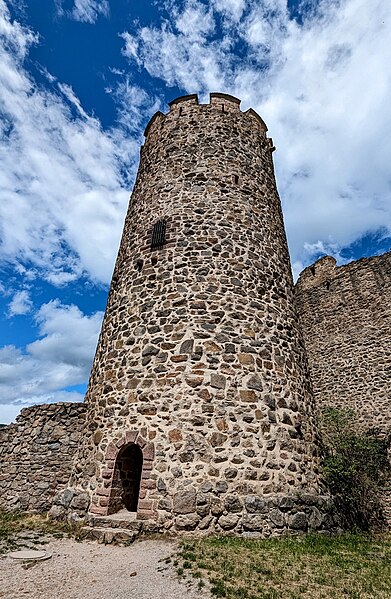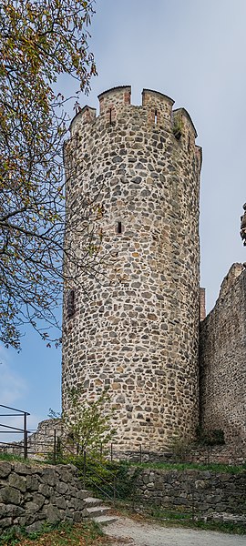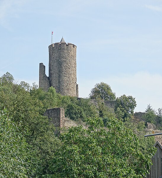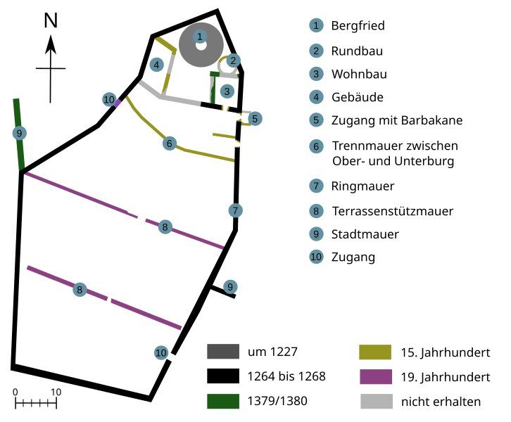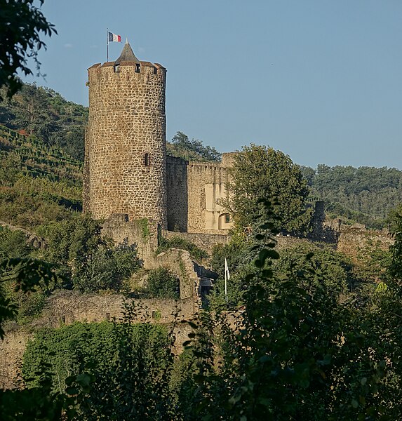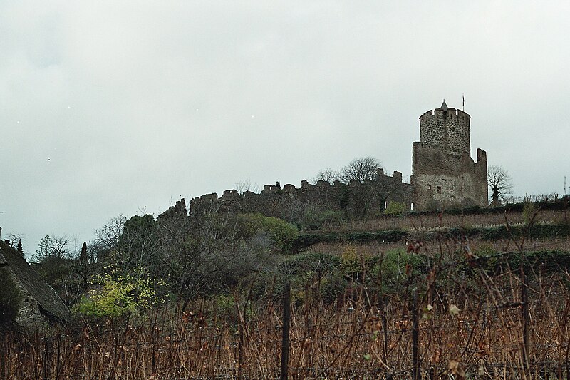 Ruines du château (cad. 4 45 ; 12 106) : classement par arrêté du 1er octobre 1841. Vestiges de l'enceinte reliant le château au système fortifié de la ville, tels qu'ils figurent sur le plan annexé à l'arrêté (cad. 1 2, lieudit Ville ; 4 12, 14 à 16, 18 à 20, 23, 44, 47, 51, lieudit Ville, 17, sis 13 rue des Forgerons) : inscription par arrêté du 18 septembre 1995