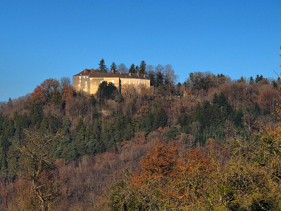 Le logis en totalité, avec ses décors immeubles par destination, sa cour et ses terrasses ; la cour des communs et les façades et toiture de la maison du gardien ; les soutènements, murs et arcades voûtées des terrasses alentours du corps de logis et de la cour des communs ; le parterre ovale et le jardin à murs coupe-vent ; le parc avec la glacière et les murs qui l'entourent ; le mur du verger ; les sols, les sous-sols et les vestiges archéologiques qu'ils contiennent pour les parcelles 88 à 96 et 100 (cad. A 82, 88 à 96, 98 à 100) : inscription par arrêté du 4 décembre 2002