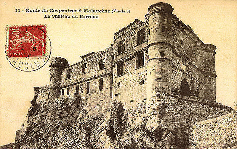 Le château du Barroux, situé dans le village éponyme en Vaucluse, est un monument historique. Dès sa création il fut le siège seigneurial de la famille des Baux. Jusqu’au XVIIIe siècle, la propriété changea plusieurs fois de mains, notamment aux familles de Budos, Ricavi, Peyre, Cardaillac, Rovigliasc, Pelletier de Gigondas, Joannis et Moret. À l’origine rattaché à la principauté d’Orange puis au domaine des comtes de Toulouse, il devient en 1274 un fief du comtat placé sous la mouvance de la chambre apostolique. Pendant ses premiers siècles, le site se réduit à un donjon entouré de murailles. En 1536, lors du passage aux Rovigliasc, comtes de la Celle en Piémont, il est reconstruit et embelli ; au XVIe siècle sa silhouette se dote de tours d’angle et de fenêtres à meneaux d’influence Renaissance. Pendant les guerres de Religion, en 1563, le château est livré sans combat aux huguenots par Barthélémy Bellon puis repris la même année par les catholiques, sans dommages importants. Jusqu’à la fin du XVIIIe siècle, la forteresse, le ravelin et le sanctuaire de Notre-Dame de la Brune témoignent de son bon état. Entre 1680 et 1690, la place forte est agrandie et ses remparts renforcés selon des principes proches de ceux de Vauban, avec création d’une cour intérieure. Ces aménagements, alliés à des pierres sculptées et à de nombreuses bouches à feu dans les murs, révèlent un caractère à la fois raffiné et résolument défensif ; le château disposait alors de sept pièces d’artillerie de bronze. En 1791, l’occupation par les troupes révolutionnaires entraîne des dégradations et l’abandon du bâtiment, qui sert de carrière de pierres pendant plus d’un siècle et tombe en ruine jusqu’à la fin des années 1920. En 1929, André Vayson de Pradenne achète les ruines et entreprend la reconstruction à ses frais ; il meurt accidentellement en 1939 et les travaux, presque achevés, sont alors interrompus. Pendant la Seconde Guerre mondiale, des troupes allemandes occupent le château comme poste d’observation ; le 21 août 1944, après une attaque de résistants, des représailles aboutissent à l’incendie du château, qui brûle pendant dix jours. Les restaurations restent suspendues plus de quinze ans, les portes étant murées par précaution, puis reprennent dans les années 1960 grâce au financement du docteur Mouliérac-Lamoureux. En 1983, l’association Les Amis du Château du Barroux prend le relais pour sa sauvegarde. En 2020, la famille Vayson de Pradenne met le site aux normes ERP et lance un projet de réhabilitation ; le château est ouvert aux visiteurs et accueille des manifestations culturelles et artistiques. Le site a été inscrit à l’inventaire supplémentaire des monuments historiques par arrêté du 9 décembre 1920, puis classé monument historique par arrêté du 27 mai 1963.