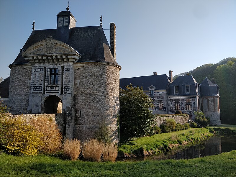 Du château primitif subsistent la motte, les douves — notablement élargies par la suite — et cinq tours. L’entrée et les écuries constituent de bons exemples du style Henri IV cauchois. Les façades et toitures du bâtiment d’entrée, du bâtiment des communs et de la tour sont inscrites au titre des monuments historiques par arrêté du 22 décembre 1952.