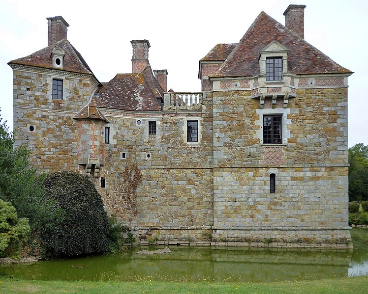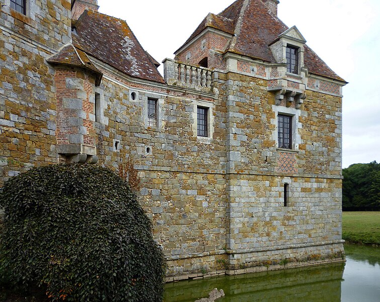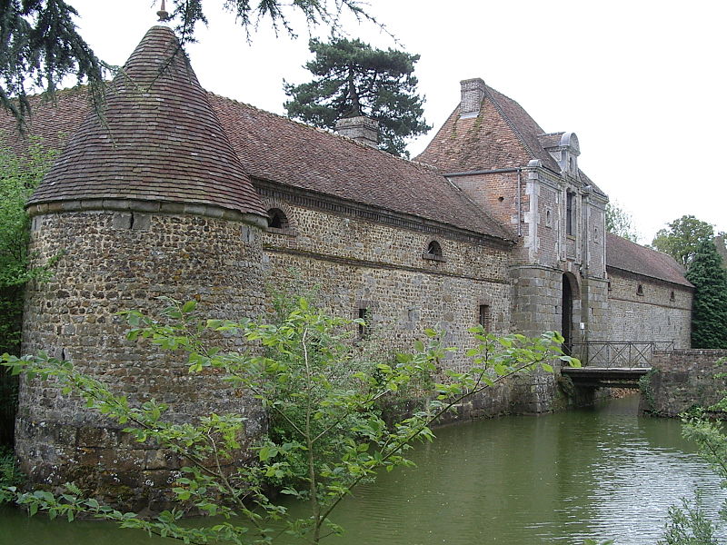 Le château du Blanc-Buisson est une demeure féodale située à Saint-Pierre-du-Mesnil, dans le département de l'Eure en Normandie. Construit en 1290 par Colinet Lecomte, connétable de Charles le Mauvais et allié des Anglais, il présente une composition principale en « I » : un logis à ailes renforcé d’un donjon carré. Partiellement détruit dès 1355 pendant la guerre de Cent Ans, il a été reconstruit par Jean du Merle après son mariage en 1474 avec Marie Le Conte de Nonant, puis remanié au XVIe siècle par son fils Jacques Ier du Merle. Les du Merle ont réaménagé le château dans le goût de la Renaissance, en réutilisant les pierres anciennes lors des restaurations successives. Au XVIIIe siècle, un incendie de l’aile nord a entraîné de nouveaux remaniements, puis la propriété a été vendue par la famille du Merle en 1801. Une famille propriétaire ultérieure a poursuivi des modifications au XIXe siècle, aboutissant à la transmission jusqu’à la famille La Fresnaye. Restauré depuis une trentaine d’années, le domaine est animé par l’Association pour la promotion du Blanc-Buisson (ASPROB) et accueille de nombreuses manifestations, notamment des sons et lumières, un festival des arts du spectacle, des visites scolaires, et depuis 2018 des séminaires, réceptions et séjours. Parmi les figures liées au lieu figurent Jean IV du Merle, baron d’Orbec et commandant de Lisieux, compagnon du duc de Montpensier dans ses combats contre les ligueurs et les Espagnols, ainsi que l’écrivain Jean de La Varende, qui passa une partie de son enfance au Blanc-Buisson. Le château est partiellement inscrit au titre des monuments historiques : les façades et les toitures, les douves et les constructions élevées sur le terre-plein ont été inscrites par arrêté du 22 novembre 1949, et le parc entourant le domaine par arrêté du 28 mars 1952.