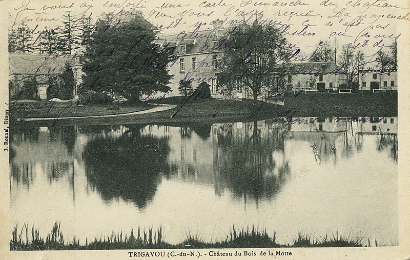 Le château du Bois de la Motte se situe sur la commune de Pleslin-Trigavou, dans les Côtes-d'Armor en Bretagne, au sud-ouest de l'ancienne paroisse de Trigavou, près de la D.2. L'ensemble — château, motte et chapelle — occupe une île au milieu d'un étang qui lui sert de douves. Le bâtiment principal se présente comme un long corps percé de rares fenêtres, doté d'un pavillon central plus élevé, coiffé à la mansart, qui abrite l'entrée. Ce pavillon conserve des ouvertures destinéess aux poutres qui actionnaient l'ancien pont-levis, remplacé depuis par un pont de pierre. La châtellenie fut érigée en bannière en 1433, puis élevée en marquisat en 1622 pour Jean (de Bellouan) d'Avaugour-Saint Laurent. Le château est inscrit au titre des monuments historiques par arrêté du 28 mai 1951. Des références sont consultables dans la base Mérimée (notice PA00089424) et sur les portails consacrés aux châteaux, aux Côtes-d'Armor et aux monuments historiques.