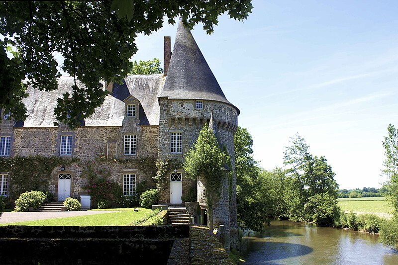 Le corps principal date du XVIIe siècle, mais Adelstan de Beauchêne a noté que l’aspect moderne masque des restaurations des XVIIe et XVIIIe siècles : le gros œuvre remonterait au XVe siècle et les parties basses pourraient être plus anciennes, peut‑être du XIVe siècle. La position du château devait sa force aux eaux de la Mayenne qui pouvaient inonder les abords ; au début du XVIIe siècle il conservait douves, pont‑levis et tours percées de canonnières et de meurtrières. Les caves voûtées en berceau, qui s’étendent sous le corps principal, sont jugées remarquables par l’abbé Angot ; elles communiquent avec un caveau sous la grosse tour qui plonge dans la rivière, accessible seulement par une échelle et faiblement éclairé par de petites meurtrières.