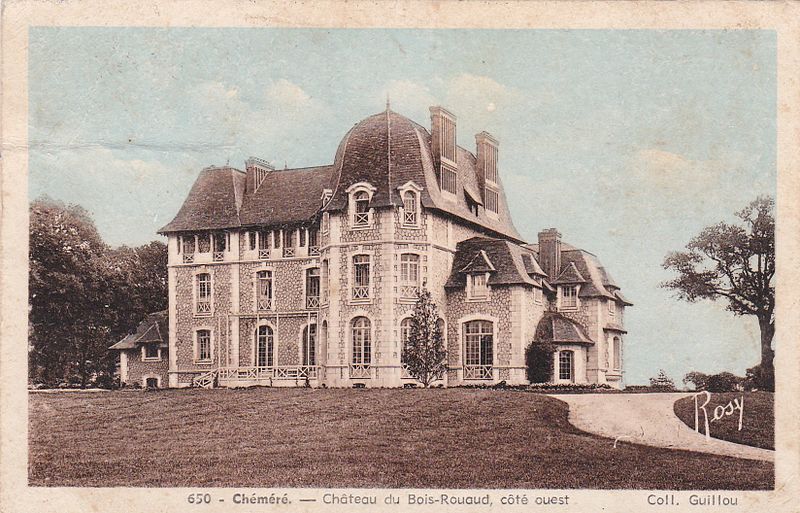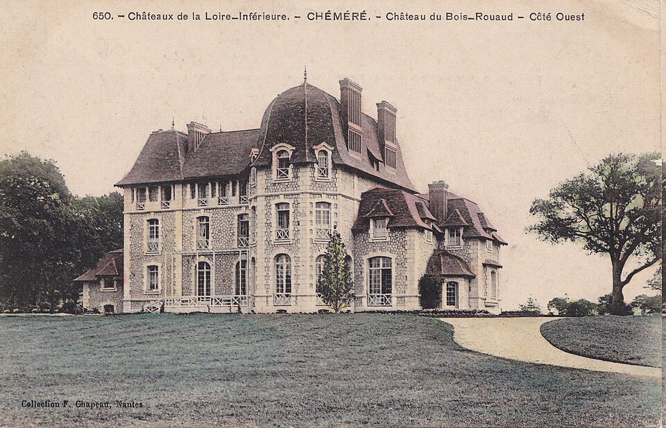 Le château du Bois-Rouaud se situe à Chaumes-en-Retz, commune déléguée de Chéméré, dans le département de la Loire-Atlantique. Un château occupe ce site depuis des siècles ; l'origine remonterait au XVe siècle et des soubassements d'une forteresse féodale ont été retrouvés dans un mur des communs. Le nom « Bois-Rouaud » pourrait provenir d'un seigneur Rouaud du Pellerin, descendant de Vikings, qui donna aux moines de l'abbaye Saint-Sauveur de Redon une partie de l'île de Noirmoutier en 1064. Le site, aménagé sur une plate-forme fossoyée, fut remanié en 1865 avec la création d'un haras et la reconstitution du domaine ; en 1867 le comte Gustave de Juigné y institua le haras du Bois-Rouaud, fit construire des bâtiments annexes (laiterie, buanderie, boulangerie, hangar, séchoir et habitation pour le chef des écuries) et améliora les pratiques agricoles en introduisant engrais et sélection des races bovines, ce qui valut au domaine une reconnaissance agronomique et la médaille d'or du comice. Les jardins ont été conçus par l'architecte paysagiste Édouard André en 1865, puis retravaillés par son fils René Édouard André vers 1913. Le château actuel a été reconstruit en 1905 par l'architecte Alfred Coulomb pour le marquis Jacques Auguste Marie Le Clerc de Juigné, gendre de l'industriel Henri Schneider, et un parc et un jardin à l'anglaise furent aménagés au détriment de terres agricoles. L'édifice se distingue par une toiture souvent décrite comme évoquant un « casque ancien de soldat ». Les murs du grand salon sont ornés de lambris du XVIIIe siècle attribués au père du sculpteur David d'Angers, et la salle à manger a reçu des lambris provenant du Jockey-club de Paris, démonté vers 1912. Le château, qui avait été ruiné pendant les guerres de Vendée, a ensuite été relevé. En 1886, le comte Gustave de Juigné contribua également à la création d'une société de courses avec le prince d'Arenberg. En 1944, le domaine servit d'hébergement aux Assurances sociales et aux Allocations familiales agricoles dont les locaux nantais avaient été sinistrés par les bombardements de 1943 ; ces services quittèrent le château en décembre 1944 pour un petit château à Nantes. En 1977, les terres du Bois-Rouaud étaient exploitées par dix-neuf fermiers louant chacune une vingtaine d'hectares au comte Armand de Durfort. Le monument a été inscrit au titre des monuments historiques en 2001. Le domaine demeure un haras et un lieu d'élevage de chevaux de race ; il est conservé et occupé par Marie Armand-Laroche, fille du comte Armand de Durfort, actuelle propriétaire.