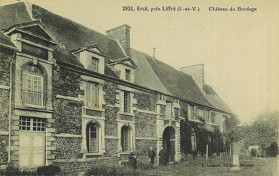 Le château du Bordage se dresse à Ercé‑près‑Liffré, en Ille‑et‑Vilaine. Il est attribué aux XIIIe‑XIVe siècles et occupe l’emplacement d’un ancien château à motte au bord de l’Illet. L’ensemble — le château avec le logis, la tour de l’Orient et la tour aux Chiens, deux rabines du nord et l’assiette de diverses parcelles — a été inscrit aux monuments historiques par arrêté du 11 septembre 2012 ; la protection a été étendue au porche d’entrée et aux communs par arrêté du 10 juin 2020. Jusqu’à la Révolution, la seigneurie appartient à la famille de Montbourcher, puis elle passe à la famille Guyot qui la conserve jusqu’en 1957 ; le folkloriste Paul Sébillot (1843‑1918) y a résidé. En 1793 le domaine, confisqué à la Révolution, est vendu à Julien Guyot, premier maire d’Ercé, et le château reste aujourd’hui une propriété privée.