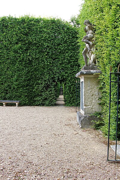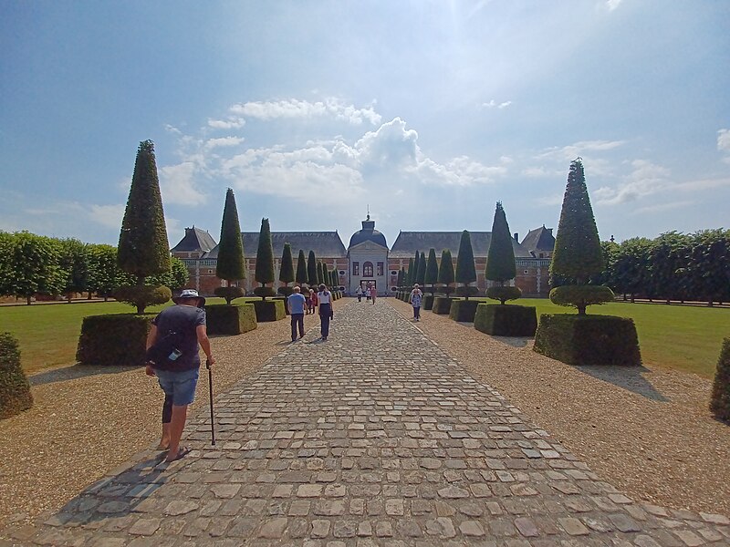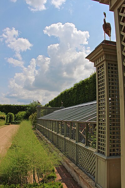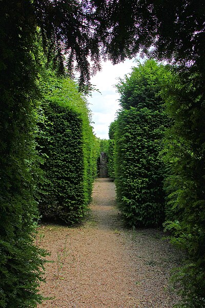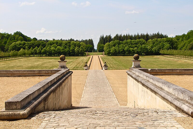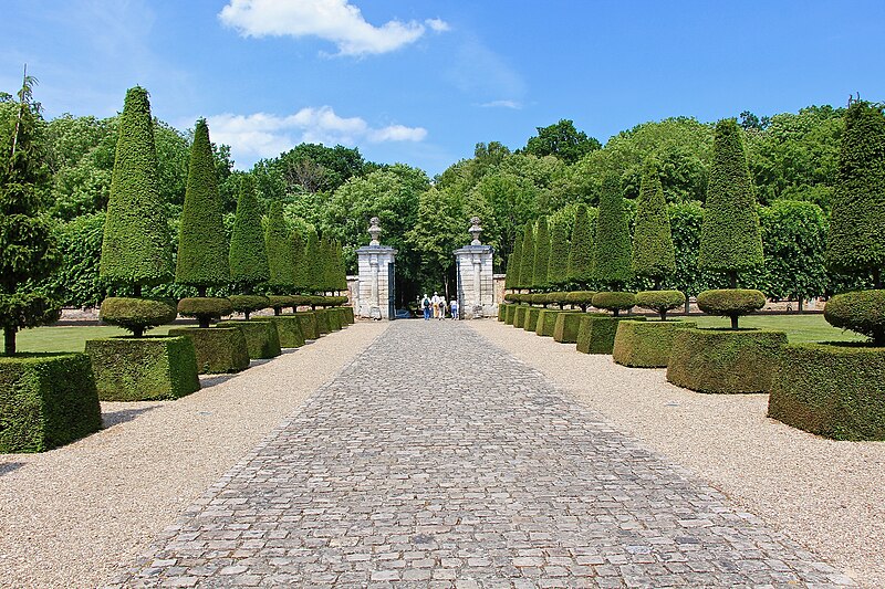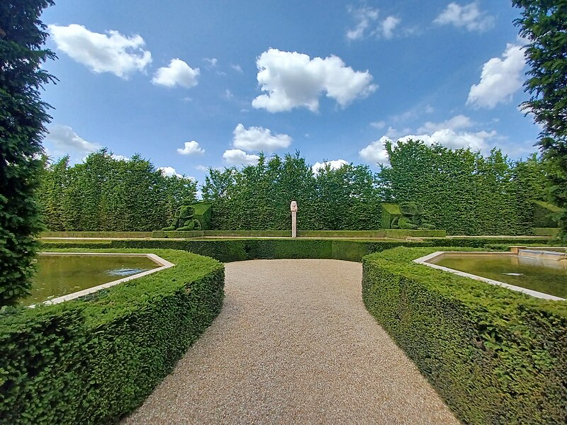 Sur un domaine de quelque 180 hectares, les jardins occupent 45 hectares et déploient parterres à la française, broderies de buis, bosquets, terrasses, fabriques, sculptures et bassins ; on y compte des milliers d'ifs, de tilleuls et de charmilles, 60 000 buis, 20 fontaines et bassins, ainsi que de grandes serres. L'ensemble s'articule selon une symbolique des "sept degrés", qui conduit du minéral au spirituel : le degré minéral englobe la grande terrasse et les bassins proches du château ; le degré végétal regroupe les dentelles de buis et les bosquets opposant une évocation d'Érèbe et d'Éden ; le degré animal rassemble fontaines, kiosques et fabriques évoquant les règnes animaux ; le degré de l'humanité comprend la Voie et ses paliers d'eau bordés par le théâtre de verdure et l'ermitage ; le degré de la conscience est marqué par les Marches et la grande cascade ; le degré de la lumière correspond au grand canal dit le Reflet ; enfin le degré de l'esprit aboutit à la Sphère coiffant une colonne ancienne.