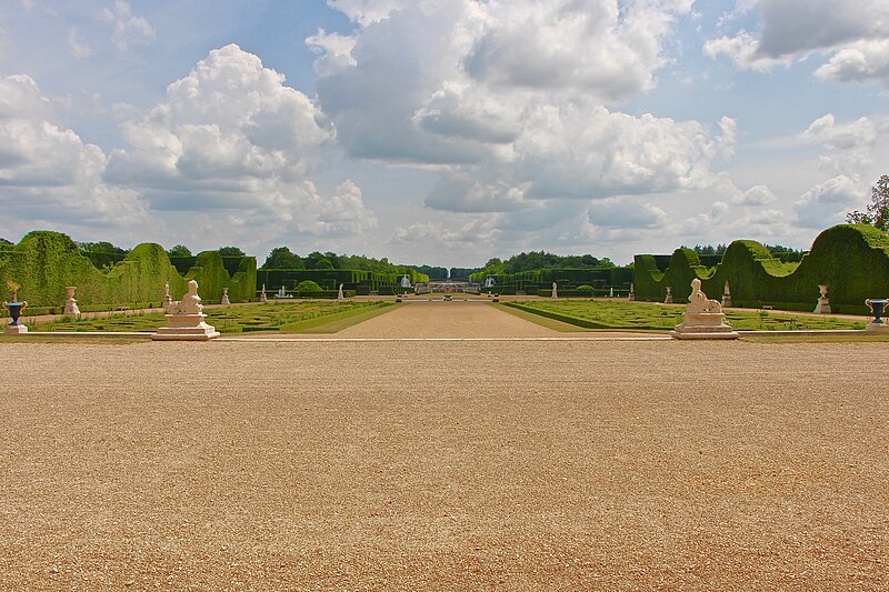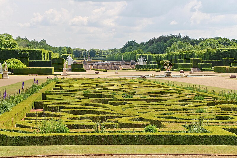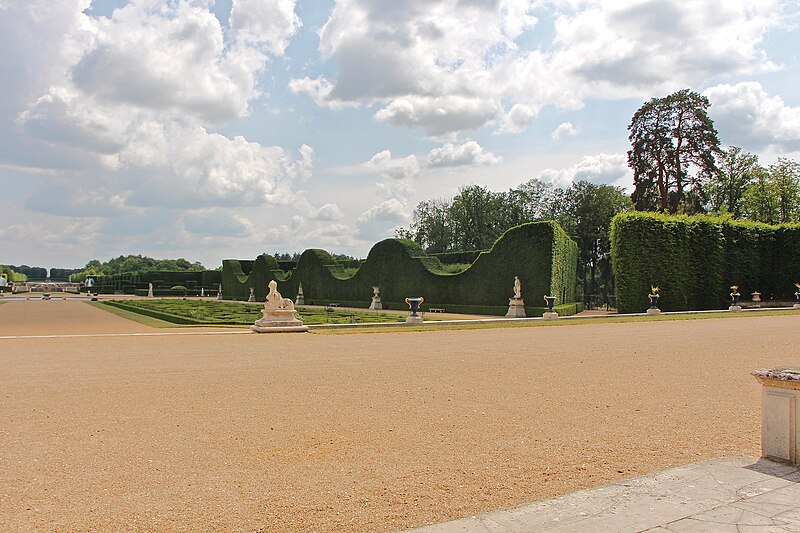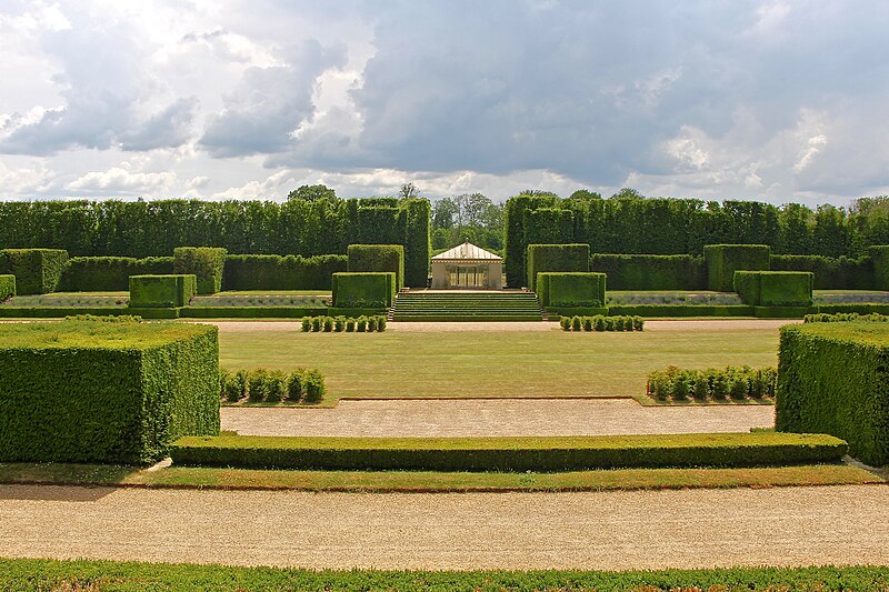 Parmi les fabriques et aménagements figurent un temple du Trésor de Léda, des éléments antiques et restaurés, le jardin du Belvédère avec colonnes et escalier circulaire, les Carrés de Diane et d'Apollon reconstitués selon des documents du XVIIe siècle, ainsi qu'un jardin anglo-indien ouvert au public depuis le 3 juin 2023 qui accueille la grotte de Cybèle et un palais moghol reconstitué. Le domaine propose ainsi une lecture mêlée d'histoire, de restauration et d'interprétation contemporaine.