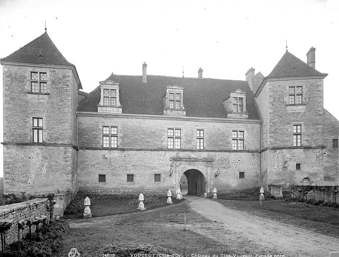 Le château du Clos-Vougeot, situé à Vougeot au cœur du vignoble bourguignon sur la route des Grands Crus reliant Dijon et Beaune, s'est construit entre le XIIe et le XVIIIe siècle. Les moines de l'abbaye de Cîteaux ont constitué et façonné le clos de cinquante hectares, entouré de murs, sur une période d'environ huit cents ans. Les bâtiments médiévaux destinés à l'exploitation viticole subsistent : une cuverie en forme de cloître équipée de quatre pressoirs à cabestan en chêne capables de presser chacun quatre tonnes de raisins, un grand cellier semi-enterré soutenu par huit piliers et des fenêtres en lancette, ainsi qu'un vaste grenier qui servait de dortoir aux frères convers. Au‑dessus de ces installations se trouve un manoir de style Renaissance, reconnaissable à ses fenêtres à meneaux, ajouté en 1551 par l'abbé Dom Jean Loisier pour en faire sa résidence, ce qui a donné au site sa physionomie actuelle. L'abbaye de Cîteaux resta propriétaire jusqu'à la Révolution, lorsque ses biens, dont le clos de Vougeot, furent déclarés biens nationaux. Au XIXe siècle le domaine passa dans la famille Ouvrard puis connut une période d'abandon avant d'être racheté en 1889 par Léonce Bocquet, qui le restaura en respectant le style Renaissance et fut inhumé dans l'enceinte du château à son décès. En 1920, Étienne Camuzet acquit le château et en vendit les vignes à quinze propriétaires‑viticulteurs ; faute d'entretien, il transmit ensuite la propriété en 1944 à la société civile des Amis du Château du Clos de Vougeot, qui accorda un bail de 99 ans à la Confrérie des Chevaliers du Tastevin. Classé monument historique depuis 1948 (arrêté confirmé en 1949), le château a été restauré par la confrérie au cours de la seconde moitié du XXe siècle. Aujourd'hui il demeure entouré d'environ cinquante hectares de vignes partagées entre plus de quatre‑vingts propriétaires et sert de lieu de promotion des vins et de la gastronomie bourguignonnes. En 2015, au moment de l'inscription des Climats de Bourgogne au patrimoine mondial de l'UNESCO, le château est devenu leur siège. Depuis 2008, il accueille chaque été le festival Musique et Vin et chaque septembre le salon Livres en Vignes ; depuis 2019 s'y tiennent début octobre les Journées mondiales de l’œuf en meurette et le championnat du monde associé. Plusieurs variétés de roses lui ont été dédiées au fil du temps, dont une en 1908 nommée « Château de Clos‑Vougeot », une création de Georges Delbard en 1984 et une nouvelle proposition par Arnaud Delbard en 2019. Le Clos‑Vougeot reste un lieu emblématique du vignoble et de l'art de vivre bourguignon.