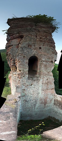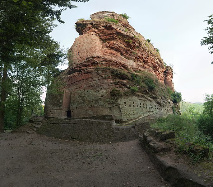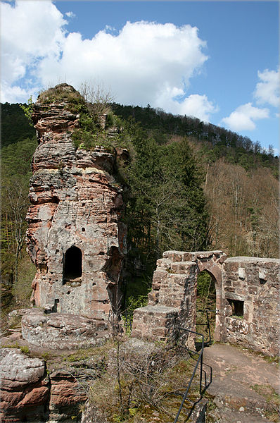 Le château du Froensbourg, dit aussi Frundsberg, est une ruine classée au titre des monuments historiques depuis décembre 1898, située à Lembach (Bas-Rhin). Il est mentionné dès le XIIIe siècle, avec une référence indirecte en 1235 (d'après A. Thon) et une attestation en 1269 par la mention des frères de Frundsperg. Il aurait appartenu exclusivement aux Froensbourg jusque dans les années 1340 ; ces seigneurs portaient les mêmes armoiries que les Fleckenstein, dont ils étaient probablement issus. Un peu avant le milieu du XIVe siècle, la seigneurie fut partagée entre les Froensbourg, les Loewenstein et les Sickingen. Le château fut assiégé et ruiné en 1349 en raison des brigandages de Reinhard de Sickingen, mais il semble avoir été restauré, puisqu'en 1358 il fut proposé en fief-oblat au comte palatin. La tour d'habitation sur le rocher sud, dite petit château, appartenait vers la fin du XVe siècle aux Fleckenstein, qui la firent restaurer ou reconstruire ; sa porte d'entrée est datée de 1481. Le grand château occupait tout le rocher nord ; au niveau supérieur se trouvaient un donjon à l'extrémité nord et des logis en enfilade vers le sud. Aux niveaux intermédiaire et inférieur se situaient des communs et dépendances en pan de bois, dont subsistent des traces d'ancrages et des trous de boulin dans le rocher, complétés par des aménagements troglodytiques. Les basses-cours étaient en contrebas à l'ouest et dans le fossé nord, et plusieurs escaliers taillés dans le rocher témoignent des partages successifs du château. Une roue facilitait l'acheminement des provisions et des matériaux vers les superstructures. Le château aurait été détruit par les Français en 1677, mais il était probablement déjà abandonné à cette époque. On observe encore des salles taillées dans le grès, une porte gothique, une citerne et un escalier rocheux à plusieurs volées. L'édifice est semi-troglodytique, édifié sur deux rochers formant deux entités autonomes. Le site se situe entre Niedersteinbach et l'étang du Fleckenstein, sur la D3 à la hauteur de la ferme de Froensbourg ; il est desservi par le sentier du Club Vosgien (rectangle bleu) et par le GR53, mais il n'est actuellement plus accessible en raison de la dégradation de l'escalier menant au site.