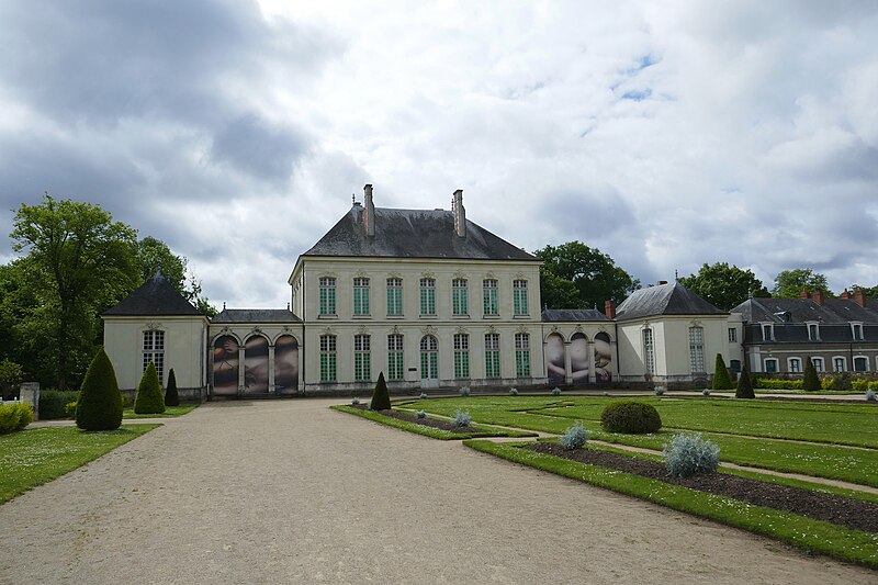 Architecturalement, le château se compose d'un corps de logis principal élevé sur deux niveaux et couvert d'une haute toiture en ardoise à quatre pentes, encadré symétriquement par des galeries à claire‑voie de trois arcades menant à des pavillons en retour d'équerre : la chapelle occupe le pavillon est, tandis que le pavillon ouest abrite cuisines et chambres de domestiques. L'élévation est construite en pierre de Chauvigny et tuffeau, reposant sur un soubassement en granit. Les façades nord et sud se répondent : au rez‑de‑chaussée une porte à deux vantaux donne accès par un perron (trois marches au nord, un perron demi‑polygonal de sept marches avec rampe au sud) et est encadrée de trois fenêtres de chaque côté, surmontées de mascarons figurant des personnages ; au premier étage sept fenêtres plus petites sont coiffées de mascarons en forme de coquilles et de fleurs de lotus. Les façades latérales présentent de légères différences : à l'ouest l'une des quatre fenêtres du rez‑de‑chaussée et trois des cinq fenêtres de l'étage sont aveugles, tandis qu'à l'est une seule des cinq fenêtres de l'étage est aveugle.