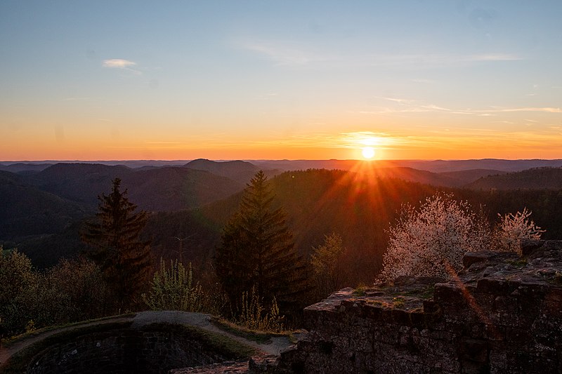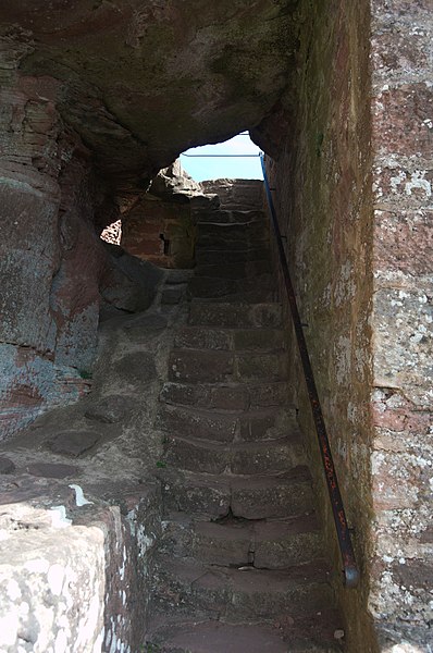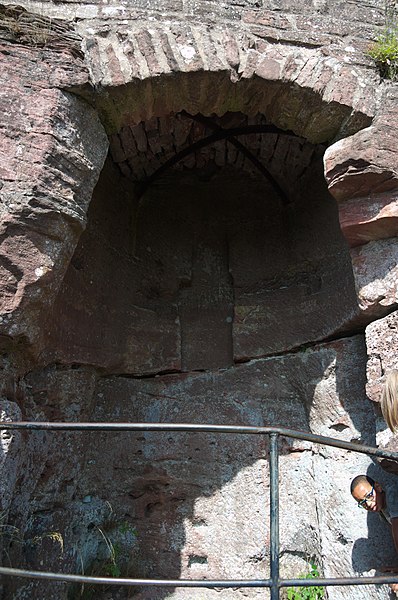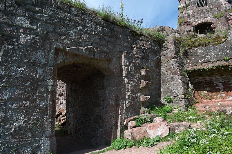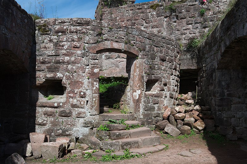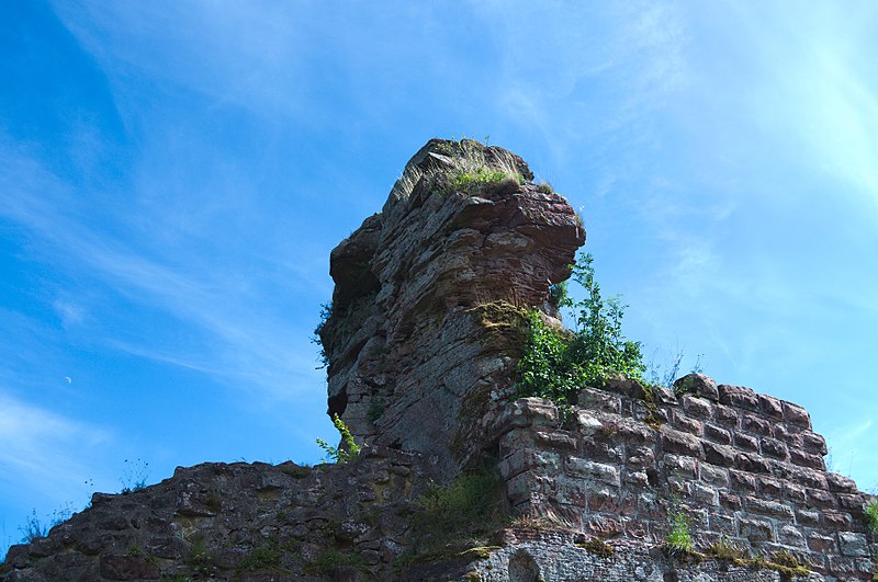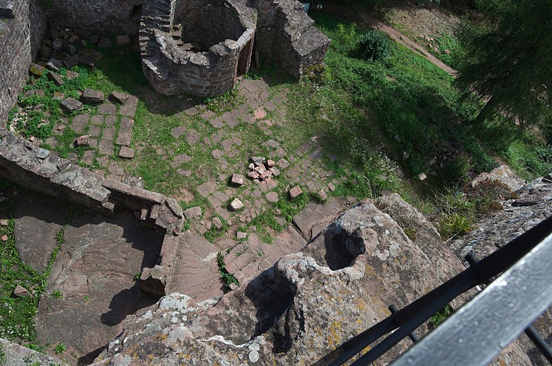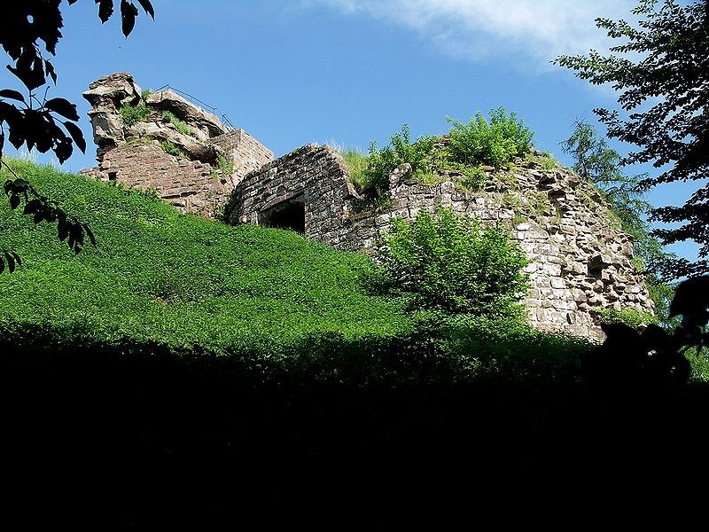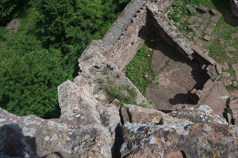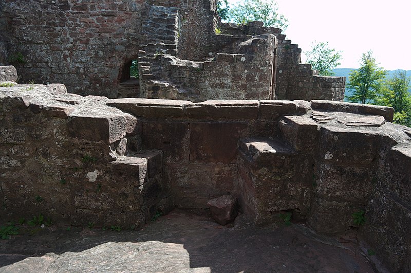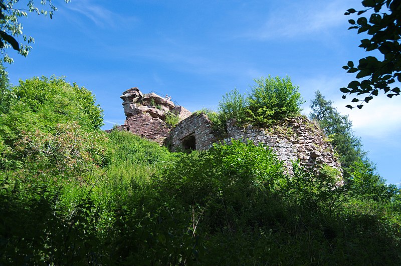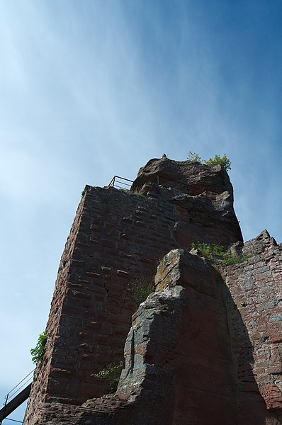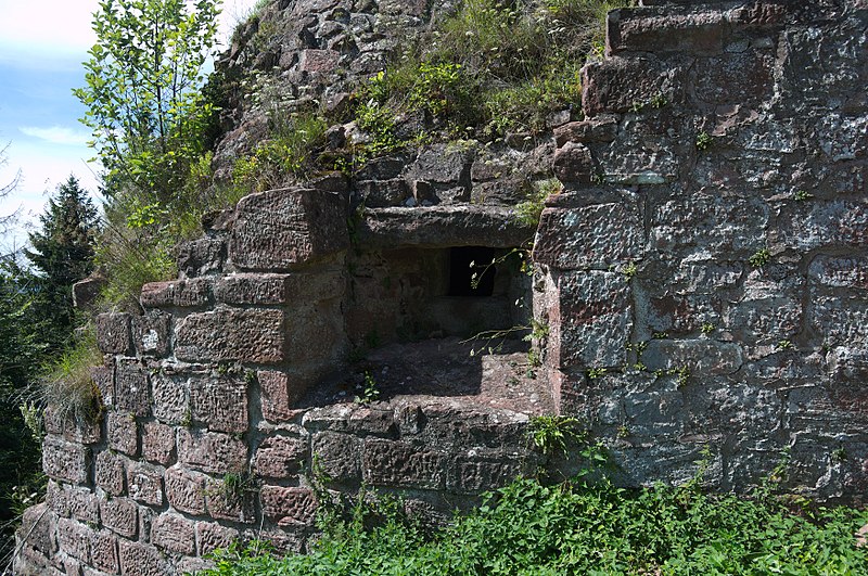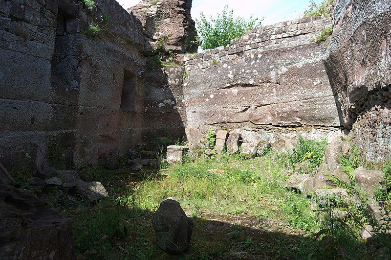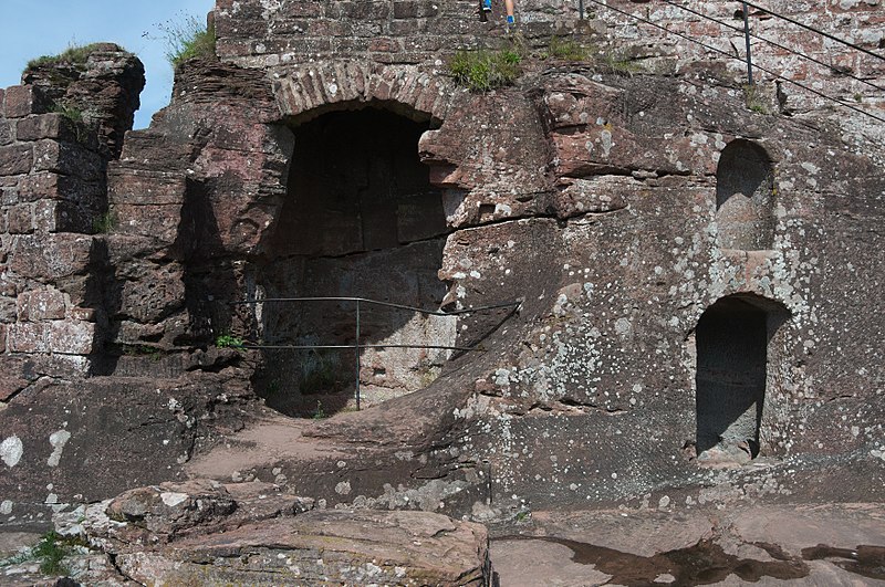 Le château de Hohenbourg se situe dans le Bas‑Rhin, sur la commune de Wingen (au nord de Lembach), à ne pas confondre avec Wingen‑sur‑Moder. Il est classé au titre des monuments historiques depuis décembre 1898. Ses origines restent incertaines : le château primitif daterait probablement de la fin du XIIe siècle, tandis que l’édifice semi‑troglodytique fut développé au milieu du XIIIe siècle. Les premiers occupants connus sont les Puller, issus des Fleckenstein, apparus en 1236 et se disant Puller de Hohenbourg à partir de 1262 ; certaines seigneuries étaient partagées avec la famille de Fleckenstein, entraînant des rivalités. Parmi les vestiges anciens subsistent des tronçons du mur d’enceinte, la partie inférieure excavée du logis nord (actuel dépôt lapidaire), une pièce creusée dans le rocher pourvue d’une porte en plein cintre, et le puits. Le château fut modernisé entre 1420 et 1440 par Wirich II le vieux. Après la mort du dernier Puller de Hohenbourg en 1482, il passa par héritage aux Sickingen. Au début du XVIe siècle, François de Sickingen le modernisa et fit construire des barbacanes ; le château fut partiellement détruit en 1523 puis relevé en 1542 par François Conrad de Sickingen, et la porte de la tourelle porte la date de 1578. Abandonné pendant la guerre de Trente Ans, il fut détruit par Montclar en 1680. Lors de travaux en 1879‑1880, de nombreux éléments sculptés gothiques et Renaissance portant millésimes et armes des Sickingen furent mis au jour et exposés ; ils ont en grande partie été volés mais sont partiellement visibles sur des photographies anciennes. Sur le plan architectural, le bastion d’artillerie en fer à cheval, percé de deux grandes portes et de deux bouches à feu, présente des murs épais de 3,60 à 4,60 mètres et illustre l’art militaire de la fin du XVe et du début du XVIe siècle. De la même période subsiste une porte de style Renaissance. Depuis la terrasse, le panorama s’étend sur les Vosges du Nord et le Palatinat. Pour accéder au site depuis Lembach, emprunter la route de Bitche puis la route de la frontière et la route forestière jusqu’au Gimbelhof, puis suivre le sentier du Club vosgien balisé de pastilles blanches cerclées de rouge.