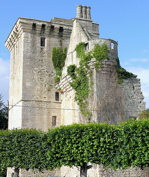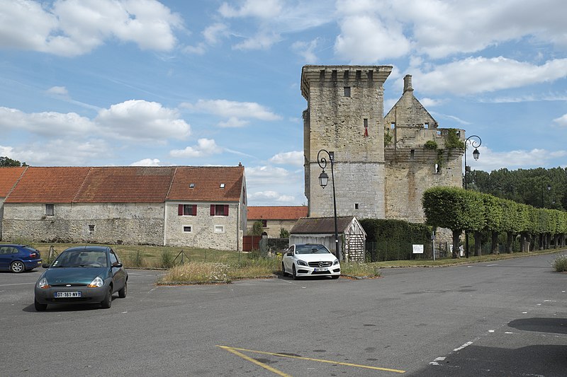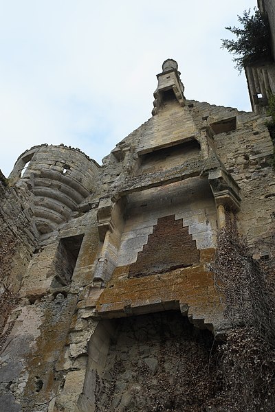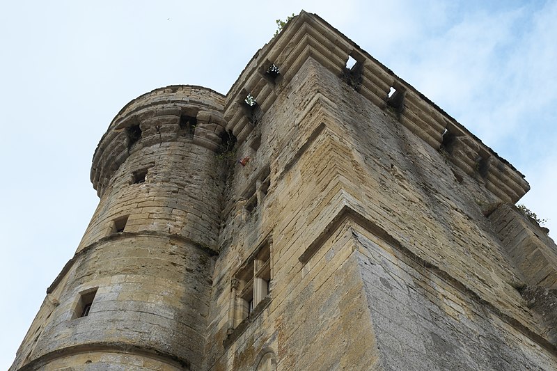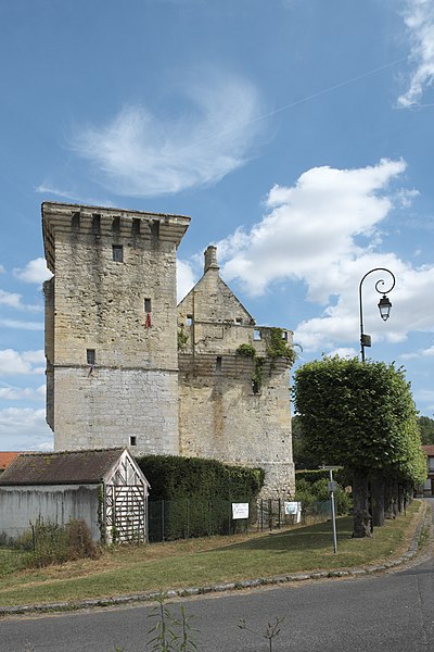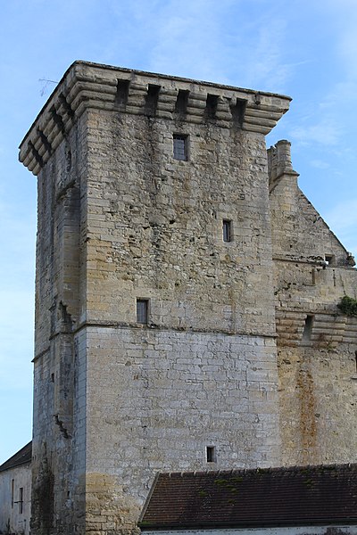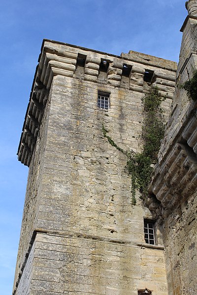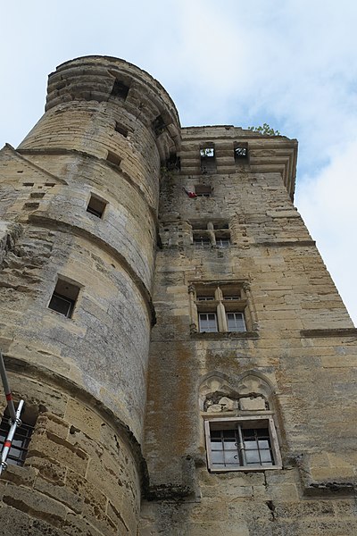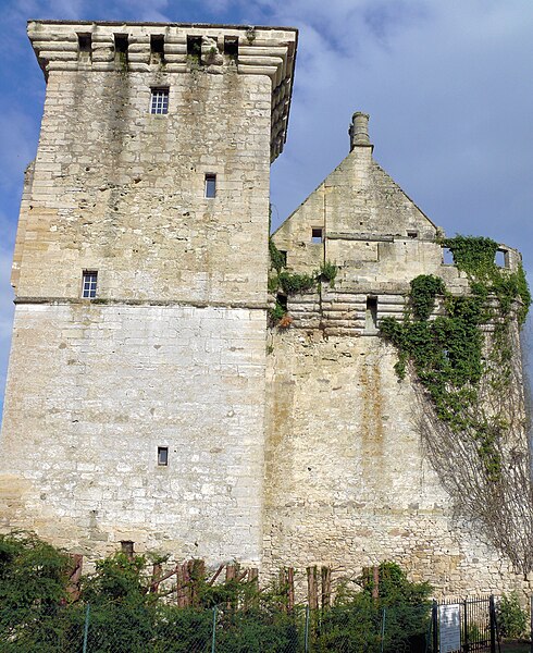 Aile garnie de machicoulis s'étendant sur l'avenue de la Gare : inscription par arrêté du 3 juin 1932 ; Donjon ; grand mur pignon de l'ancien logis, y compris les cheminées qui y sont adossées : classement par arrêté du 12 octobre 1962