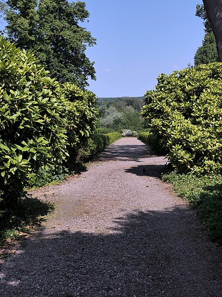 Corps de logis, y compris l'escalier intérieur avec sa rampe, les cheminées, les lambris et les planchers XIXe siècle ; bâtiments des communs et dépendances qui prolongent les deux extrémités du corps de logis ; remise sur la cour des communs ; murs de la cour des communs et de la cour d'honneur avec leurs portes et le portail avec sa grille en fer forgé ; mur du jardin anglais bordant la rue, ses portes et le portail avec sa grille en fer forgé ; portail de l'angle Sud-Ouest du parc avec sa grille (cad. AB 57, 63, 82) : inscription par arrêté du 18 mai 1990