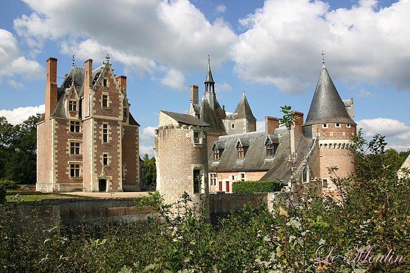 Le château du Moulin, situé à Lassay‑sur‑Croisne (Loir‑et‑Cher), est inscrit aux monuments historiques depuis le 6 janvier 1926 et classé depuis le 27 avril 1927. Élevé à la fin du XVe siècle (1480–1501) pour Philippe du Moulin par Jacques de Persigny, il est bâti en briques losangées rouges et noires avec des arêtes en pierre et entouré de douves. Le manoir, de plan rectangulaire, se compose de deux corps de bâtiment : le logis qui réunit l'habitation et une chapelle, et un second corps qui abrite l'entrée ainsi qu'une cuisine voûtée sur un pilier central. L'accès se fait par un portail accosté d'une poterne, flanqué de deux tours et précédé d'un pont‑levis ; au‑dessus du portail se trouvent deux chambres, dont l'une conserve des peintures murales, et un campanile moderne les domine. Ce corps de bâtiment se termine, dans l'angle, par une tour ; de l'enceinte originelle ne subsiste qu'une des quatre tours d'angle. Dans le jardin on remarque un vieux puits en fer forgé, une tour en ruine et les restes d'une seconde chapelle. L'apparence de forteresse médiévale du château visait davantage à affirmer le rang de son propriétaire qu'à assurer une défense effective. Le bâtiment a fait l'objet d'une importante restauration en 1947 conduite par l'architecte Pierre Chauvallon. Philippe du Moulin, pour lequel la demeure fut édifiée, fut un ami d'enfance du roi Charles VIII et fut anobli après lui avoir sauvé la vie lors de la bataille de Fornoue en 1495. Aujourd'hui subsistent le châtelet encadrant l'entrée, le donjon, la courtine et une tour rehaussée sous Louis XIII ; le site est entretenu et demeure habité, certaines pièces étant encore meublées. Le jardin potager, redessiné au XXe siècle en parcelles de taille décroissante pour créer une illusion de profondeur, accueille le Conservatoire de la Fraise. Le château a souvent servi de lieu de tournage : Jean Epstein y a filmé des scènes pour Mauprat dès 1926, il a été utilisé pour la série Thierry la Fronde dans les années 1960 et pour Le Roi, l'Écureuil et la Couleuvre en mars 2011. En 1962, une adaptation télévisée du Fantôme des Canterville, réalisée pour l'émission Le Théâtre de la Jeunesse par Marcel Cravenne et présentée par Claude Santelli, y a été tournée avec notamment Christiane Desbois, Maria Pacôme, Jacques Fabbri et Claude Rich. Une photographie de Séraphin‑Médéric Mieusement datant d'avant 1870 illustre l'édifice dans la bibliographie relative au château. Depuis janvier 2020, le château du Moulin est définitivement fermé à la visite et mis en vente par ses propriétaires.