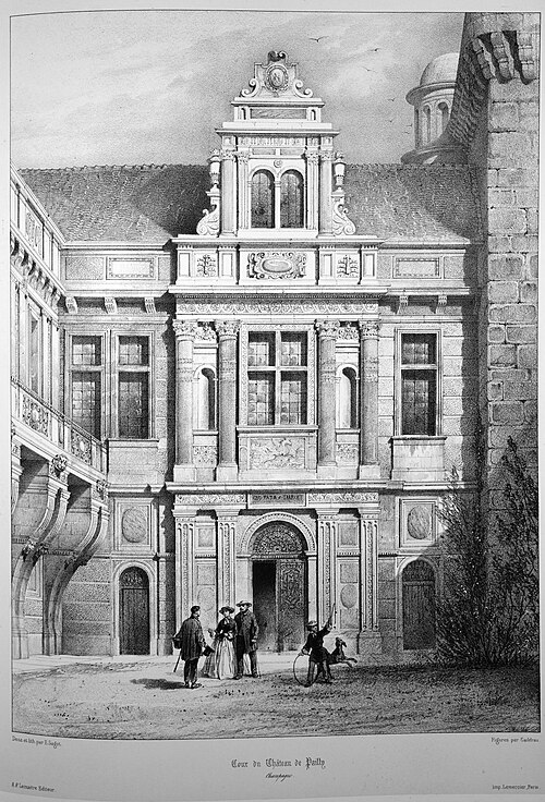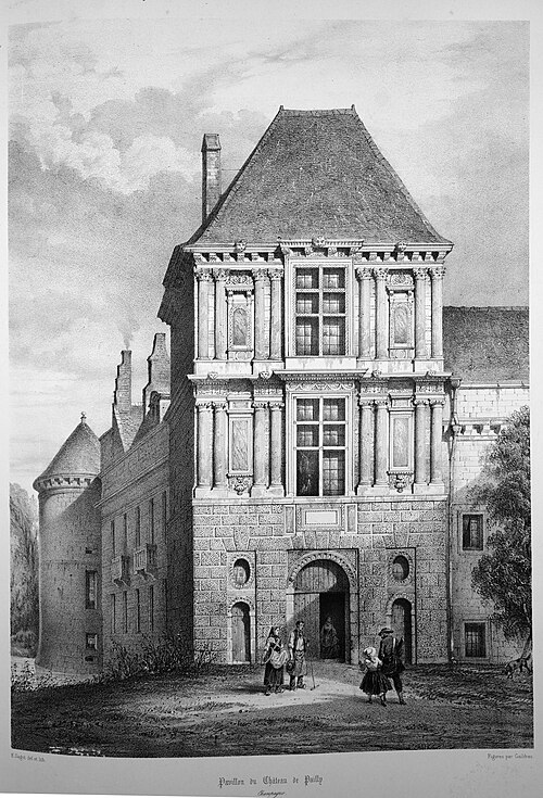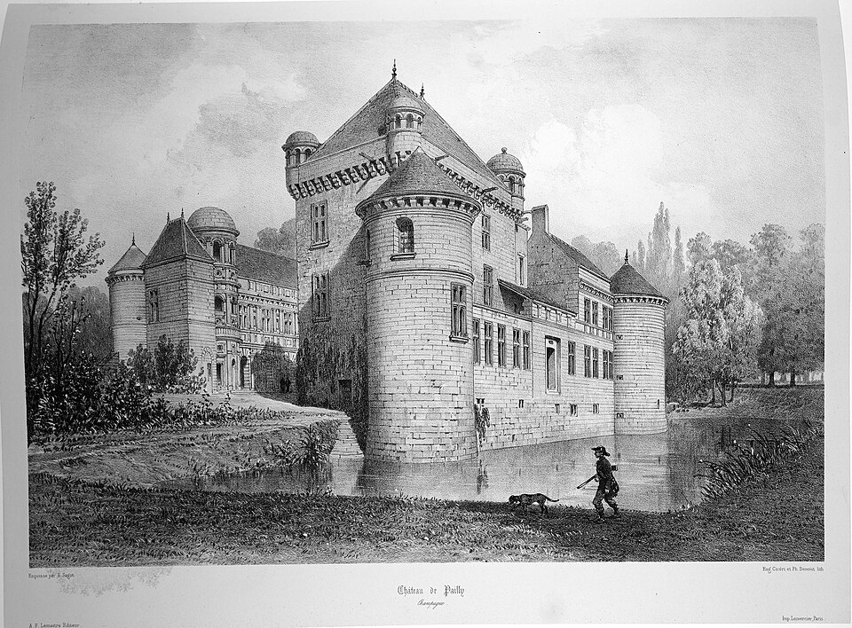 Le château du Pailly, situé sur la commune du Pailly à 13 km de Langres (Haute-Marne), est considéré comme l’un des plus prestigieux exemples d’architecture Renaissance en Champagne-Ardenne et est classé monument historique. Édifié entre 1563 et 1573 pour Gaspard de Saulx-Tavannes, maréchal de France et compagnon d’armes de François Ier, il fut réalisé avec la collaboration de l’architecte langrois Nicolas Ribonnier. Le site reprend l’emprise d’un ancien château de plaine attesté dès le XIIIe siècle et réorganisé comme place forte à la fin du XVe siècle par Jean de Dommarien ; de cette phase médiévale subsiste principalement un massif donjon de plan barlong. Le bâtiment Renaissance s’articule autour d’un quadrilatère irrégulier flanqué à ses angles de tours rondes et bordé de douves en eau, formant une cour d’honneur entourée de corps de logis. Les élévations et le grand escalier témoignent de la maîtrise des ordres classiques : la superposition architecturale associe des colonnes ioniques au niveau du premier étage et un décor faisant également appel au corinthien, la façade occidentale étant rythmée par des pilastres ioniques. L’architecture du Pailly se rapproche de celle du château de Sully, que le maréchal de Saulx-Tavannes contribua à rebâtir.