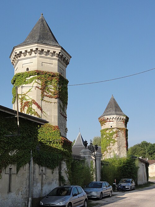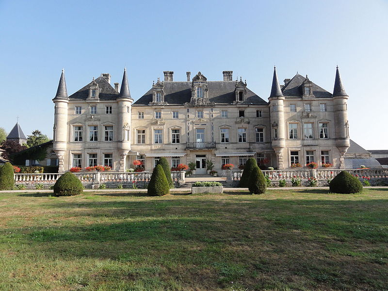 Le domaine du Petit Monthairon comprend un château élevé entre 1857 et 1859, des dépendances et un parc d’environ 14 hectares planté d’essences variées. Le château a été construit par Charles-Henri de la Cour sur l’emplacement de la résidence seigneuriale antérieure que la famille possédait depuis 1685, par dotation lors du mariage de Marie Nicolas avec Henry de la Cour. La famille de la Cour, originaire de Bourgogne, conta une branche établie en Lorraine dès 1477. Elle donna notamment le général Nicolas de la Cour et le religieux réformateur Dom Didier de la Cour. Dom Didier, né en 1550 à Montzéville, entra à 17 ans à l’abbaye de Sainte‑Vanne à Verdun, fit des études à l’université de Pont‑à‑Mousson, exerça comme prieur claustral et appliqua strictement la règle bénédictine à partir de 1600 ; il mourut à 73 ans, fut béatifié, et son corps fut transféré en 1811 dans la chapelle familiale attenante au château. À l’origine, le domaine s’étendait sur 225 hectares de terres et prés avec deux fermes ; la famille possédait en outre 195 hectares de forêt et 17 hectares de parc longeant la rive gauche de la Meuse, les trois autres côtés étant clos par des murs d’environ deux mètres. En 1902, le château et le parc furent vendus au baron de Chadenet, puis les 195 hectares de forêt furent cédés quelques années plus tard aux frères Nathan, d’où le nom des Bois Nathan. Le château fut réquisitionné le 25 juin 1915 pour y installer un hôpital d’évacuation affecté exclusivement aux troupes américaines ; il accueillit notamment l’ambulance 3/67, la section d’hospitalisation 3/6 et l’ambulance chirurgicale n°13, et fonctionna pendant toute la Première Guerre mondiale. Le compositeur Maurice Ravel y fut affecté une huitaine de jours à la mi‑avril 1916. Durant la Seconde Guerre mondiale, le château fut occupé par les troupes allemandes. La famille Thouvenin acheta le domaine en 1985 et, depuis 1989, y a développé une hostellerie de charme et de caractère. Le 15 avril 2016, une commémoration organisée par l’association Meuse 14‑18 et l’association des Amis de Maurice Ravel a réuni concert, exposition et apposition d’une plaque pour le centenaire du passage de Ravel comme soldat à Verdun. La nuit du 5 au 6 novembre 2018, le président de la République séjourna au château à l’occasion des commémorations du centenaire de l’armistice de 1918. Le décor du château et des dépendances, datés de 1857, est néo‑classique de type Restauration et l’édifice réutilise les fondations de l’ancienne demeure. Une grille monumentale et une porte finement ouvragée, surmontée d’une couronne comtale, marquent l’entrée ; l’ensemble constitue une copie intéressante du château d’Azay‑le‑Rideau due à l’architecte Demoget. Dans le parc se trouvent une chapelle du XVIe siècle, transformée en ermitage à la fin du XVIIIe ou au début du XIXe siècle, ainsi que plusieurs fabriques de jardin du XIXe siècle. Des documents désignent cette chapelle comme « Chapelle de la Tour » et la situent près d’une construction appelée « Tour de Monthairons », parfois présentée comme tour féodale ou petite forteresse, attribuée au comte de Fontenoy ; elle était encore habitée par un fermier en 1774 avant de disparaître des archives à la Révolution. Sur le plan cadastral de 1835, le lieu‑dit à l’ouest de la route est indiqué « Devant La Tour ». Les façades et les toitures du château, y compris la terrasse et la balustrade donnant sur le parc, ainsi que la grille flanquée des deux tours‑pigeonniers de la cour, ont été inscrites aux monuments historiques par arrêté du 20 septembre 1996 ; le parc, l’ermitage, la chapelle et les fabriques de jardin du XIXe siècle font également partie de cette inscription. Un large méandre de la Meuse borde la propriété à l’est ; la présence d’une « Morte Meuse » et d’une prairie dite « Vieille rivière » évoque un tracé ancien du fleuve, sans qu’un document n’atteste formellement une déviation volontaire. Un récit de l’abbaye de Saint‑Vanne rapporte que de grands travaux furent entrepris au XIe siècle sous l’évêque Thierry pour régulariser le cours de la Meuse entre Troyon et Dieue, par la construction de barrages et de moulins, entraînant la fermeture de la branche passant par Ambly. Au centre du parc, une large allée donnait une vue sur l’église de Monthairons, permettant d’apercevoir l’horloge du clocher à l’aide d’une lunette. Enfin, sur les plus hauts arbres subsiste une héronnière encore très peuplée, dont les oiseaux reviennent chaque printemps. La toponymie locale associe parfois le nom du village et du domaine à la légende du « Mont des Hérons », mais l’étymologie peut aussi provenir de « Mont Aride » et d’anciennes formes latines et médiévales attestées entre 1306 et 1700 ; en patois local, le nom était rendu M’haron.