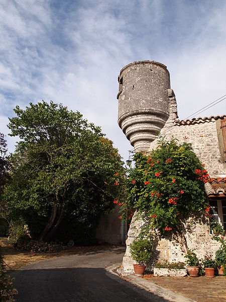 Le château du Pouyaud, situé sur la commune de Dignac en Charente à une vingtaine de kilomètres au sud-est d’Angoulême, occupe un point culminant du secteur. Le fief du Pouyaud, appelé aussi des Poyaux, passa au milieu du XVe siècle par mariage de la famille Fougières à celle de Prévost de Touchimbert ; il relevait du baron de Villebois, Guy de Mareuil, qui en reçut un dénombrement en 1481. La tour fut reconstruite en 1520. Au XVIIe siècle, le corps de logis fut reconstruit et pourvu d’un étage supplémentaire, puis une aile fut ajoutée au XVIIIe siècle. En 1665, le domaine appartenait à Jeanne de Lespinay, veuve de Charles de Galard de Béarn, seigneur de Mirande et du Pouyaud ; elle se remaria avec Joseph de Raymond. Leur fils Louis de Galard de Béarn hérita du domaine, qui resta dans la famille jusqu’à la Révolution. En 1902 le château appartenait à la famille de Juglart de Lardinie, puis à la famille Grassal en 1914 ; après plusieurs ventes, les Buraud l’acquirent dans les années 1960 et l’ont restauré. Le château, ses façades et sa toiture ont été inscrits au titre des monuments historiques le 9 juin 1966. L’ensemble des bâtiments regroupe des constructions du XVe au XVIIIe siècle et s’organise en fer à cheval. L’élément central côté cour est un donjon carré du XVIe siècle, haut de 14 mètres, composé de deux étages voûtés, orné de mâchicoulis et surmonté d’une fine tourelle ; sa base abrite une chapelle dont la voûte repose sur des nervures. Accolés au donjon, un pavillon de plan carré surmonté d’un toit en ardoise à la Mansart et le corps de logis présentent la physionomie des XVIIe et XVIIIe siècles : la façade intérieure est percée de fenêtres à petits-bois et d’une porte aux sculptures moulurées, surmontée d’un fronton curviligne reposant sur deux pilastres cannelés engagés. On relève également, à l’angle nord‑ouest du bâtiment en retour, les vestiges d’une porte du XVe siècle accompagnée d’une échauguette d’angle. Le château est une propriété privée et n’est pas ouvert à la visite.