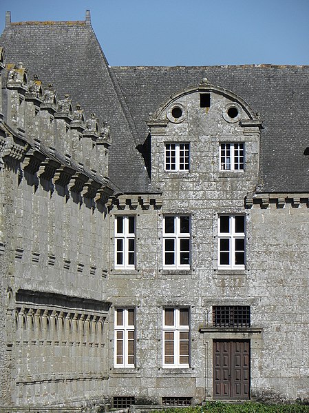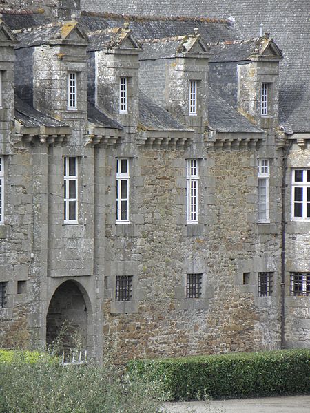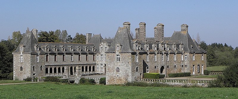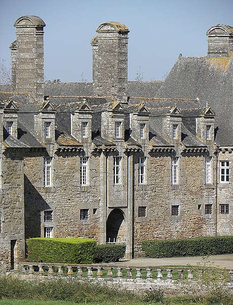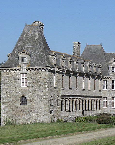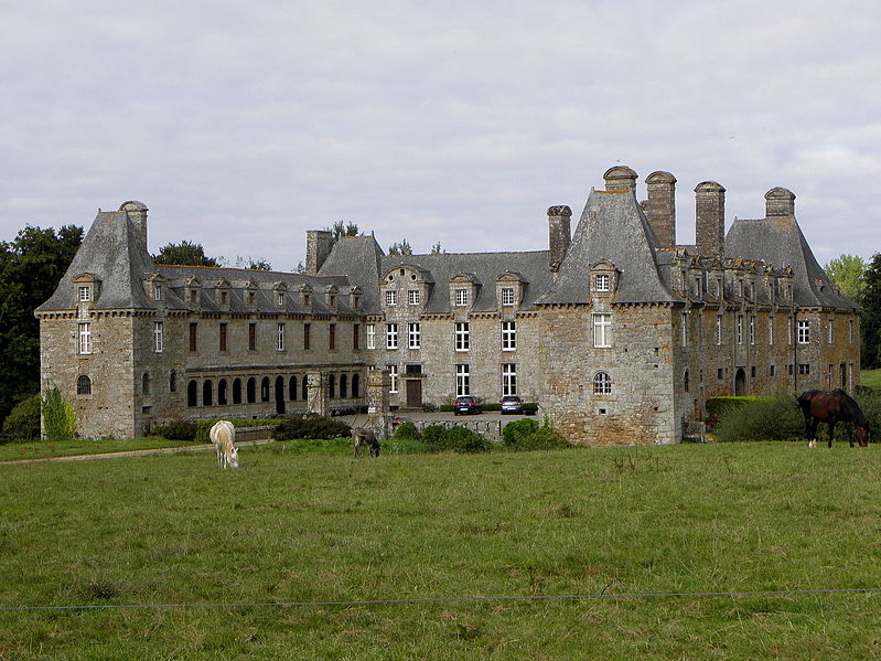 Le château du Rocher-Portail, situé sur la commune de Maen Roch dans le Coglais, au nord-est d'Ille-et-Vilaine, se trouve au bord d'un étang alimenté par le ruisseau des Échelles, au nord du bourg de Saint-Brice-en-Coglès et à proximité de l'ancienne commune de La Selle-en-Coglès. Les sources situent son édification entre la fin du XVIe siècle et le début du XVIIe siècle ; il a été reconstruit sous Louis XIII par Gilles Ruellan, baron de Tiercent, et a alors pris le nom de Rocher-Portail. L'édifice, construit en granite avec des encadrements de baies du même matériau, est coiffé de toits très élevés reposant sur des corniches à modillons. Il se compose d'un corps central flanqué de deux ailes en équerre et dresse quatre pavillons aux angles ; trois côtés de ces bâtiments ferment une cour d'honneur. La façade sud présente une porte en plein-cintre surmontée de deux coulisses pour pont-levis, tandis que l'aile nord, bordée par l'étang, est pourvue d'une galerie à arcades cintrées séparées par des pilastres cannelés. L'une des ailes s'ouvre sur la cour par une galerie de style Renaissance d'inspiration italienne, à l'extrémité de laquelle se trouve une chapelle munie de canonnières ; l'autre est percée d'un portail central. Le château conserve des cheminées hautes, de belles gerbières à frontons arrondis, une chapelle, un colombier, des douves et une motte en bordure de la Loysance ; une balustrade en granit ferme la cour vers l'ouest, précédée par une douve communiquant avec l'étang. Classé au titre des monuments historiques par arrêtés des 27 septembre 1961 et 20 décembre 2018, le Rocher-Portail a appartenu successivement à plusieurs familles, dont les Ruellan puis, jusqu'en 1653, d'autres lignées mentionnées par les sources. Trois familles se sont succédé entre 1617 et 2016, les Boutray ayant été propriétaires de 1866 à 2016 et laissant des témoignages intacts de la vie domestique du XIXe siècle, avec notamment des aménagements et objets liés au service. Manuel Roussel devient propriétaire en 2016 et ouvre le château aux visites en 2017 ; en 2022 y est inaugurée une attraction nommée « nouvelle école des sorciers », et en 2023 le site ferme au public pour se consacrer à l'accueil d'animations temporaires autour de cette école. Les extérieurs, notamment la cour d'honneur, la galerie et le pont-levis, ont servi de décor au film Les Chouans d'Henri Calef (1947).