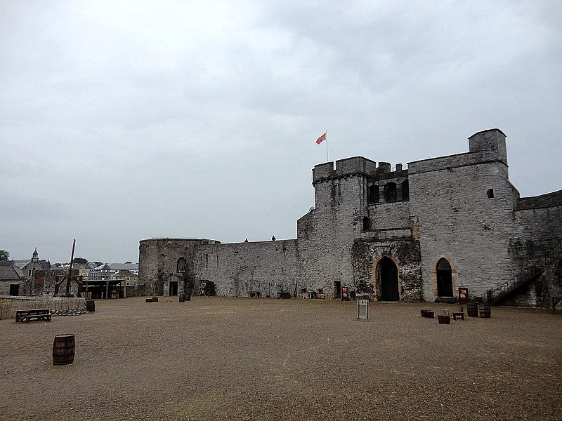 Le château du Roi Jean, aussi appelé Limerick Castle, est un château-fort anglo-normand édifié au début du XIIIe siècle sur King’s Island, une île du fleuve Shannon dans le quartier médiéval de Limerick. Il repose sur les fondations d’une forteresse viking construite en 922 par Thormodr Helgason, et le site changea de mains au cours des affrontements entre Irlandais et Vikings au Xe siècle. Après l’arrivée des Anglo-Normands en 1172 et la prise de la ville en 1195, Jean sans Terre ordonna la construction du château pour contrôler la rivière et le pont, frontière entre royaumes gaéliques et normands. Chaque élément du dispositif défensif a été conçu pour résister aux sièges : grandes tours rondes, courtines épaisses et haute muraille, sans donjon mais dotées d’aménagements adaptés aux techniques de guerre médiévale. L’enceinte, de cinq côtés autour d’une cour rectangulaire, présente des murs évasés à la base pour dévier les projectiles et des tours en saillie permettant des tirs croisés. À l’origine, des douves entouraient la fortification et un pont-levis reliait la porte d’entrée à une barbacane ; la tour nord-est abritait la monnaie. La cour accueillait une grande salle, des cuisines, des tentes militaires et des écuries ; ces bâtiments ont disparu, mais subsistent des vestiges de la salle du XIIIe siècle. Le château connut de nombreux sièges, dont cinq au XVIIe siècle : en 1642 la Confédération catholique irlandaise reprit la citadelle à une garnison protestante, puis, lors de la conquête cromwellienne, Henry Ireton mena des opérations qui aboutirent à la reddition après l’affaiblissement des défenseurs par la famine et la maladie. Les sièges de 1690 et 1691 opposèrent jacobites et williamites ; la capitulation qui suivit conduisit à la trêve à l’origine du Traité de Limerick. En 1791 une caserne fut aménagée dans l’enceinte pour plus de 400 soldats de l’armée britannique, les tours furent adaptées à l’armement moderne et la garnison y demeura jusqu’en 1922. Dans les années 1930, vingt-deux maisons furent élevées dans la cour pour y installer un restaurant de type « taverne médiévale » et des boutiques, puis démolies en 1989. Les fouilles de 1990 ont révélé des éléments défensifs, les vestiges d’un village pré-normand et des traces du siège de 1642, notamment des galeries de mines et de contre-mines. Depuis, le site est ouvert au public et constitue une des principales attractions historiques de Limerick. Un bâtiment moderne a été édifié au-dessus des vestiges archéologiques pour accueillir des expositions sur l’histoire du château et de la ville, et entre 2011 et 2013 un important programme de restauration, d’environ six millions d’euros, a permis la création d’un nouvel espace d’accueil intégrant ces vestiges et des technologies contemporaines. Du haut des tours, la vue porte sur le pont de Thomond, la Pierre du Traité, le Thomond Park Stadium et les quartiers historiques environnants, à proximité du Limerick Museum, du Hunt Museum et de la cathédrale Sainte‑Marie.