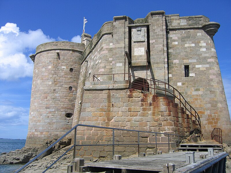 Perché sur l'îlot du Taureau à l'entrée de la baie de Morlaix, le château a longtemps contrôlé l'accès à la rade et occupé une position stratégique pour sa défense. Un premier château édifié en 1521 fut rapidement détruit lors de l'attaque anglaise de 1522, puis un fort fut autorisé par François Ier en 1542 et financé par les habitants de Morlaix. En compensation, le roi accorda aux Morlaisiens le privilège de nommer le gouverneur et la garnison, privilège qui se révéla coûteux, le budget de gestion atteignant 18 000 livres en 1620. Le fort primitif, implanté sur le rocher nommé Taureau, comprenait une tour d'artillerie dite Tour Française, des canonnières au ras de l'eau et une enceinte de 6,5 mètres ; Jean de Kermellec en prit le commandement en 1544 avec une vingtaine d'hommes. Fragile et construit dans la précipitation, cet ouvrage subit des dommages : la Tour Française fut détruite en 1609 puis reconstruite en 1614, et le rocher de Primel fut fortifié et exploité pour le pillage pendant les guerres de Religion. Le 22 février 1661 la couronne reprit le fort aux Morlaisiens et l’intégra au système de défense royal. Vauban visita le site en avril 1689, qualifia le fort primitif de trop petit et mal adapté, et proposa un projet de reconstruction en pierre de taille appliqué jusqu'à l'achèvement de l'ouvrage en 1745. Il préconisa la consolidation de la Tour Française, la construction d'un nouveau fort robuste pour résister aux coups de mer et aux vaisseaux, le remplacement des anciennes casemates par une batterie basse voûtée et l'ouverture d'embrasures adaptées au tir. Les travaux, conduits selon ses plans puis poursuivis par Siméon Garangeau et, après la mort de celui-ci en 1741, par Amédée-François Frézier, franchirent plusieurs étapes entre 1689 et 1745 : reconstruction des fronts sud et nord, élévation de l'enceinte ouest, achèvement des casernes et construction d'un grand bâtiment intérieur pour la garnison. Les carrières locales de la baie fournirent les pierres; la restauration porta sur le parement, les embrasures, la plate-forme de la tour et l'organisation des espaces intérieurs, la terrasse du nouveau bâtiment étant achevée en 1745. Malgré les remaniements effectués pour suivre les progrès de l'artillerie et les agrandissements successifs, le fort a perdu son couronnement crénelé mais reste un exemple majeur de construction militaire. À partir de 1720 il servit aussi de prison : la capacité étant limitée, seuls une dizaine de détenus pouvaient être enfermés, parmi lesquels des gentilshommes bretons sur simple lettre de cachet, La Chalotais en 1765 et des députés appelés « crêtois » en 1795. Le château continua d'abriter des prisonniers au XIXe siècle, notamment des communards comme Louis Auguste Blanqui, incarcéré en 1871 dans la « salle de discipline » où il rédigea L'Éternité par les astres. L'évolution de l'artillerie rendit le fort obsolète au tournant du XXe siècle : il cessa d'être opérationnel en 1878, fut déclassé en 1883 et son fanal s'éteignit en 1889. L'armement et les effectifs ont beaucoup varié : la garnison comptait une trentaine d'hommes en 1544, 38 en 1593, 45 en 1702 et atteignit 150 soldats en 1811; l'artillerie culmina à 23 pièces en 1778 puis fut de 14 sous Napoléon Ier. Au XIXe et XXe siècles le fort connut des usages divers : location comme résidence entre 1930 et 1937, installation d'un poste anti-aérien allemand pendant la Seconde Guerre mondiale, puis d'une école de voile et d'un centre nautique de 1960 à 1982. La découverte de quelques ossements en 1905 n'entraîna pas de suite, tandis que l'État classa le château au titre des monuments historiques le 29 juillet 1914. Après un abandon marqué, des associations locales se mobilisèrent à partir de 1988 et une nouvelle structure élargie fut constituée en 1994 avec l'État et la chambre de commerce et d'industrie de Morlaix pour sauver et restaurer le monument. Le chantier de restauration, commencé le 26 mai 2000 et inspiré notamment des prescriptions de Vauban, a duré six ans ; il a permis la remise en état de la cale, des parements et des aménagements intérieurs, et a préparé une muséographie centrée sur la vie quotidienne au XVIIIe siècle. Le fort, situé sur la commune de Plouezoc'h et inatteignable à pied quel que soit le coefficient de marée, est ouvert au public depuis juin 2006 et accueille chaque année plus de 20 000 visiteurs.