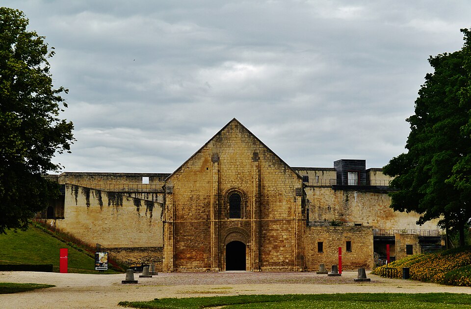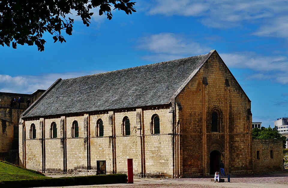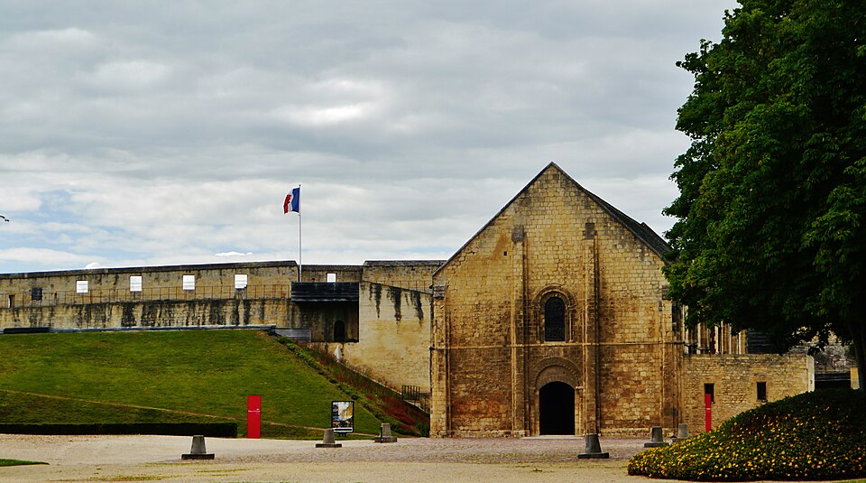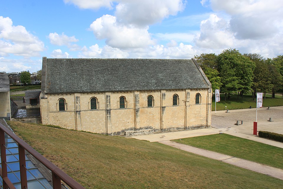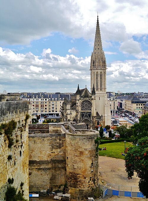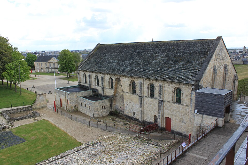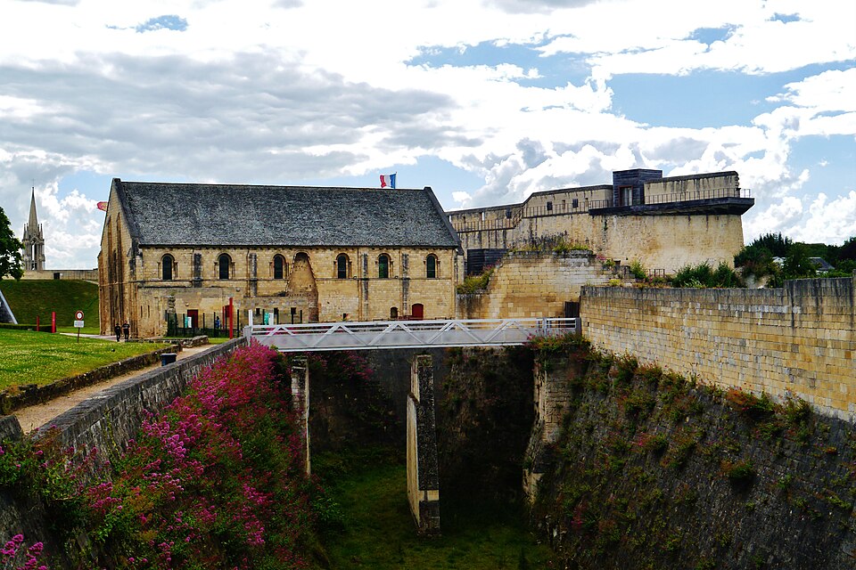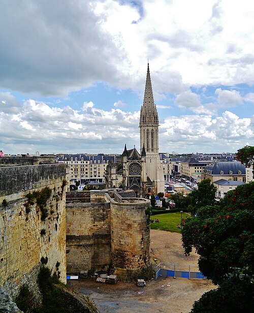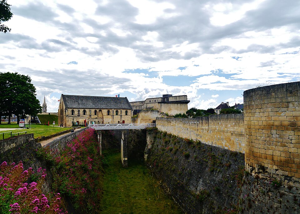 Le château de Caen, fondé vers 1060 par Guillaume le Conquérant, occupe un éperon calcaire dominant la basse vallée de l'Orne et la plaine de Caen. Avec ses 5,5 hectares, il figure parmi les plus vastes châteaux forts d'Europe. Le donjon et la grande salle dite de l'Échiquier furent élevés autour de 1120 par Henri Ier Beauclerc. Philippe Auguste fit entourer le donjon d'une chemise flanquée de quatre tours rondes et bordée de fossés, renforçant ainsi la position au nord. Un logis, aujourd'hui appelé logis du gouverneur, remonte au XIVe siècle et a été remanié aux XVIe et XVIIIe siècles. L'église paroissiale Saint‑Georges, d'origine romane, conserve la nef lambrissée et des baies romanes malgré des transformations des siècles suivants. Implanté au bord d'un plateau, le château a été choisi pour contrôler les routes est‑ouest du duché et pour servir de point d'appui en Basse‑Normandie. Dès l'époque normande il combine fonctions de résidence princière, centre administratif et refuge militaire, puis, à partir du XVIIe siècle, il perd progressivement son rôle défensif et devient une place de garnison. Le site a livré peu de traces d'occupations antérieures, si ce n'est des fosses gauloises contenant de la céramique datée d'environ 150–50 av. J.-C. et une fosse funéraire sous les fondations de Saint‑Georges. Au Moyen Âge le château abritait des salles d'apparat, des ateliers et des installations d'approvisionnement, ainsi que des prisons et des services administratifs comme l'Échiquier de Normandie. Après la soumission à Philippe Auguste le château fut modernisé : nouvelles tours, fossé profond et barbacanes améliorèrent ses défenses tandis que le commandement et l'administration royale s'y rassemblèrent. Les transformations se sont poursuivies aux XVe–XVIe siècles, avec des ateliers métallurgiques puis des aménagements de la Renaissance, comme une écurie ornée de fresques représentant des mors. Durant les guerres et les troubles intérieurs le château servit de place forte, de prison et de symbole du pouvoir, subissant parfois sièges, bombardements et changements de main. La Révolution marque un tournant : le donjon fut partiellement arasé, les fossés comblés et l'enceinte affectée à l'usage militaire, tandis que le château devint progressivement une caserne. Au XIXe siècle la transformation en caserne Lefèbvre entraîna la démolition des vestiges du donjon, le comblement des fossés et la construction de bâtiments d'infanterie adaptés à l'époque. La Seconde Guerre mondiale a gravement endommagé l'enceinte et plusieurs bâtiments ; après 1944 des campagnes de fouilles et des restaurations ont dégagé les substructions médiévales et mis en valeur le site. Restitué à la ville en 1956, le château a été aménagé comme enceinte des musées : le musée de Normandie a ouvert dans le logis du gouverneur et le musée des Beaux‑Arts a été installé à demi‑enterré près de la porte des Champs. Les recherches archéologiques récentes ont mis au jour des forges, une poudrière, une seconde grande salle d'apparat et des vestiges de prisons dont les murs portent des graffitis bien conservés. Les remparts, les tours et les deux portes monumentales, Saint‑Pierre au sud et la porte des Champs à l'est, constituent le système défensif le plus lisible du site, complété par un ensemble de fossés taillés dans le rocher. L'enceinte, à l'exception des constructions modernes, est protégée au titre des monuments historiques et fait l'objet de campagnes de restauration et d'aménagements paysagers et muséographiques. Aujourd'hui le château accueille des expositions temporaires, des collections permanentes, des œuvres contemporaines dans son parc et des visites qui mettent en valeur son histoire millénaire. Des projets récents visent à ouvrir et valoriser davantage les tours, les anciennes prisons et l'intérieur du donjon, ainsi qu'à aménager des espaces de réception et de promenade au sein de l'enceinte.