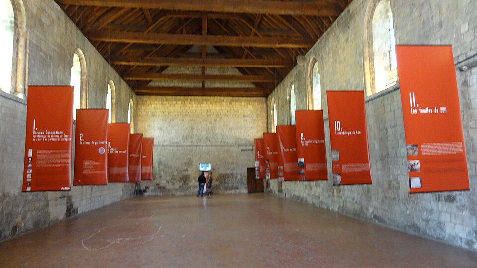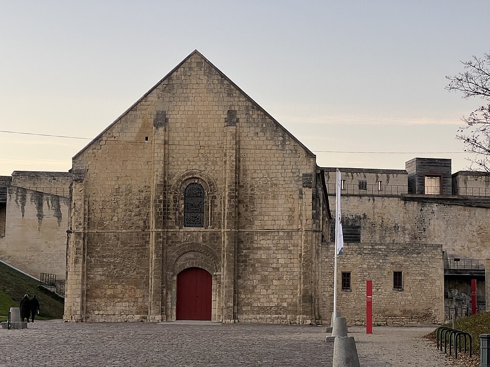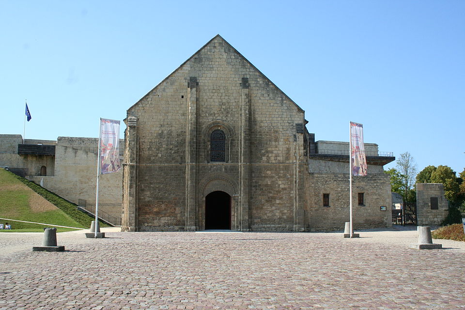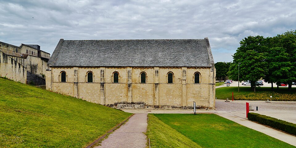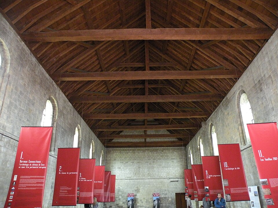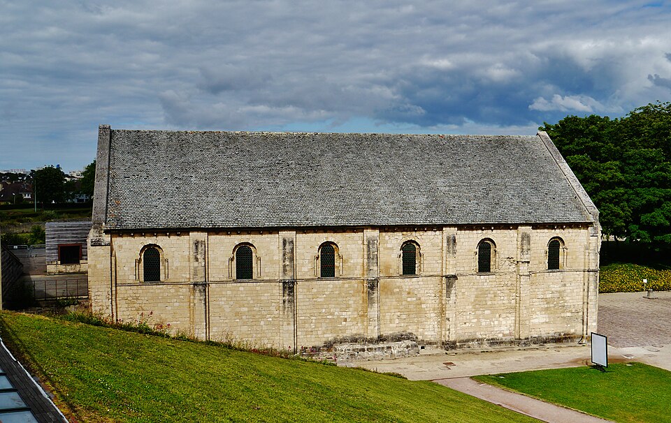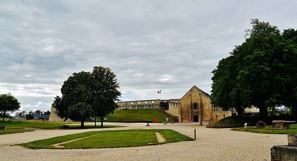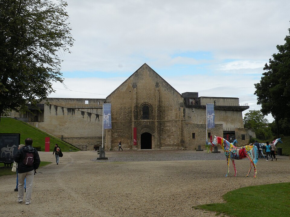 Le château de Caen, fondé vers 1060 par Guillaume le Conquérant, occupe un éperon calcaire dominant la basse vallée de l'Orne et la plaine de Caen. Avec ses 5,5 hectares, il figure parmi les plus vastes châteaux forts d'Europe. Le donjon et la grande salle dite de l'Échiquier furent élevés autour de 1120 par Henri Ier Beauclerc. Philippe Auguste fit entourer le donjon d'une chemise flanquée de quatre tours rondes et bordée de fossés, renforçant ainsi la position au nord. Un logis, aujourd'hui appelé logis du gouverneur, remonte au XIVe siècle et a été remanié aux XVIe et XVIIIe siècles. L'église paroissiale Saint‑Georges, d'origine romane, conserve la nef lambrissée et des baies romanes malgré des transformations des siècles suivants. Implanté au bord d'un plateau, le château a été choisi pour contrôler les routes est‑ouest du duché et pour servir de point d'appui en Basse‑Normandie. Dès l'époque normande il combine fonctions de résidence princière, centre administratif et refuge militaire, puis, à partir du XVIIe siècle, il perd progressivement son rôle défensif et devient une place de garnison. Le site a livré peu de traces d'occupations antérieures, si ce n'est des fosses gauloises contenant de la céramique datée d'environ 150–50 av. J.-C. et une fosse funéraire sous les fondations de Saint‑Georges. Au Moyen Âge le château abritait des salles d'apparat, des ateliers et des installations d'approvisionnement, ainsi que des prisons et des services administratifs comme l'Échiquier de Normandie. Après la soumission à Philippe Auguste le château fut modernisé : nouvelles tours, fossé profond et barbacanes améliorèrent ses défenses tandis que le commandement et l'administration royale s'y rassemblèrent. Les transformations se sont poursuivies aux XVe–XVIe siècles, avec des ateliers métallurgiques puis des aménagements de la Renaissance, comme une écurie ornée de fresques représentant des mors. Durant les guerres et les troubles intérieurs le château servit de place forte, de prison et de symbole du pouvoir, subissant parfois sièges, bombardements et changements de main. La Révolution marque un tournant : le donjon fut partiellement arasé, les fossés comblés et l'enceinte affectée à l'usage militaire, tandis que le château devint progressivement une caserne. Au XIXe siècle la transformation en caserne Lefèbvre entraîna la démolition des vestiges du donjon, le comblement des fossés et la construction de bâtiments d'infanterie adaptés à l'époque. La Seconde Guerre mondiale a gravement endommagé l'enceinte et plusieurs bâtiments ; après 1944 des campagnes de fouilles et des restaurations ont dégagé les substructions médiévales et mis en valeur le site. Restitué à la ville en 1956, le château a été aménagé comme enceinte des musées : le musée de Normandie a ouvert dans le logis du gouverneur et le musée des Beaux‑Arts a été installé à demi‑enterré près de la porte des Champs. Les recherches archéologiques récentes ont mis au jour des forges, une poudrière, une seconde grande salle d'apparat et des vestiges de prisons dont les murs portent des graffitis bien conservés. Les remparts, les tours et les deux portes monumentales, Saint‑Pierre au sud et la porte des Champs à l'est, constituent le système défensif le plus lisible du site, complété par un ensemble de fossés taillés dans le rocher. L'enceinte, à l'exception des constructions modernes, est protégée au titre des monuments historiques et fait l'objet de campagnes de restauration et d'aménagements paysagers et muséographiques. Aujourd'hui le château accueille des expositions temporaires, des collections permanentes, des œuvres contemporaines dans son parc et des visites qui mettent en valeur son histoire millénaire. Des projets récents visent à ouvrir et valoriser davantage les tours, les anciennes prisons et l'intérieur du donjon, ainsi qu'à aménager des espaces de réception et de promenade au sein de l'enceinte.