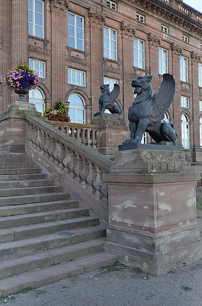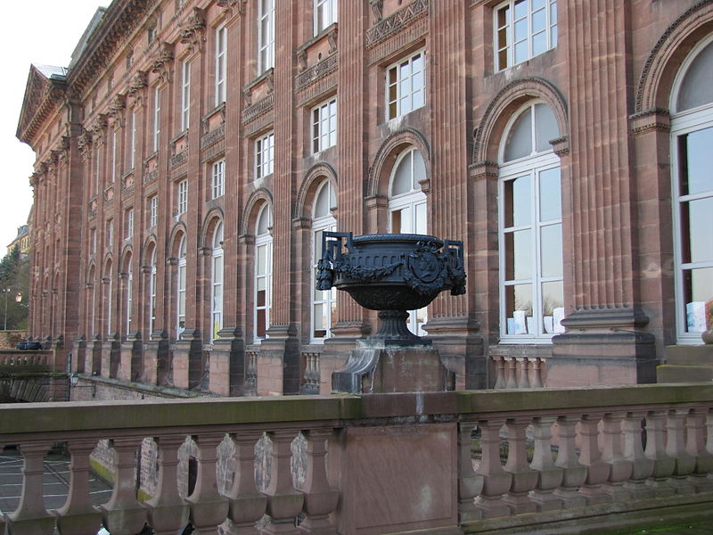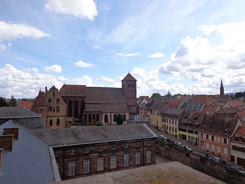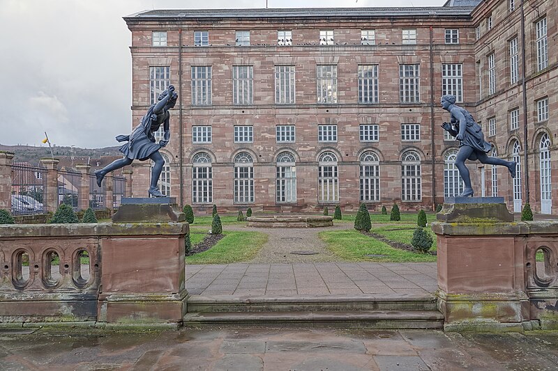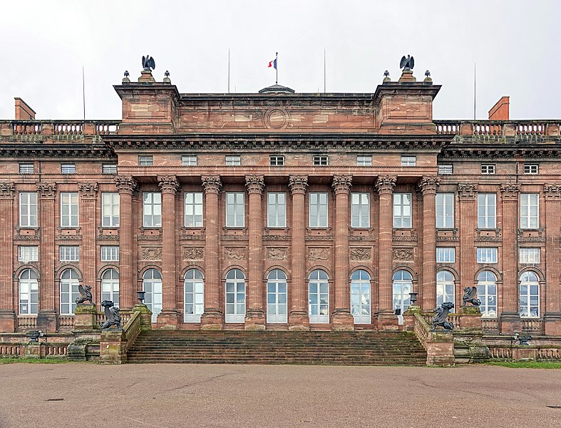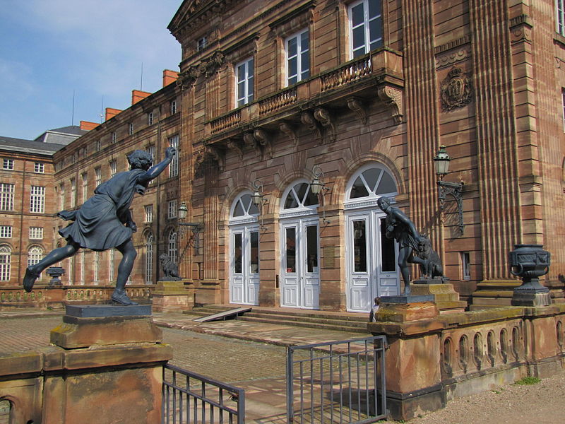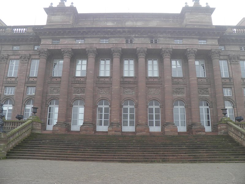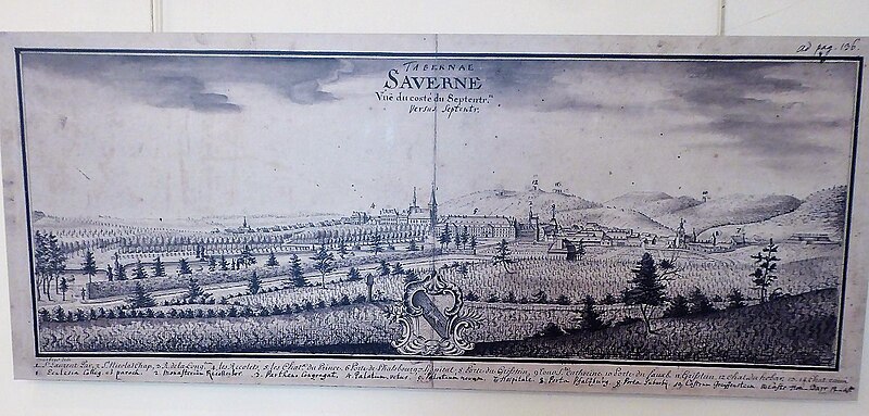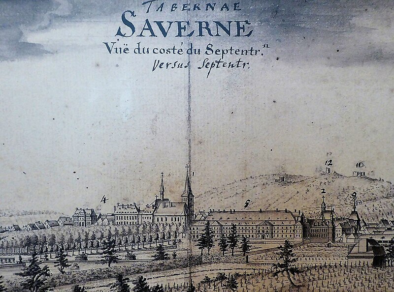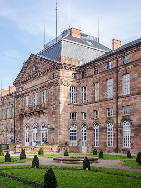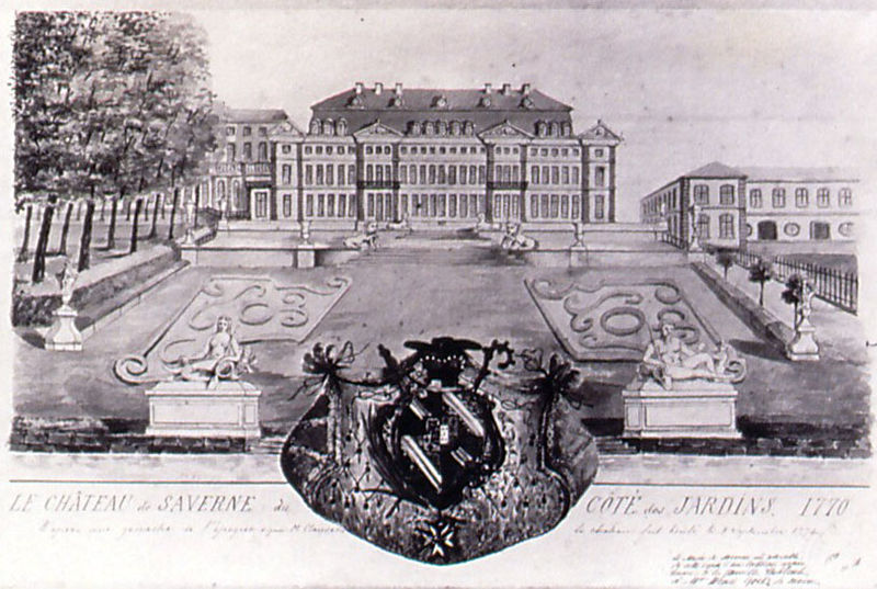 Le château des Rohan, situé au centre de Saverne, est un ancien château épiscopal fortement remanié au fil des siècles. Sa longue histoire commence comme résidence des évêques de Strasbourg depuis probablement le XIIe siècle, avec un donjon subsistant jusque vers le milieu du XVIIIe siècle. Aux XVIe et XVIIe siècles le site fut transformé et embelli : parquets et lambris datent de 1568, des jardins sont attestés dès le début du XVIe siècle et réaménagés par Peter Leonhard Doffuz en 1666-1667. Entre 1668 et 1670 fut élevé un nouveau « château carré », attribué à Matthias Stoy ou à Doffuz, le projet ayant été modifié en 1670 par un architecte français ; Coysevox réalisa une partie du décor intérieur de 1667 à 1673. Les travaux et les décors se poursuivirent ensuite de 1680 à 1689, avec des écuries en 1690, un réaménagement par Robert de Cotte en 1712, des décorations du grand appartement par Robert le Lorrain entre 1717 et 1723, puis de nouvelles dépendances et pavillons entre 1726 et 1730. Les jardins furent encore agrandis au XVIIIe siècle, notamment entre 1756 et 1777, et François Pinot procéda à des travaux d’écuries et au réaménagement d’un appartement dans les années 1760. Après un incendie en 1779, le cardinal Louis René Édouard de Rohan décida la reconstruction ; Nicolas‑Alexandre Salins, dit Montfort, conduisit des travaux de 1779 à 1790 dont subsiste la façade ouest et le bâtiment sur jardin, et il dessina aussi des meubles ainsi qu’un kiosque chinois sur une île du grand canal. La Révolution interrompit les travaux en 1790 : la décoration intérieure resta inachevée, le château fut utilisé comme caserne en 1793 et il subit des incendies en 1793 et 1797. Au XIXe siècle deux ailes du château carré furent démolies en 1818 et une aile des écuries détruite en 1846 ; les colonnes doriques du vestibule de 1790 furent dispersées à des carrefours de la région. De 1853 à 1857, l’architecte Alphonse Lejeune restaura et transforma le bâtiment pour en faire un asile pour veuves, en adjoignant deux ailes latérales et un entresol et en supprimant l’aile nord du château carré. La commune racheta l’édifice en 1952 pour y installer des services administratifs ; il abrite aujourd’hui les musées municipaux et plusieurs institutions municipales. Le château a été classé au titre des monuments historiques à plusieurs reprises, en février 1933, en novembre 1934 et en novembre 1995. Le parc, conçu et transformé au fil des siècles, comportait terrasses, parterres de broderie, grand bassin et un canal rectiligne de plusieurs kilomètres ponctué de vastes pièces d’eau et d’un grand bassin circulaire ; statues, vases, potager, bosquets et boulingrins structuraient ces espaces. Aujourd’hui le château accueille notamment le musée d’art et d’histoire, l’Espace Rohan — relais culturel avec une salle de 500 places —, une école primaire, une auberge de jeunesse, le poste de police municipale, le Club Vosgien, ainsi que des salons et salles de réunion.