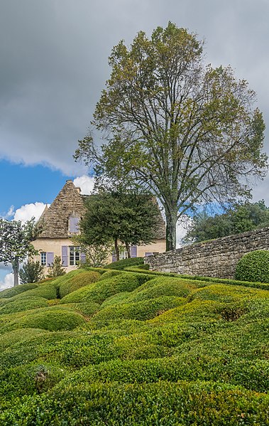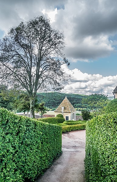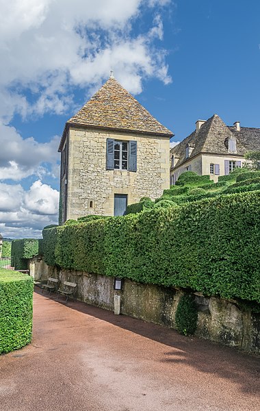 Le château de Marqueyssac, manoir entouré de communs, se situe sur la commune de Vézac, dans le Périgord noir, au sud-est du département de la Dordogne en région Nouvelle-Aquitaine. Implanté sur un plateau dominant la vallée de la Dordogne, son parc culmine à 130 mètres et offre de larges points de vue sur la vallée et les châteaux de Castelnaud et de Beynac. Le bâti comprend un corps de logis composé de deux pavillons disposés en retour d'équerre, une tour ronde sur la façade ouest abritant l'escalier et d'importants remparts. Le parc, aménagé en jardin de buis surmonté de cyprès et ponctué de cyclamens de Naples, a été créé par Julien de Cerval après 1861, à son retour d'Italie où il était intervenu dès 1849 pour défendre les États pontificaux. Après la Seconde Guerre mondiale, face à l'incapacité des propriétaires successifs à entretenir les jardins, Kléber Rossillon, gestionnaire du château de Castelnaud, a repris leur gestion et leur maintenance. Les buis centenaires du parc sont encore taillés à la main. Le château a été inscrit au titre des monuments historiques le 29 septembre 1948 pour ses façades et ses toitures. Les jardins de buis qui surplombent la Dordogne sont labellisés jardin remarquable.