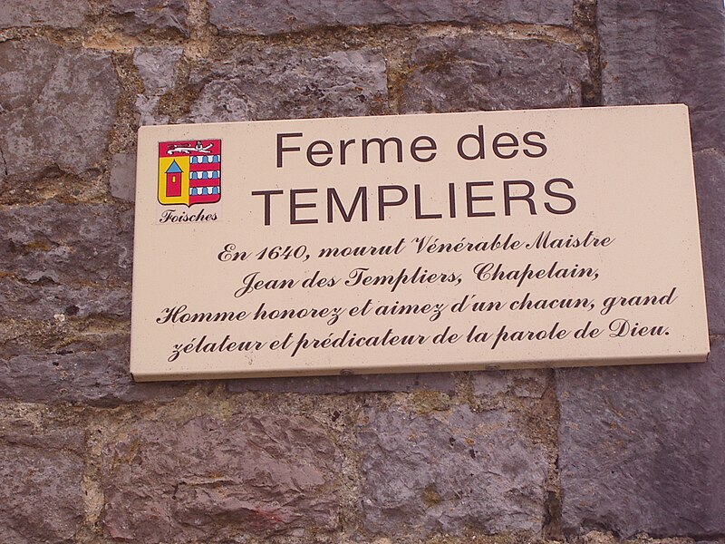 Le château-ferme de Foisches, dit ferme des Templiers, est une ancienne maison forte transformée en exploitation agricole située à Foisches, dans les Ardennes. Implanté au pied d'un coteau, légèrement en contrebas de l'église Saint-Martin, il s'organise autour d'une cour rectangulaire flanquée de trois tours d'angle. L'édifice, bâti en pierre et en briques, présente peu d'ouvertures extérieures, hormis de grandes portes liées à l'usage agricole. La façade sur cour de l'aile Est se distingue par un ordonnancement décoratif remarquable pour la région : des lignes en pierre bleue de Givet, formant linteaux, appuis et encadrements, sont reliées par des cordons en bandeaux qui se détachent sur la maçonnerie de briques. Sur le côté droit de cette façade, une série de sept arcades en plein cintre, rehaussées de claveaux en bossage et reposant sur des colonnes, constitue un élément singulier ; certaines colonnes portaient des sculptures de têtes grotesques aujourd'hui martelées. Cette façade de l'aile Est remonte à la construction initiale, au début du XVIIe siècle ; d'autres parties ont été remaniées aux XIXe et XXe siècles. Le château-ferme appartenait à l'origine à une famille dite « des Templiers », d'où son nom, mais il n'a aucun lien avec l'ordre du Temple en raison de sa datation. Un acte de Charles de Berlaymont de 1558 indique que le village était en ruines après les combats entre les troupes royales françaises et les armées de Charles Quint. À l'issue de ces événements, le capitaine de Hierges fit construire la maison forte, placée à proximité de l'église. En 1640, l'attaque de Charlemont par les troupes du maréchal de la Meilleraye provoqua de nouvelles destructions ; la maison forte fut ensuite remise en état et la chapelle attenante restaurée en 1671. Transformée en ferme après la Révolution, l'ouvrage fortifié servit par la suite de logement pour les officiers du proche Fort de Charlemont de Givet. L'édifice a été inscrit au titre des monuments historiques en 1991.