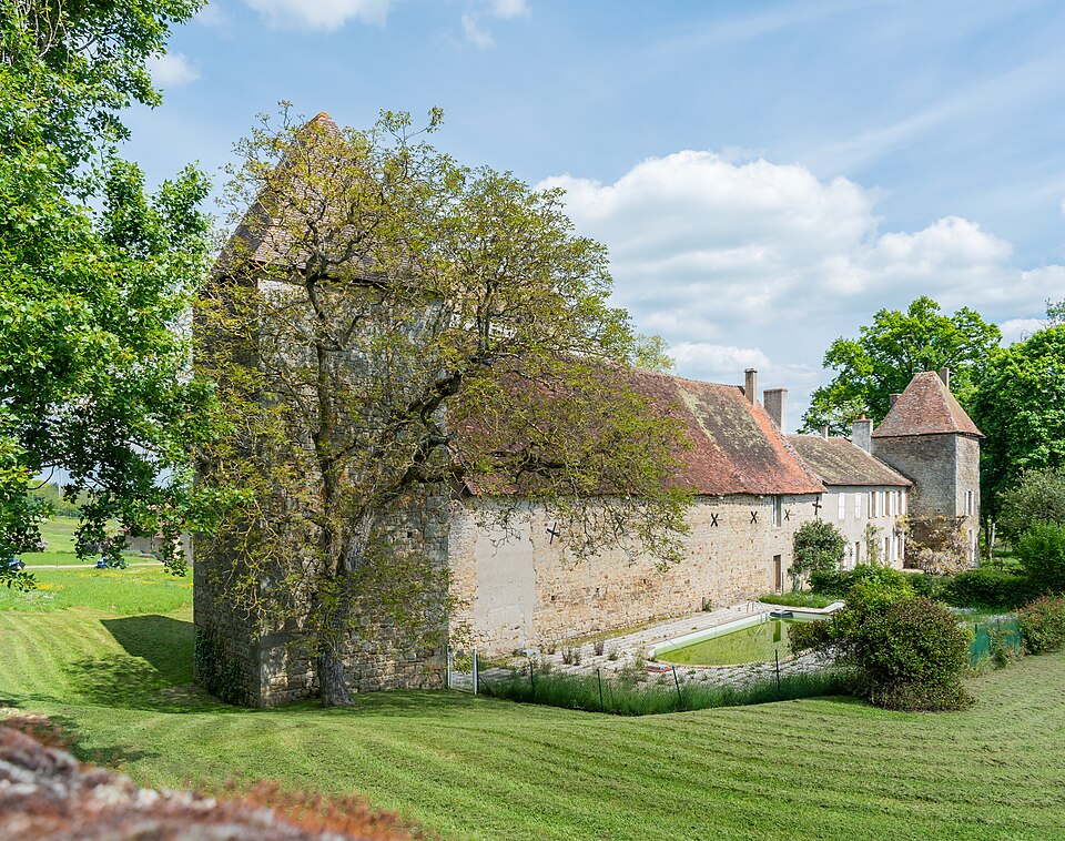 Le château fort de Noyant-d'Allier, situé dans la commune de Noyant-d'Allier, dans le département de l'Allier, occupe une position dominante sur la vallée de la Queune et sur la voie qui reliait Le Montet (aux Moines) à Souvigny. Le fief est connu à partir du XIVe siècle; la chronologie de la construction varie selon les sources, qui situent l'élévation du donjon soit dans la seconde moitié du XIVe siècle, soit au cours du XVe siècle. L'édifice relève de la typologie des hauts donjons quadrangulaires en pierre, pourvus de mâchicoulis et d'un chemin de ronde et flanqués d'une tourelle abritant un escalier à vis. L'enceinte médiévale qui entoure le donjon a conservé son tracé, une part de ses maçonneries et trois tours de guet carrées. Les ducs de Bourbon sont probablement à l'origine de cet ensemble, comme le suggère la mention de Nicolas de Nicolay en 1569. Profondément remanié aux XVIIIe et XIXe siècles pour le rendre habitable, le donjon originel, d'abord aveugle, a été percé de baies à meneaux et a reçu des bâtiments accolés; la toiture a été rehaussée pour dégager le chemin de ronde. Les cinq niveaux, aménagés dès le début du XIXe siècle, conservent des éléments d'architecture intérieure de cette époque, tels que boiseries, pièces de réception et plafonds moulurés. Des travaux vers 1850 ont également porté sur les toitures, l'ouverture de baies néogothiques et les décors intérieurs. Différents communs ont été construits aux XVIIIe et XIXe–XXe siècles, parmi lesquels une maison de gardien, un grand pavillon à l'ouest, une grange et un hangar au nord‑est, ainsi que des dépendances à l'est. Le matériau principal, une pierre de grès locale, confère à l'édifice une teinte beige-dorée; les adjonctions en brique y restent relativement discrètes. Le parc, dessiné et planté par le paysagiste Joseph Treyve entre 1850 et 1860, a été composé selon les goûts du Second Empire, avec massifs de chênes, un frêne pleureur, un séquoia Wellingtonia, des plates‑bandes à la française et des allées bordées de rosiers. L'ensemble — donjon principal, enceinte muraillée avec ses tours, communs et parc — a été inscrit au titre des monuments historiques en 2007.