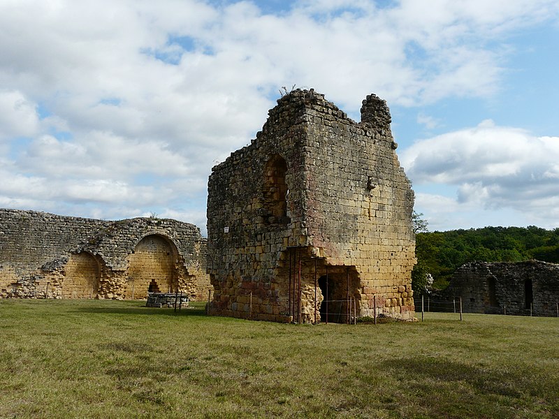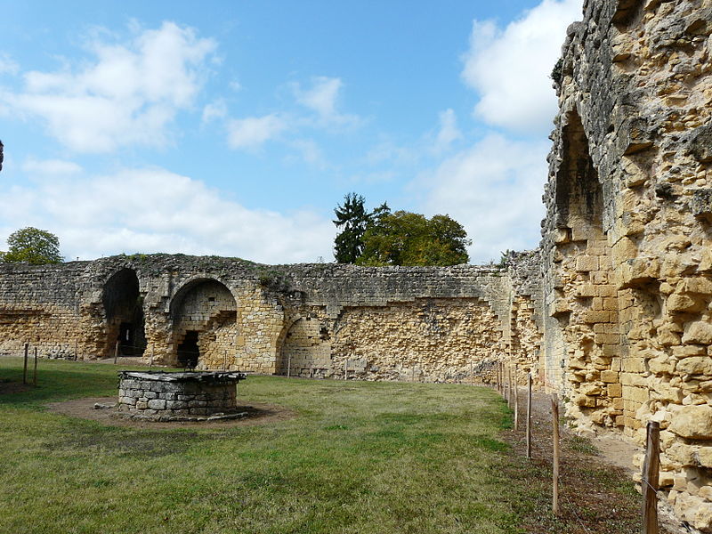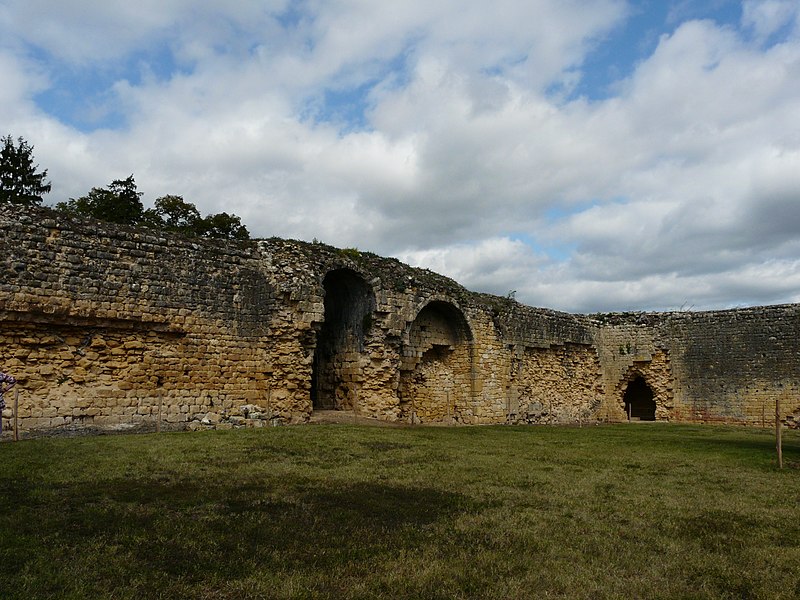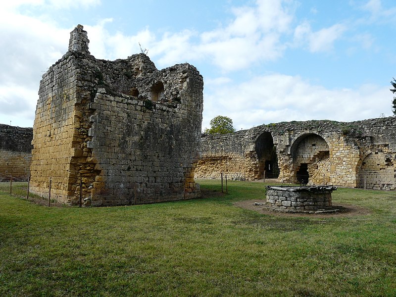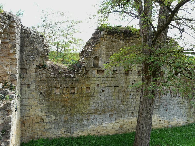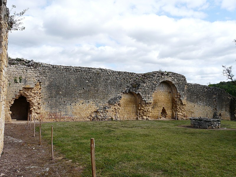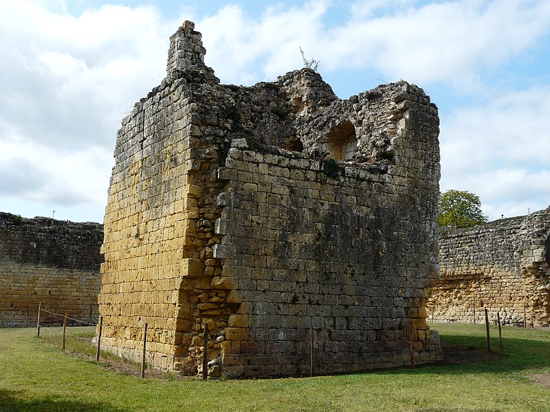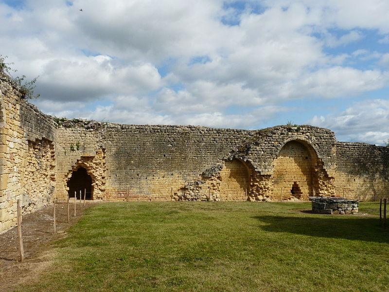 Les vestiges du château-fort de Molières se composent principalement de l'enceinte avec ses remparts et d'un donjon carré isolé au centre. Les attributions historiques divergent : certaines sources évoquent Édouard III et une construction en 1286, tandis que d'autres situent la fondation de la bastide sous Édouard I en 1273 et décrivent des travaux engagés après 1314 sous l'autorité du sénéchal de Périgord, Guilhem de Toulouse, pendant le règne d'Édouard II. Un acte de 1320 atteste l'arrêt des chantiers, le château demeurant inachevé. La tradition locale lui a valu le surnom de « château de la Reine Blanche » ; selon la légende, la reine Blanche y aurait été enfermée puis empoisonnée. L'enceinte, de plan carré et d'environ 50 mètres de côté, a été élevée jusqu'au niveau du chemin de ronde ; aux angles s'élèvent des tours rondes pour la défense. Au centre se trouve une tour carrée de six mètres de côté, contemporaine de la création de la bastide, et à l'intérieur la salle d'apparat comportait des latrines à siège double. Le site est inscrit au titre des monuments historiques depuis 1948.
