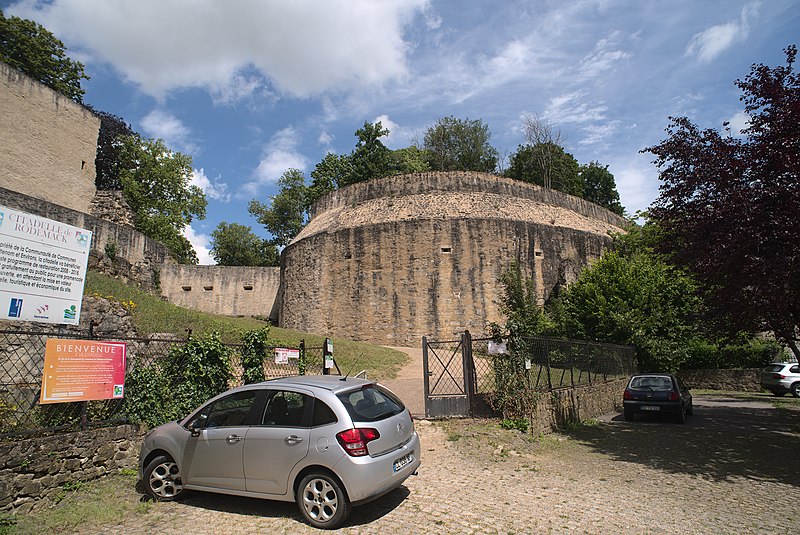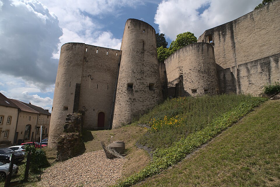 Le château primitif, élevé dans le dernier quart du XIIe siècle pour Arnould Ier de Rodemack, fut agrandi dans la seconde moitié du XIIIe siècle pour Gilles II de Rodemack. Il fut entièrement reconstruit et étendu vers le nord au XVe siècle ; à cette époque datent les tours jumelles, la tour Boncour, le passage voûté d'accès au donjon et la deuxième enceinte. En 1492, la famille de Bade devient propriétaire du domaine. Au XVIe siècle, sur l'emplacement du château primitif, furent construits le logement du commandant (côté 23 sur les plans), le pavillon des officiers (côté 30) et un puits (côté 31). Le château est agrandi de nouveau au XVIIe siècle par l'adjonction, à l'est, du pâté, et l'enceinte est reprise dans sa partie haute. Occupée par l'armée française depuis 1678, la place voit au XVIIIe siècle l'édification de corps de garde et de casernes aujourd'hui disparus, ainsi que d'un magasin à poudre et d'écuries qui subsistent. Le logement du commandant et le pavillon des officiers sont réaménagés, mais le logement du commandant est détruit en 1819 et toutes les fortifications du côté nord sont démantelées en 1821, avant que l'armée ne déclasse le château. Au milieu du XIXe siècle, le baron de Gargan rachète les vestiges, aménage le pavillon des officiers en habitation et transforme le magasin à poudre en chapelle. Des travaux historiques datent de 1948 la reconstruction du pavillon des officiers au-dessus des caves.