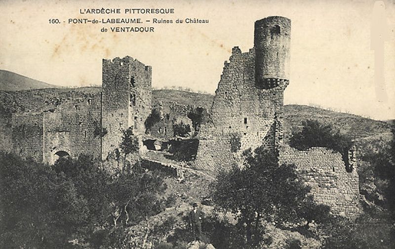 La seigneurie de Meyras appartenait aux Solignac lorsque fut construit le château ; l'appellation « Ventadour » n'apparaît qu'au début du XIXe siècle. Par mariages et héritages, la forteresse passa aux Montlaur puis, à la fin du XIVe siècle, à la famille de Lévis. À partir du XVe siècle, la branche Lévis-Ventadour se met en place après l'union de Louis de Lévis avec Blanche de Ventadour ; plusieurs générations de Lévis, dont Gilbert I, Gilbert II et Gilbert III, se succèdent et marquent l'histoire du domaine, Gilbert III recevant le duché de Ventadour. Pendant les Guerres de Religion, les fidélités familiales et les charges féodales influencent la destinée du château ; il servit notamment de douaire à Marguerite de Montmorency, qui le détenait après 1593. En 1622 la garde du château fut l'objet d'un affrontement et, après l'édit de Nantes, l'ouvrage fut démantelé préventivement.