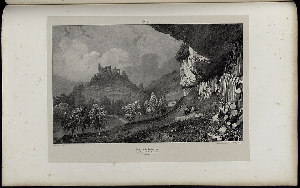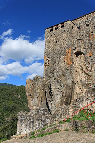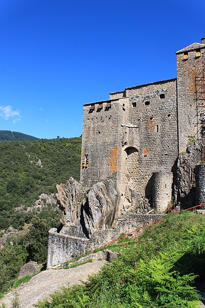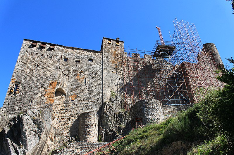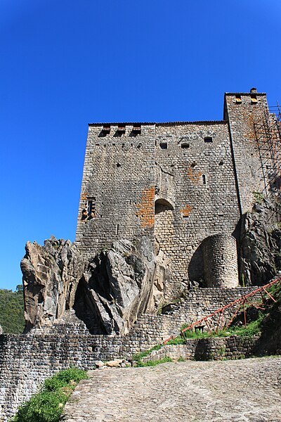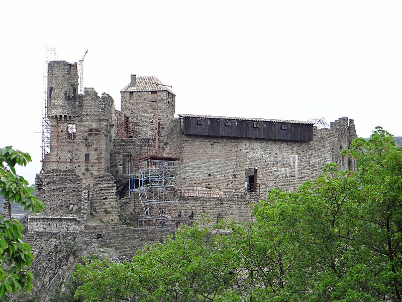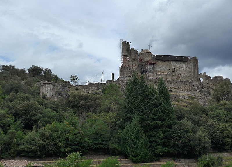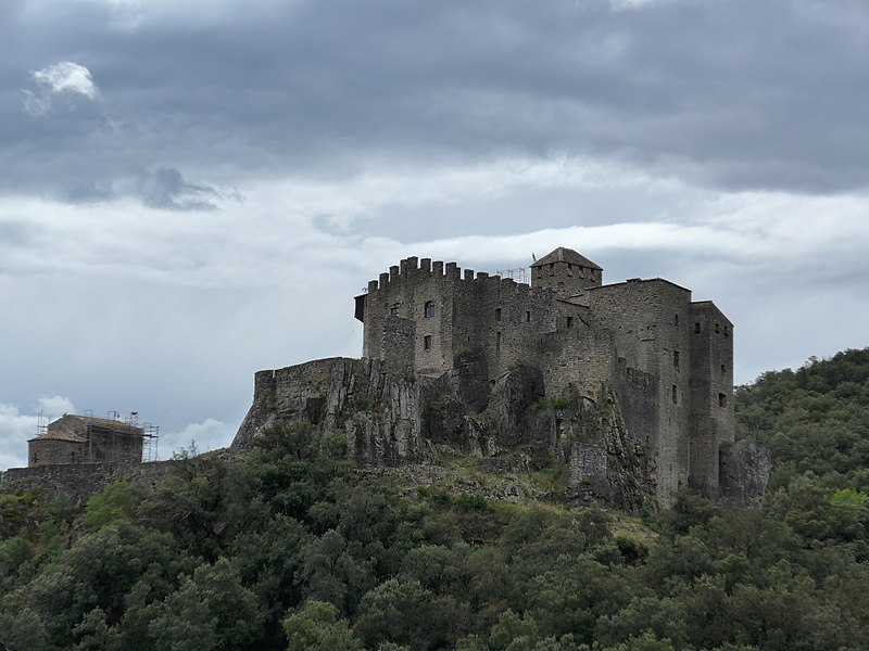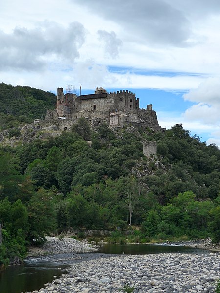 Érigé sur un éperon rocheux à 373 mètres d'altitude, le château surveille la confluence de la Fontaulière et de l'Ardèche, non loin du Lignon, et contrôlait les voies d'accès entre le Rhône et le Massif central, notamment vers Le Puy par les cols du Pal et de la Chavade. La découverte d'une borne milliaire en 1857 a suscité des hypothèses sur l'implantation de la route romaine, mais d'autres études situent cette voie sur la rive gauche et évoquent l'existence possible d'un second itinéraire riverain. Des historiens ont également catalogué l'ouvrage comme « château péager » et plusieurs sources mentionnent l'existence, dès le Moyen Âge, d'un pont dit du Pourtalou sur la Fontaulière, qui reliait la rive gauche au chemin menant à la forteresse ; des vestiges de calades, de soutènements et d'occupations anciennes sont visibles sur la face nord de l'éperon.