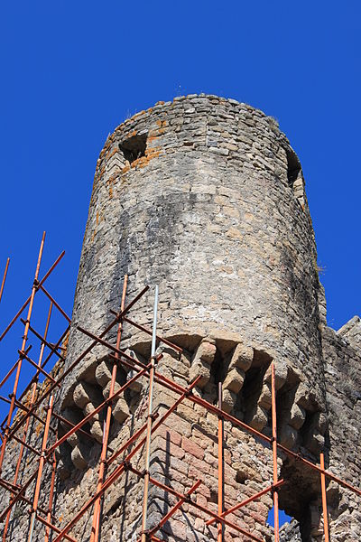 Depuis la fin des années 1960, des opérations de restauration et de consolidation sont menées par des propriétaires et des associations de bénévoles, avec des chantiers encadrés, mais la direction régionale des affaires culturelles a cessé ses subventions en 1997 au motif de la nature des travaux. Le plan du site s'appuie sur un modèle de « carré savoyard » : le donjon est accolé à la courtine et l'ensemble comprend trois enceintes, créneaux et tours compactes. Les parties observables comprennent notamment un donjon carré, des tours, deux pigeonniers et une porte fortifiée ; la tour nord‑ouest comporte des salles voûtées et la tour sud‑ouest, surmontée d'échauguettes, correspond à des transformations attribuées au bas Moyen Âge.