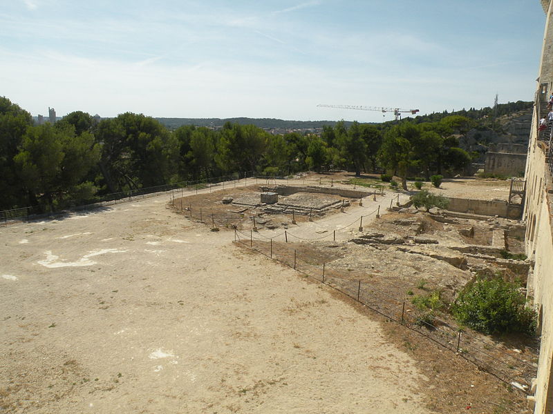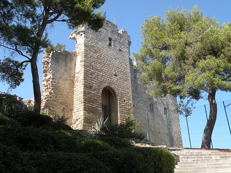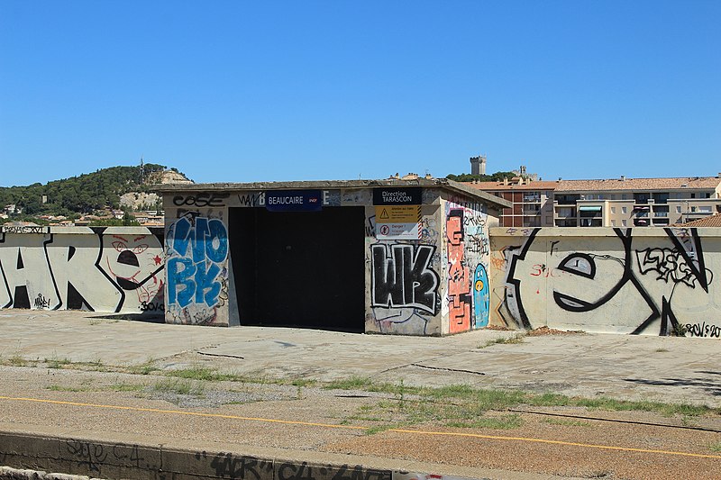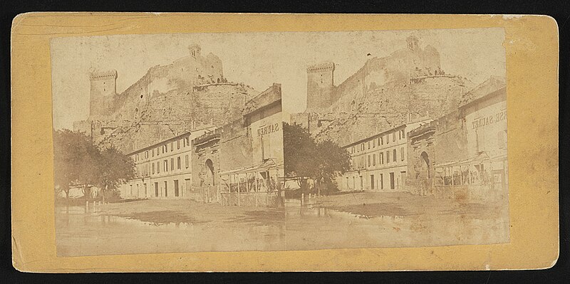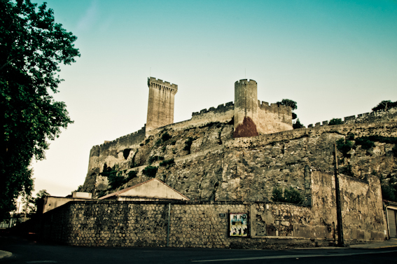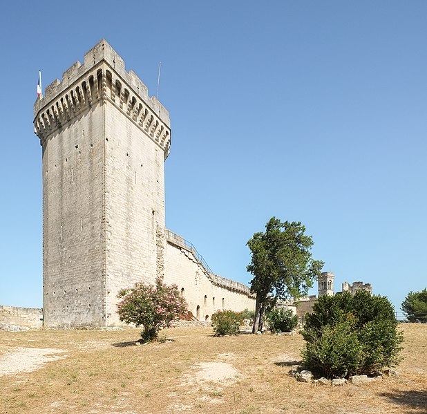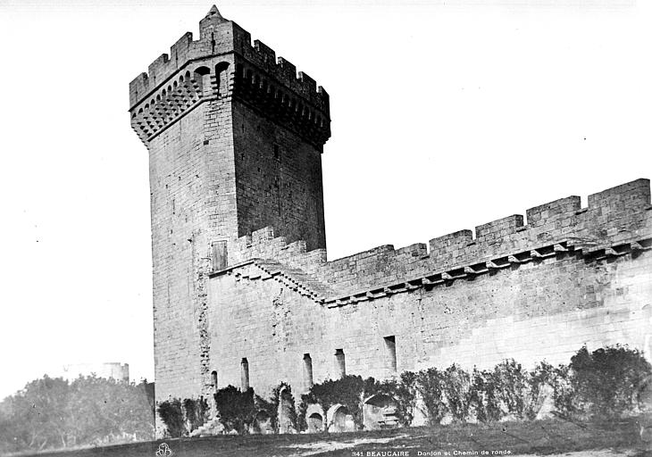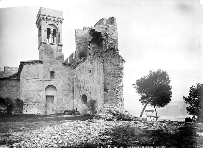 Le château, appelé Bellicadro, est un ancien château fort bâti à l'époque des premières croisades ; il se dresse sur un éperon rocheux en bordure du Rhône, sur la commune de Beaucaire (Gard, Occitanie). Il fait face au château de Tarascon, sur l'autre rive, et se présente aujourd'hui en ruines mais aménagé pour la visite. Construit dès le XIe siècle, il est mentionné en 1216 lors du siège de la ville ; la Chanson de la croisade albigeoise rapporte que les assiégés y utilisèrent des pots d'alquitran enflammés pour détruire les engins de siège. Réaménagé en une puissante citadelle sous le règne de Saint Louis, le château accueillit le 7 mai 1251 la signature d'un traité mettant fin au différend opposant la ville d'Avignon à Alphonse de France, comte de Poitiers et de Toulouse, marquis de Provence. La place connut d'autres sièges et tentatives d'attaque : en 1385 par un corps d'Italiens, de Gascons et d'Anglais, et en 1419 par un parti d'Anglais et de Bourguignons qui furent finalement repoussés. Le château fut démantelé en 1632 sur l'ordre du cardinal de Richelieu. Perché sur son éperon, il était autrefois ceinturé d'une enceinte dont les traces subsistent ; le site comprend un donjon de plan triangulaire, configuration qualifiée d'unique. Prosper Mérimée évoque cette tour comme « le reste le plus curieux de cette nouvelle forteresse » et souligne la qualité des espaces intérieurs, notamment la grande salle du premier étage dont les voûtes en ogives surbaissées suivent la forme particulière de la tour. La chapelle Saint-Louis, située à l'intérieur de l'enceinte, est un bel exemple d'architecture romane. À proximité, le musée Auguste Jacquet propose des expositions consacrées à la région, à l'archéologie et aux arts et traditions populaires. Géré par la Communauté de communes Beaucaire Terre d'Argence, le château est classé monument historique depuis 1875. L'intercommunalité a entrepris des travaux et, en 2014, a rouvert la porte principale destinée autrefois aux garnisons ; cette porte donne aujourd'hui sur le vide et offre un panorama sur le paysage. À la fin des années 2010, seul le drapeau tricolore flottait sur le château ; le drapeau régional Languedoc-Roussillon, auparavant visible, aurait été retiré à la suite du retrait d'une subvention par la collectivité. Le site est ouvert au public ; des autorisations peuvent être délivrées à des professionnels souhaitant utiliser le lieu. Outre l'accueil de visiteurs et de touristes, le château est parfois employé pour des reconstitutions historiques filmées, des séries ou des films ; par le passé, des spectacles de rapaces y ont été organisés. La Communauté de communes le met en valeur par l'organisation de spectacles et la création d'un escape game permettant de découvrir la forteresse à travers l'histoire du Drac. Le fonds d'images et d'illustrations disponibles rassemble des vues anciennes et récentes du château, des détails de l'enceinte et du donjon, des photographies de la chapelle et des vestiges, ainsi qu'un plan du site.