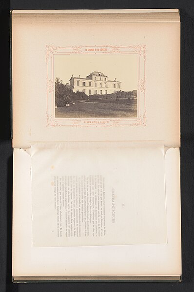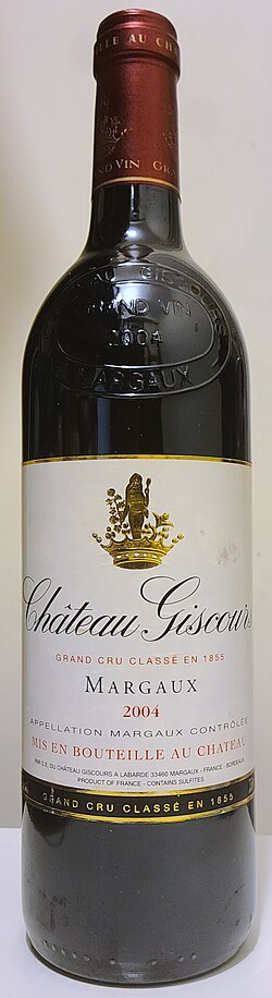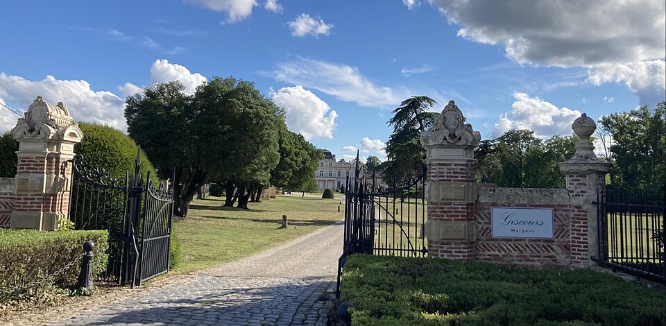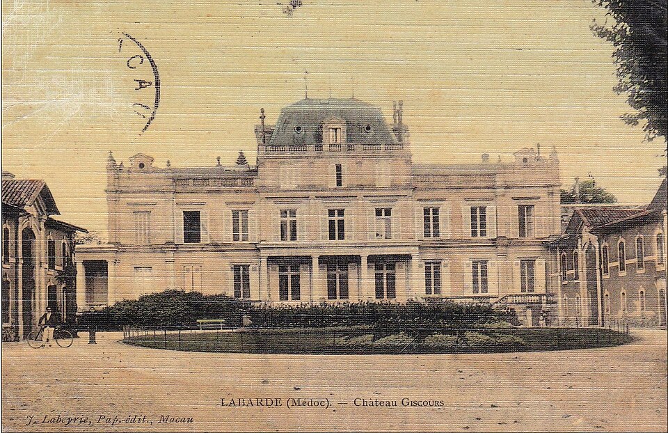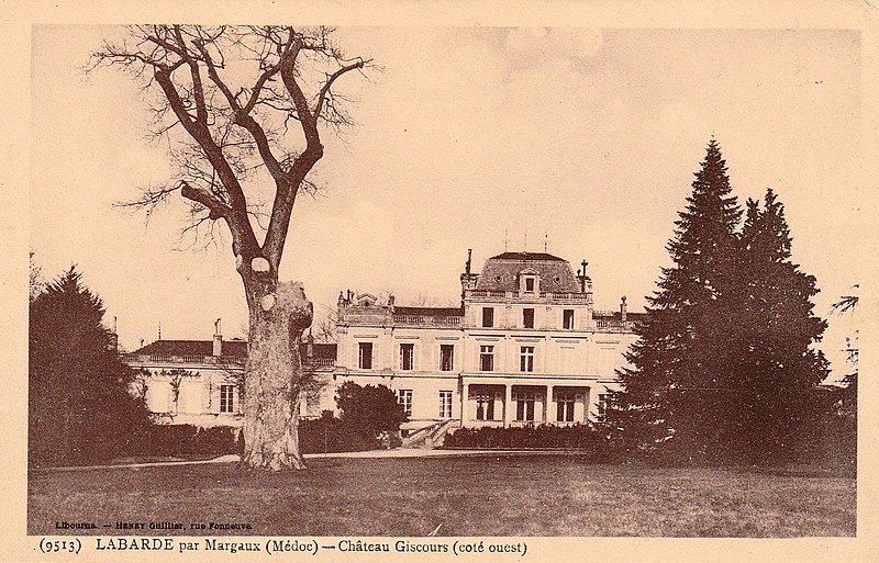 Le château Giscours, domaine viticole du Médoc situé à Labarde près de Margaux, s’étend sur environ 300 hectares et bénéficie de l’appellation Margaux ; son vin principal est classé troisième grand cru dans la classification de 1855. La seigneurie est connue depuis le XVe siècle, certaines sources faisant remonter ses origines au XIVe, et la vigne est mentionnée dans un acte de 1552. Plusieurs propriétaires se succèdent jusqu’à l’achat majeur de 1825 qui entraîne l’agrandissement du domaine et la reconstruction du château ; des restaurations supplémentaires ont lieu entre 1856 et 1868. Au cours des années 1875‑1881, le domaine est à nouveau agrandi : le parc est aménagé et sont construites deux fermes‑modèles, la ferme Suzanne et la ferme Camille. Le château présente un plan rectangulaire avec un pavillon central précédé d’un balcon‑porche à colonnes toscanes ; les avant‑corps latéraux sont ornés de frontons éclectiques. Les bâtiments d’exploitation s’organisent à proximité autour d’une cour. À la fin du XIXe siècle, un architecte‑paysagiste conçoit un parc paysager agrémenté d’un parcours d’eau et complété par une garenne. La propriété moderne se structure notamment sous l’impulsion de Marc Promis, qui étend le domaine et fait construire la demeure et les dépendances agricoles, puis est profondément transformée par Jean‑Pierre Pescatore et, plus tard, par Édouard Cruse avec l’intervention du paysagiste Eugène Bühler et des architectes Duphot père et fils. L’attribution du classement de 1855 contribue à la renommée du cru. Au XXe siècle, la famille Tari rachète le domaine en 1952 et le modernise ; Pierre Tari lui succède en 1970. Le droit d’exploitation est revendu en 1993‑1994 à Eric Albada‑Jelgersma, opération suivie de contentieux et d’un scandale en 1998 portant sur des pratiques illégales de mélange de cuves et de millésimes ; des réformes et une nouvelle équipe aboutissent à l’obtention de la certification ISO 9002 en 2001. Le château, ses dépendances et le parc sont inscrits au titre des monuments historiques en 2011. En 2023, les terres du groupement foncier agricole détenues par la famille Tari font l’objet d’une liquidation et sont rachetées par la famille Albada‑Jelgersma, qui réunit l’ensemble des actifs dans la société d’exploitation du domaine. Le vignoble, exploité sur 95 hectares en production, repose sur quatre types de graves répartis sur quatre croupes ; l’encépagement est indiqué à 60 % de cabernet‑sauvignon, 32 % de merlot, 5 % de cabernet franc et 3 % de petit verdot. La densité de plantation est élevée (8 300 à 10 000 pieds à l’hectare) et plus d’un quart des vignes ont un âge moyen d’environ 40 ans. L’élevage des vins se fait 16 à 18 mois en barriques avant assemblage ; historiquement l’assemblage du premier vin était dominé par le merlot à environ 60 %, mais depuis 1995 la proportion de cabernet‑sauvignon a été sensiblement augmentée (jusqu’à 75 %) tandis que celle du merlot a été réduite (à environ 20 %). Giscours produit également un second vin, La Sirène de Giscours, ainsi qu’un rosé, le rosé de Giscours.